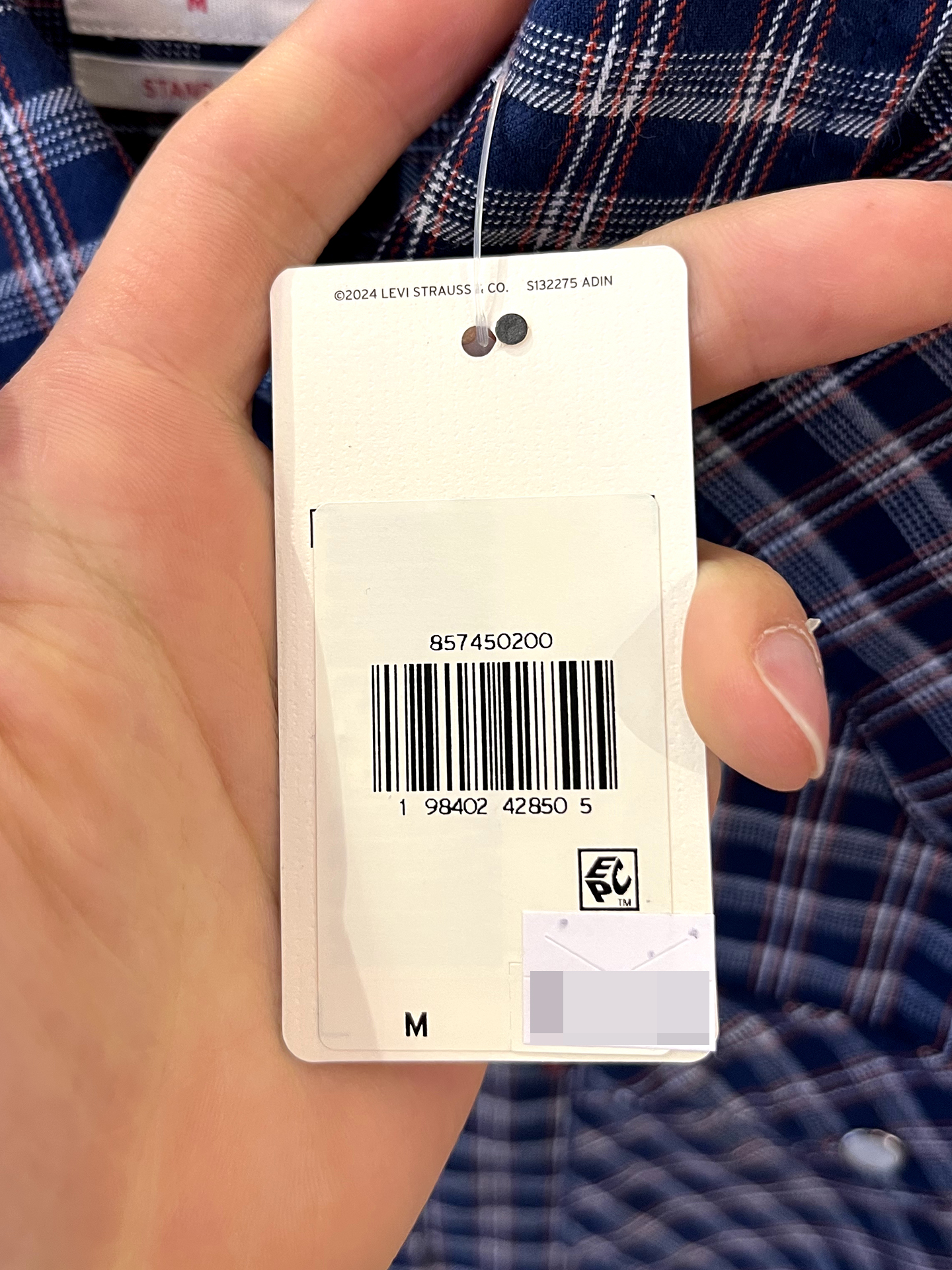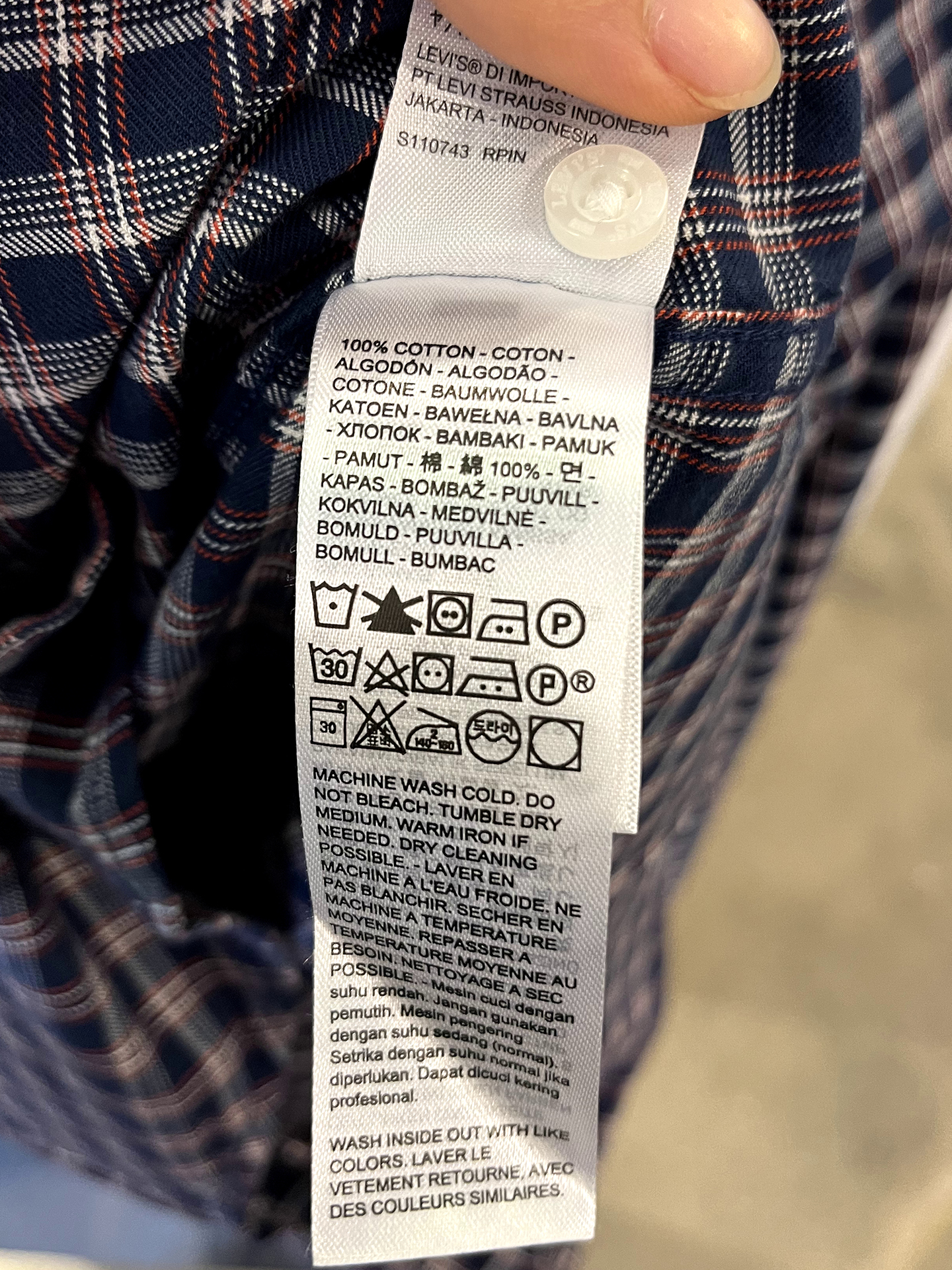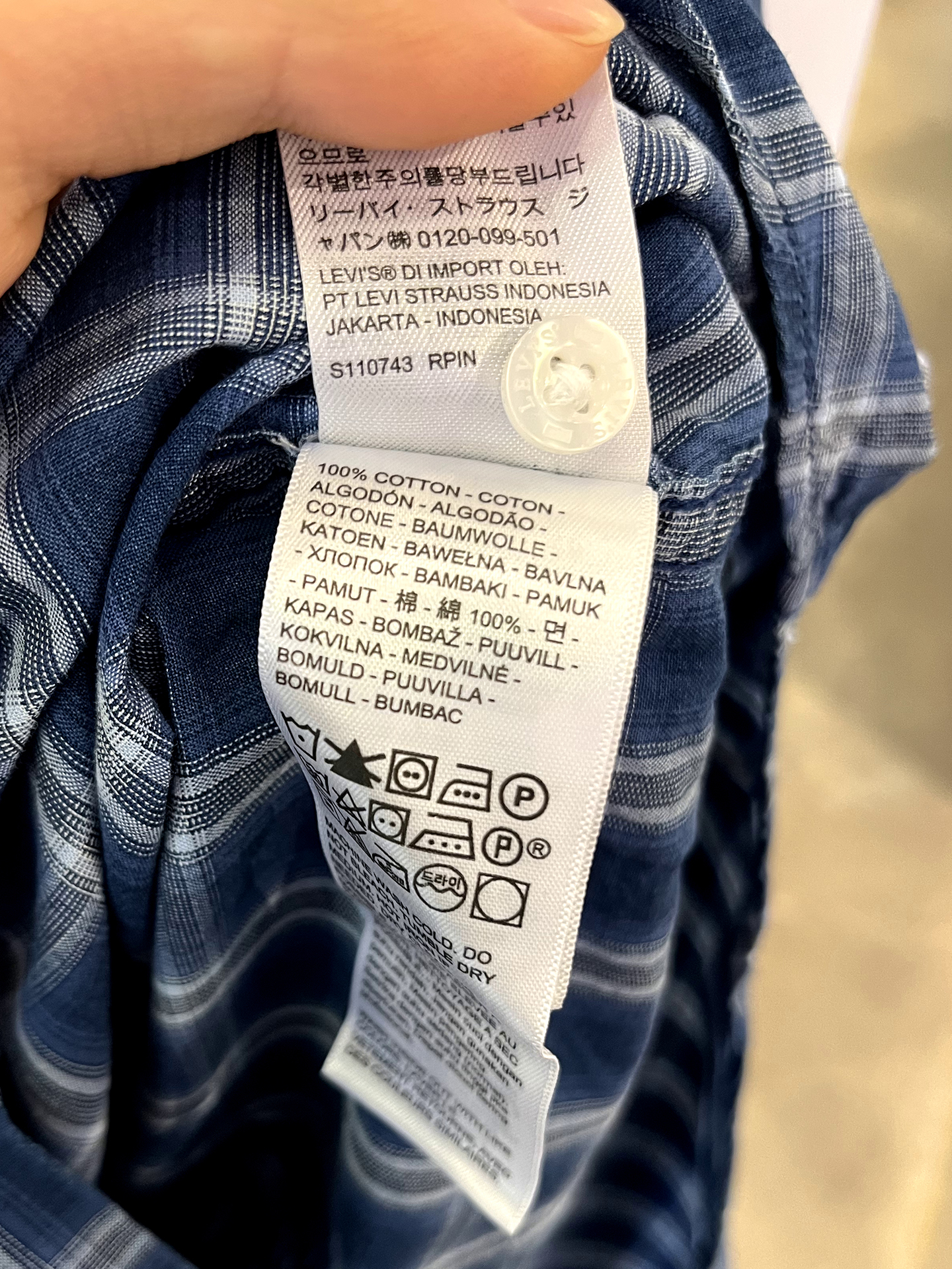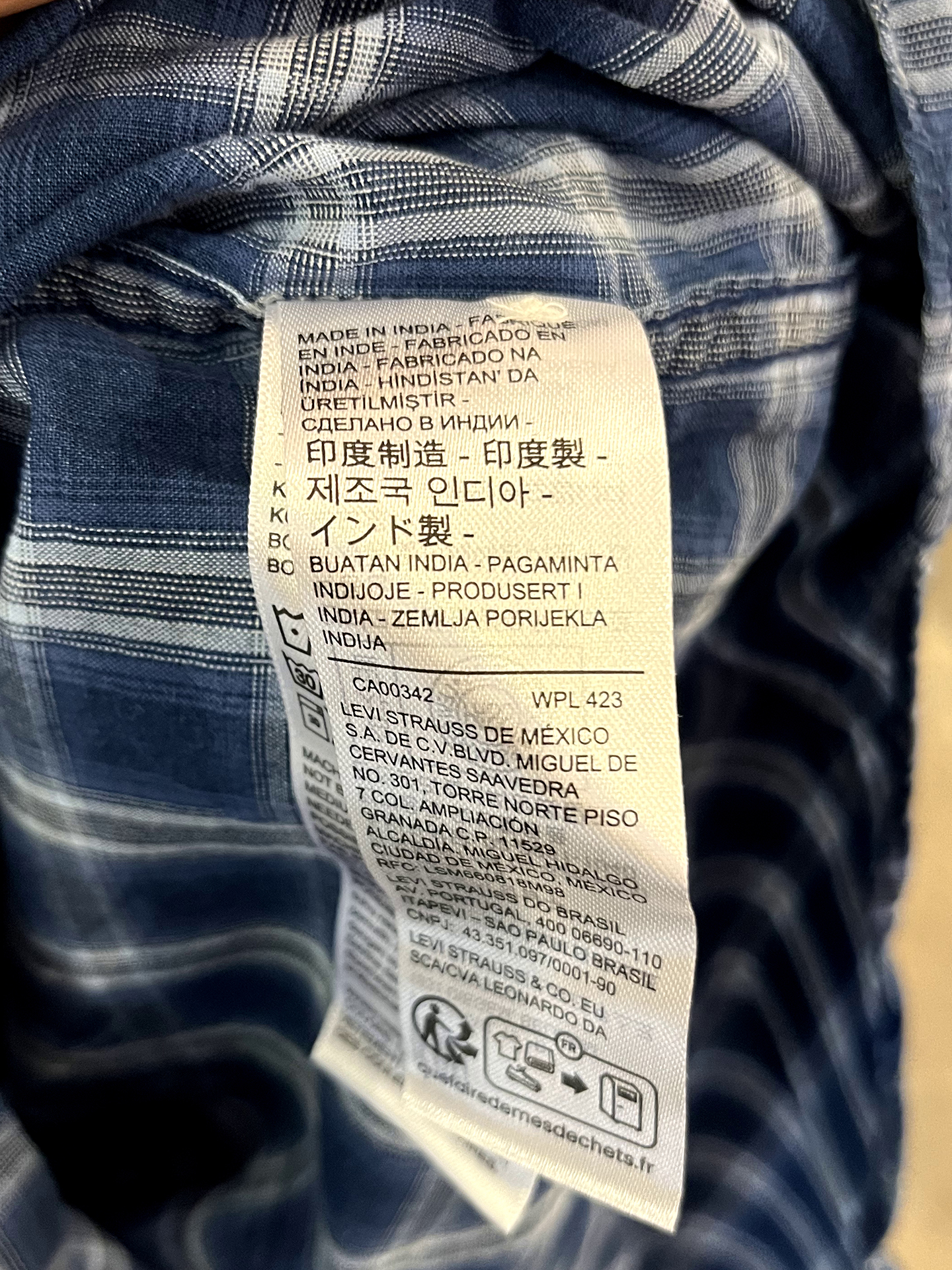 Levi’s/李维斯 男士春秋纯棉经典西部风双口袋格纹尖领长袖衬衫