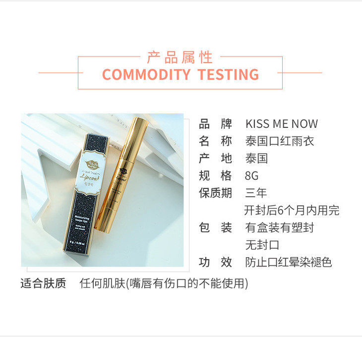 【口红】。kiss me now 口红雨衣彩妆持久保湿口红不脱色不沾杯防水滋润