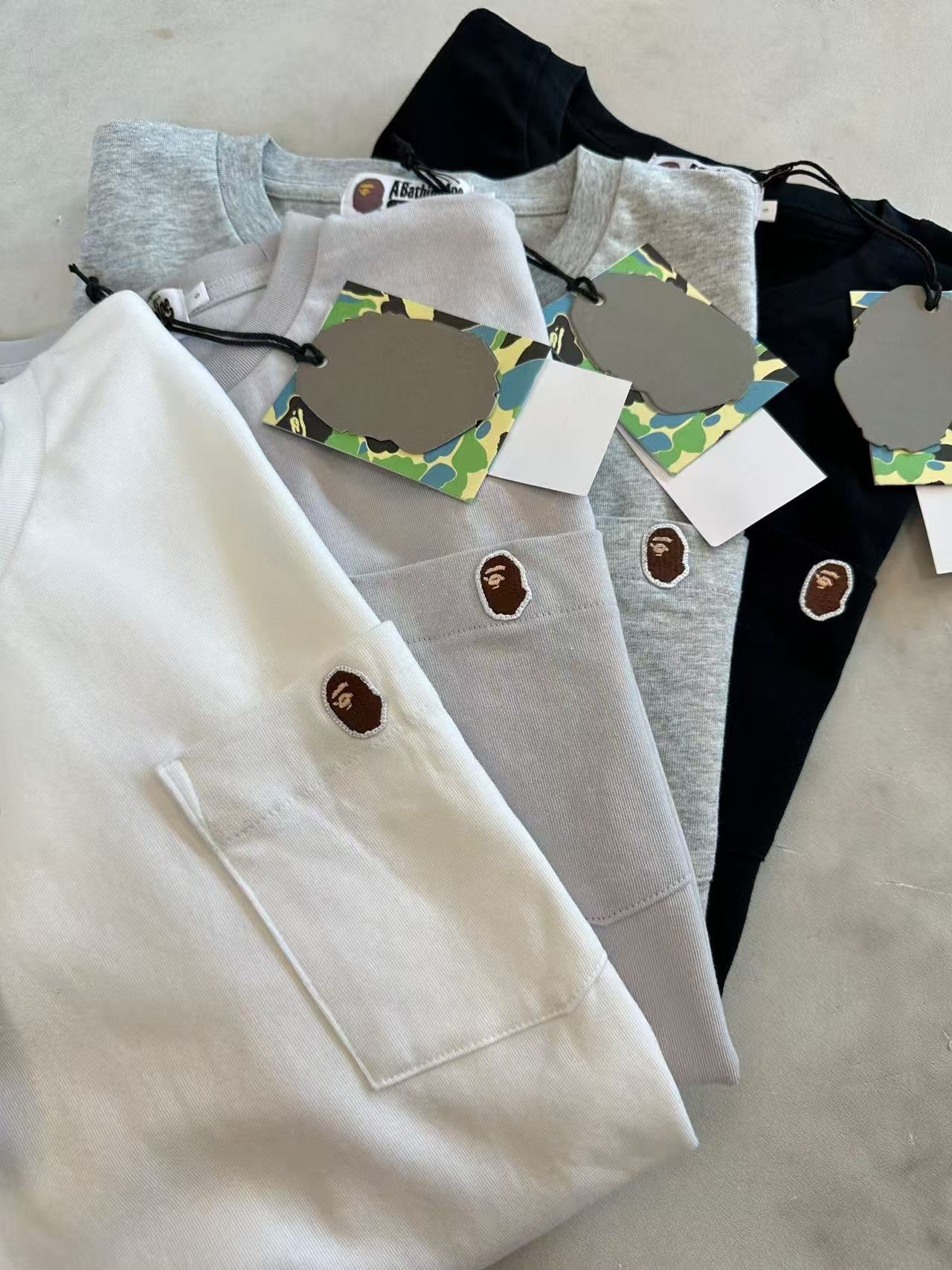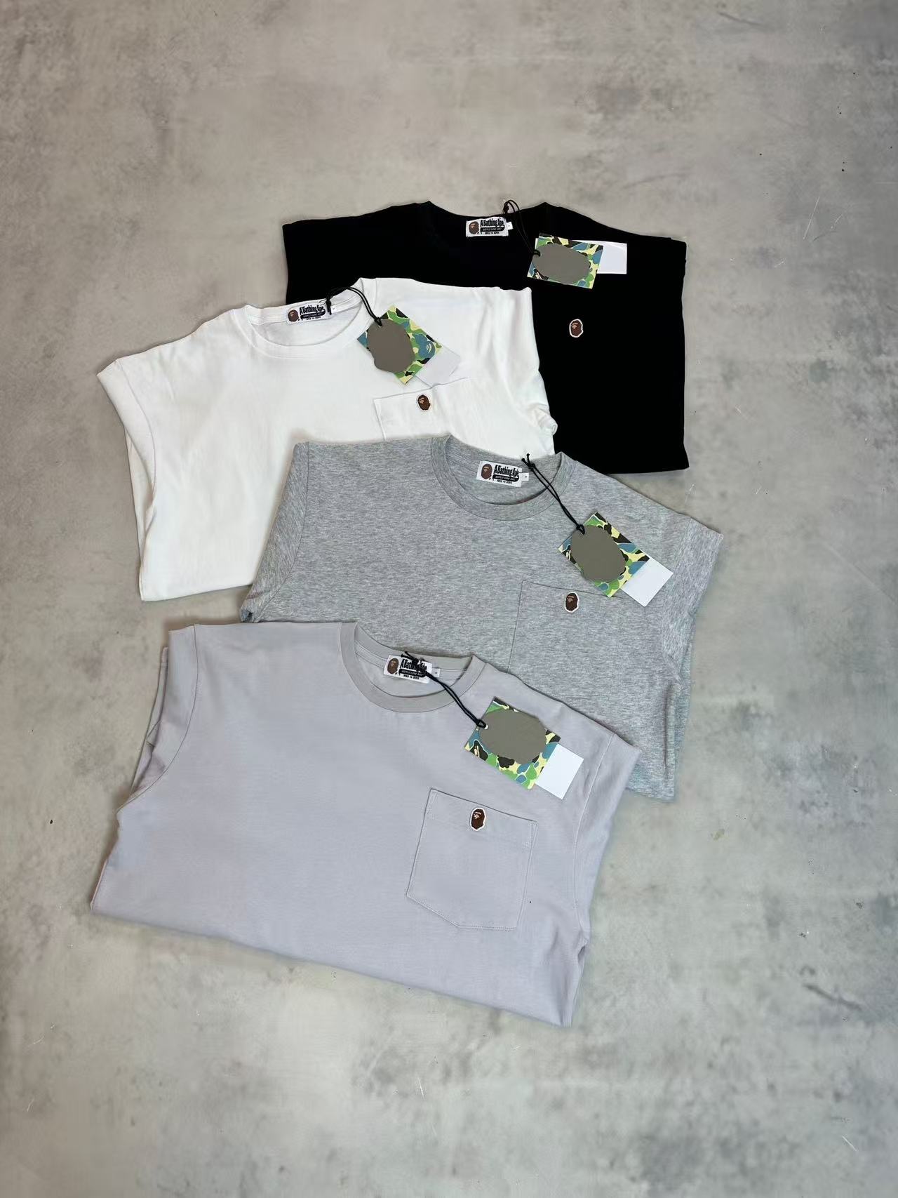 【2fz1】情侣简约休闲徽标口袋短袖T恤!!