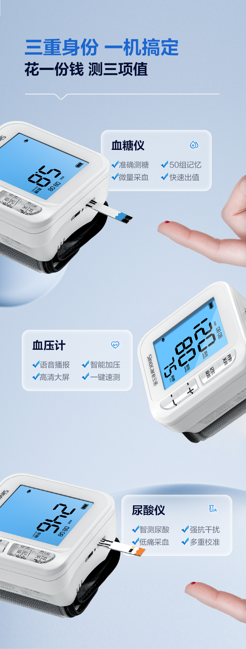 【KJ】新品首发 三诺YTN11血压血糖尿酸测试仪