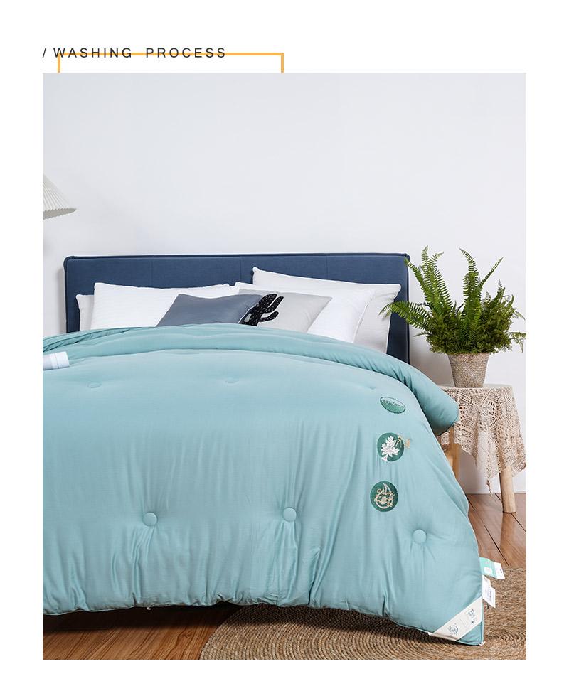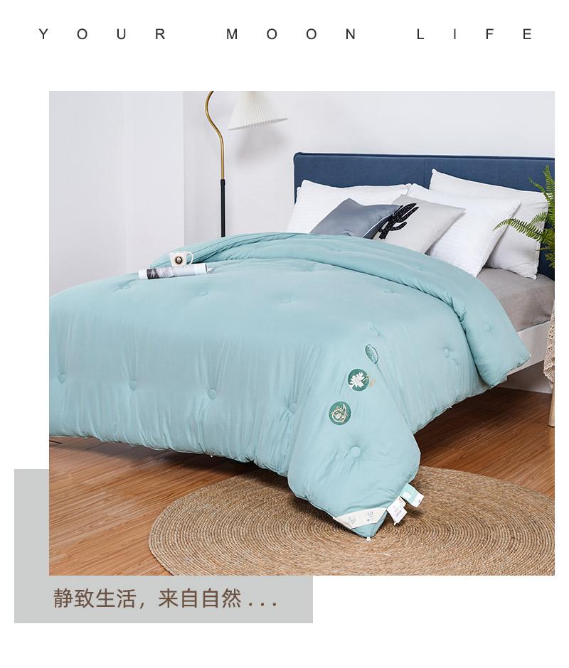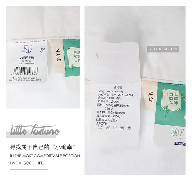 a.【艾草精华纤维】提取天然艾草精华,融入到面料的纤维内部。天然草本植物,能有效的抗菌。艾草素有安神助眠,缓解压力,祛湿散寒、驱蚊防虫等功效,能使人快速放松,改善睡眠质量。面料采用棉和再生纤维素纤维交织,绿色环保。细腻的磨毛工艺处理,质感柔滑亲肤,轻松入睡。
