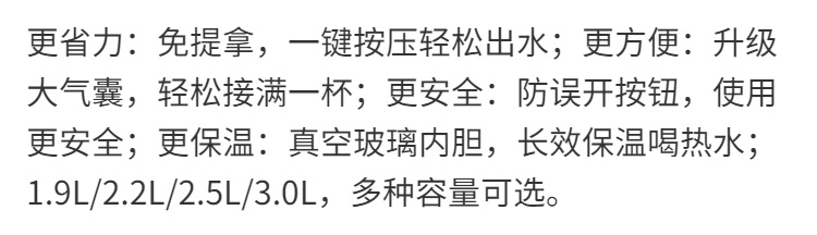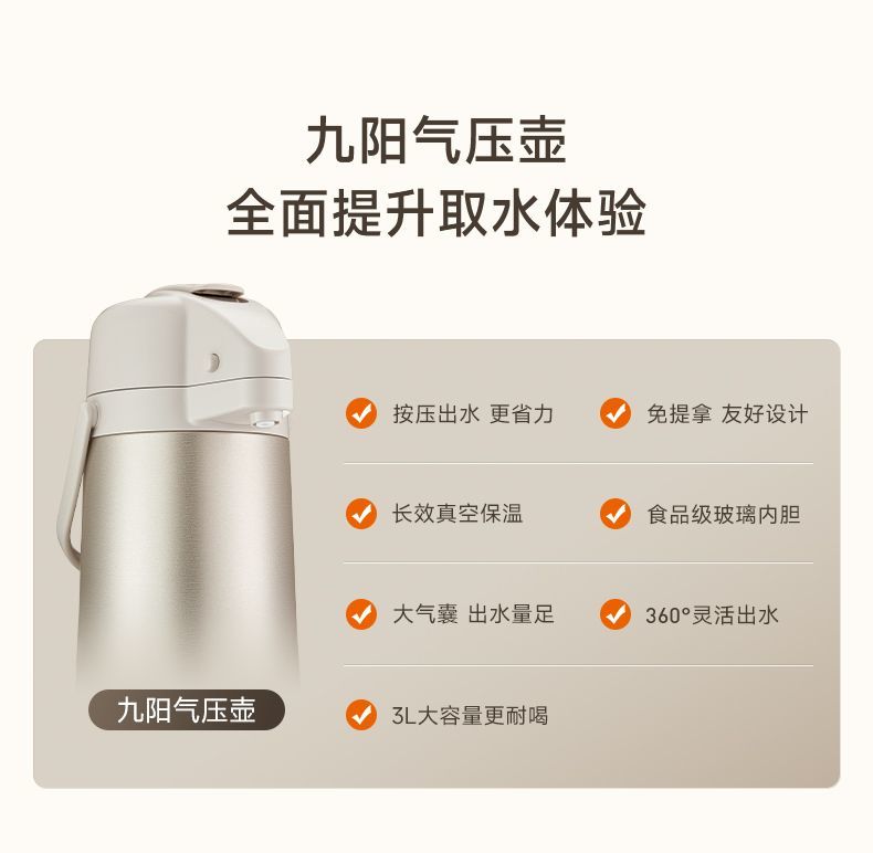 九阳气压保温壶按压热水瓶家用大容量暖水瓶水壶茶瓶开水瓶保温瓶