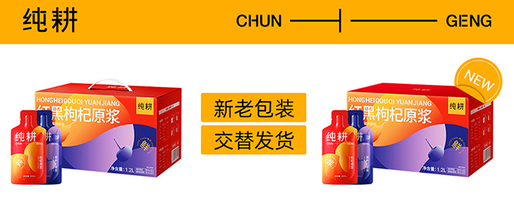 99到手90袋。纯耕2.7L红黑枸杞原浆组合、黑枸杞原浆、红枸杞原浆、人参枸杞原浆、桑葚原浆;五黑原浆;阿胶五红原浆、五指毛桃赤小豆饮、桂圆西洋参饮、黄芪阿胶饮;1.8L沙棘原浆