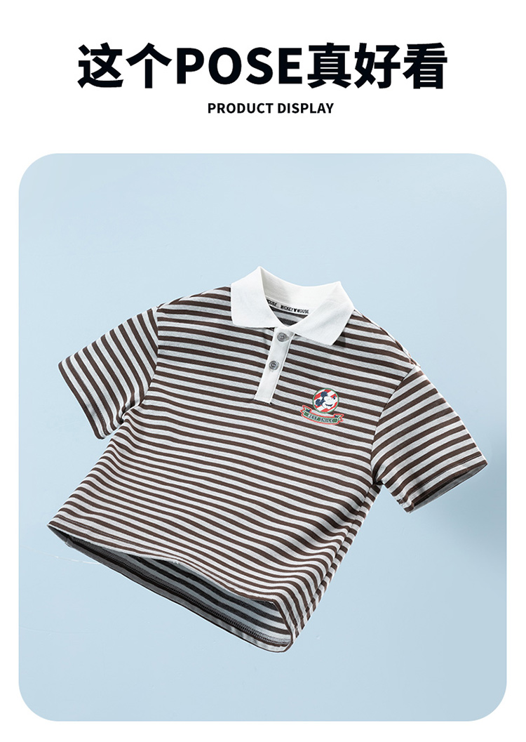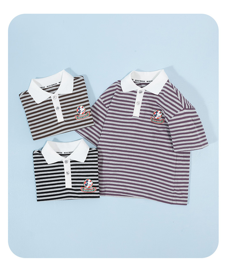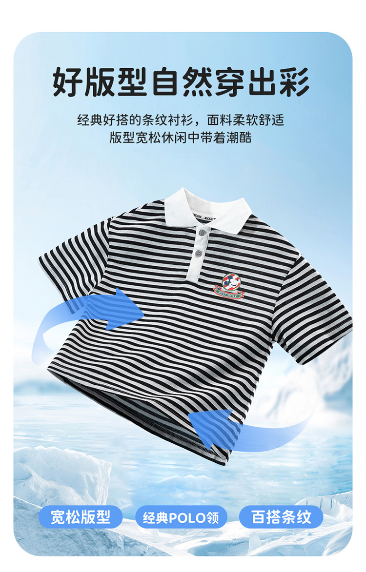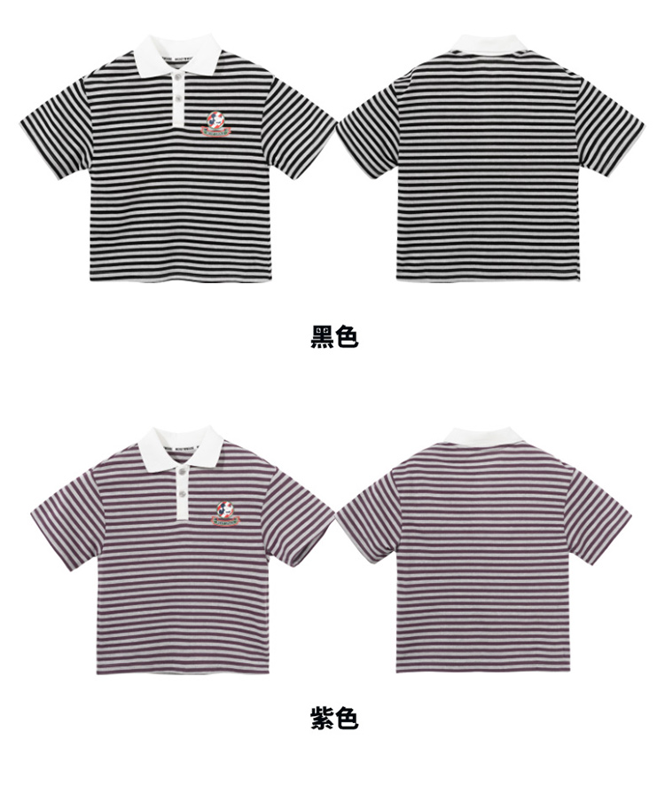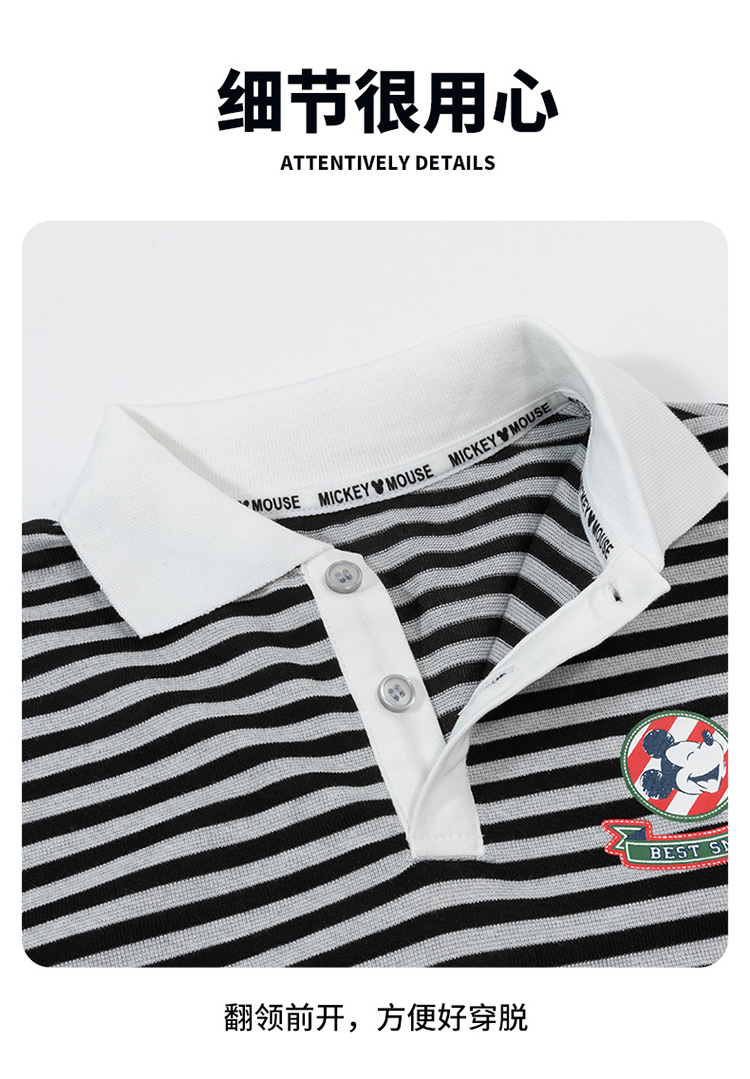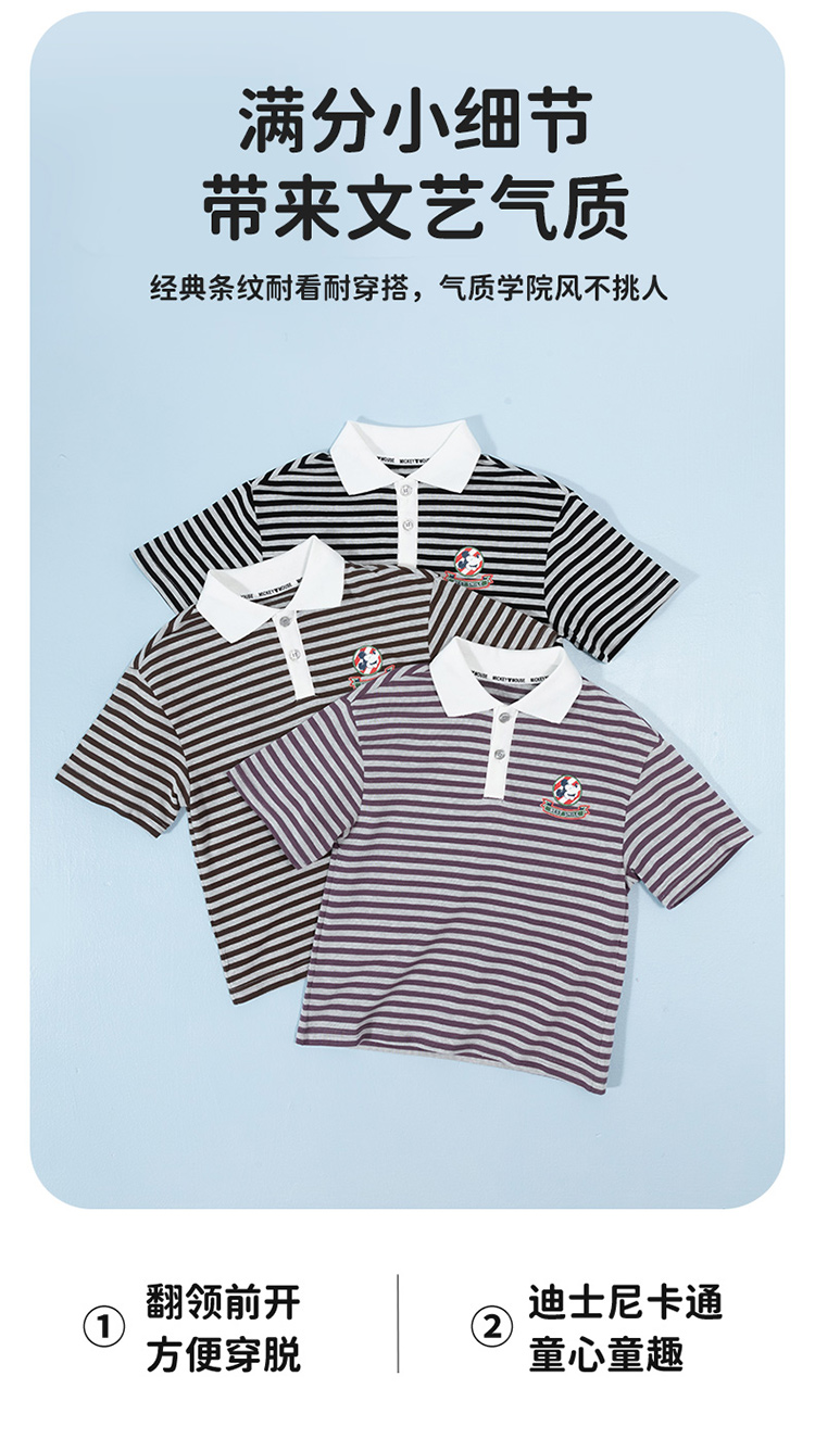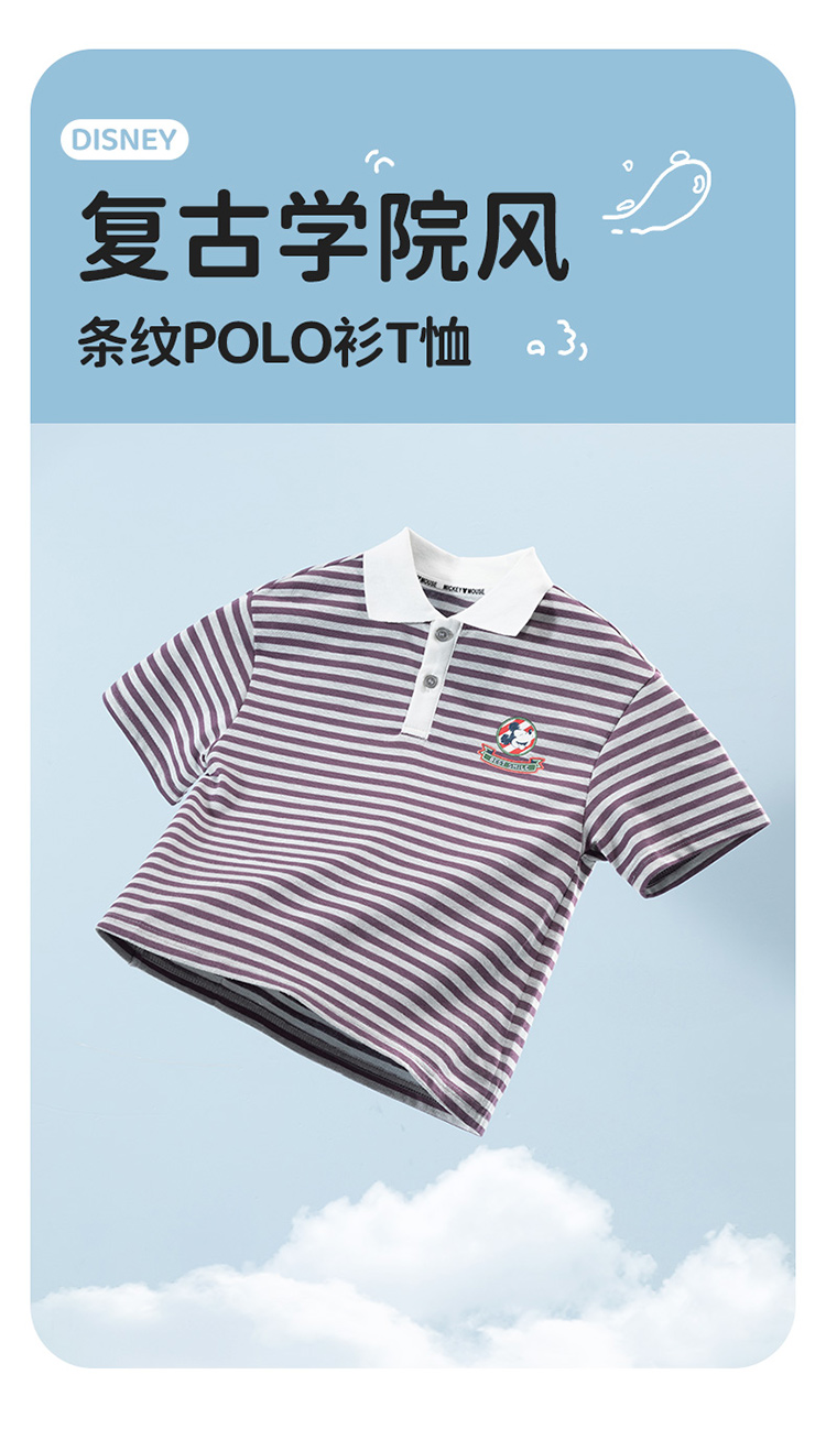 迪士尼【米奇条纹POLO衫】夏季T恤男童经典条纹百搭冰爽短袖上衣HSND24011