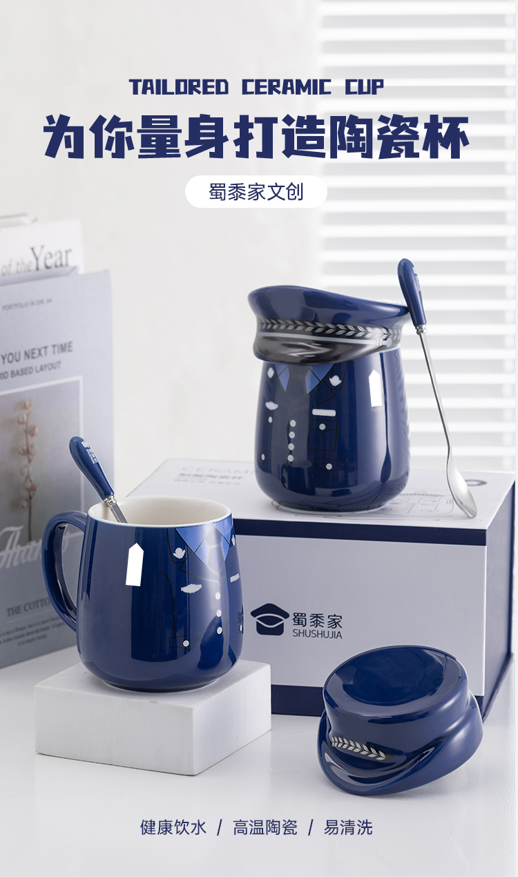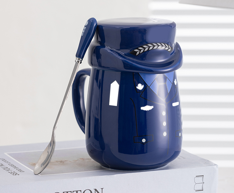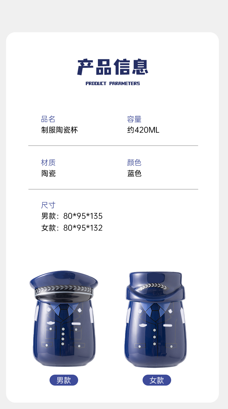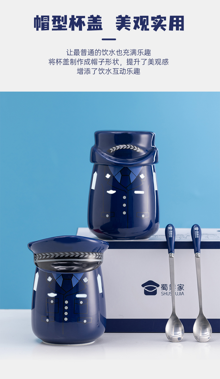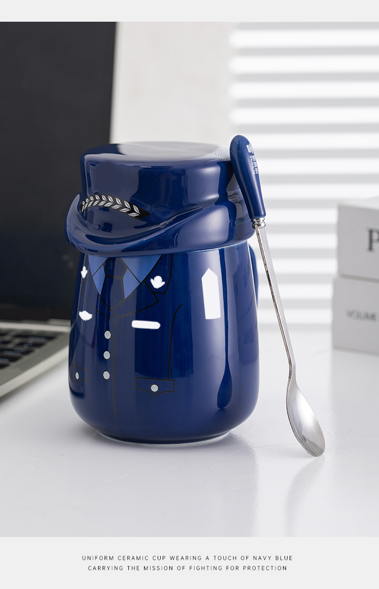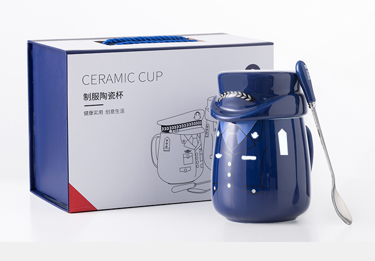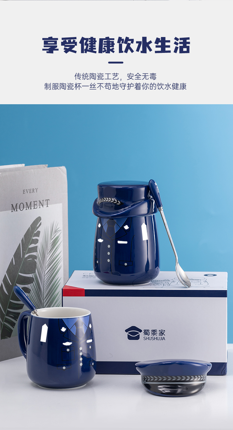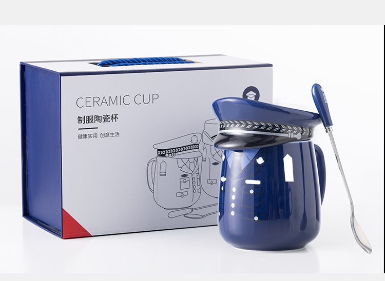 【男/女款制服陶瓷杯】创意喝水杯家用带盖勺咖啡杯茶杯套装马克杯子