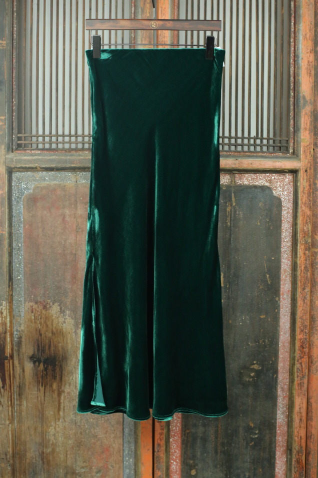 盛唐牡丹 | 墨绿色真丝丝绒女半裙