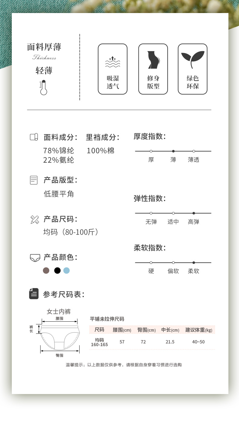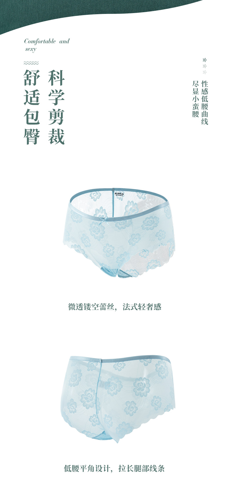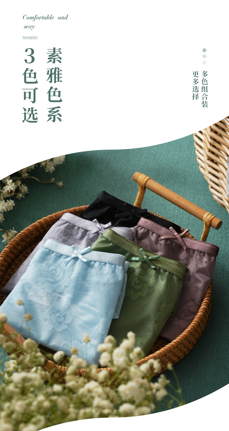雅黛丽女士内裤低腰平角裤纯棉底裆透气舒适网纱单条装底裤DYK03050