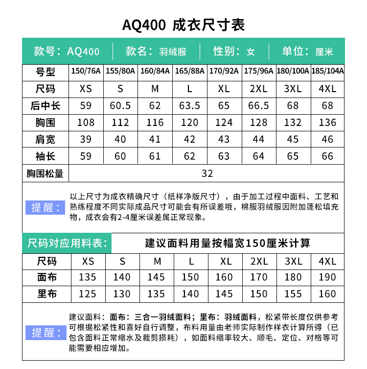 裁缝学苑AQ400新中式三合一羽绒服纸样女装毛毛立领盘扣上衣样板图纸