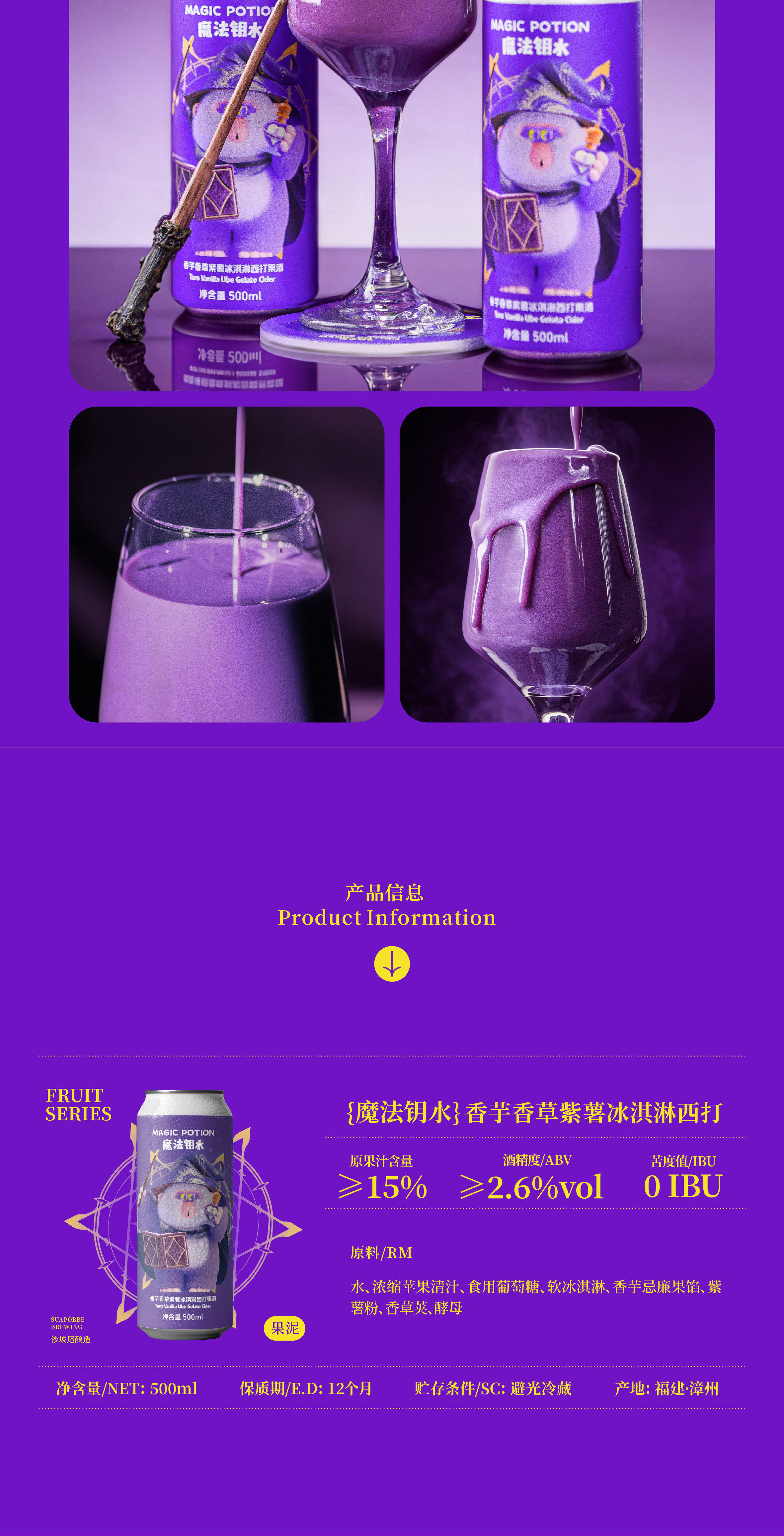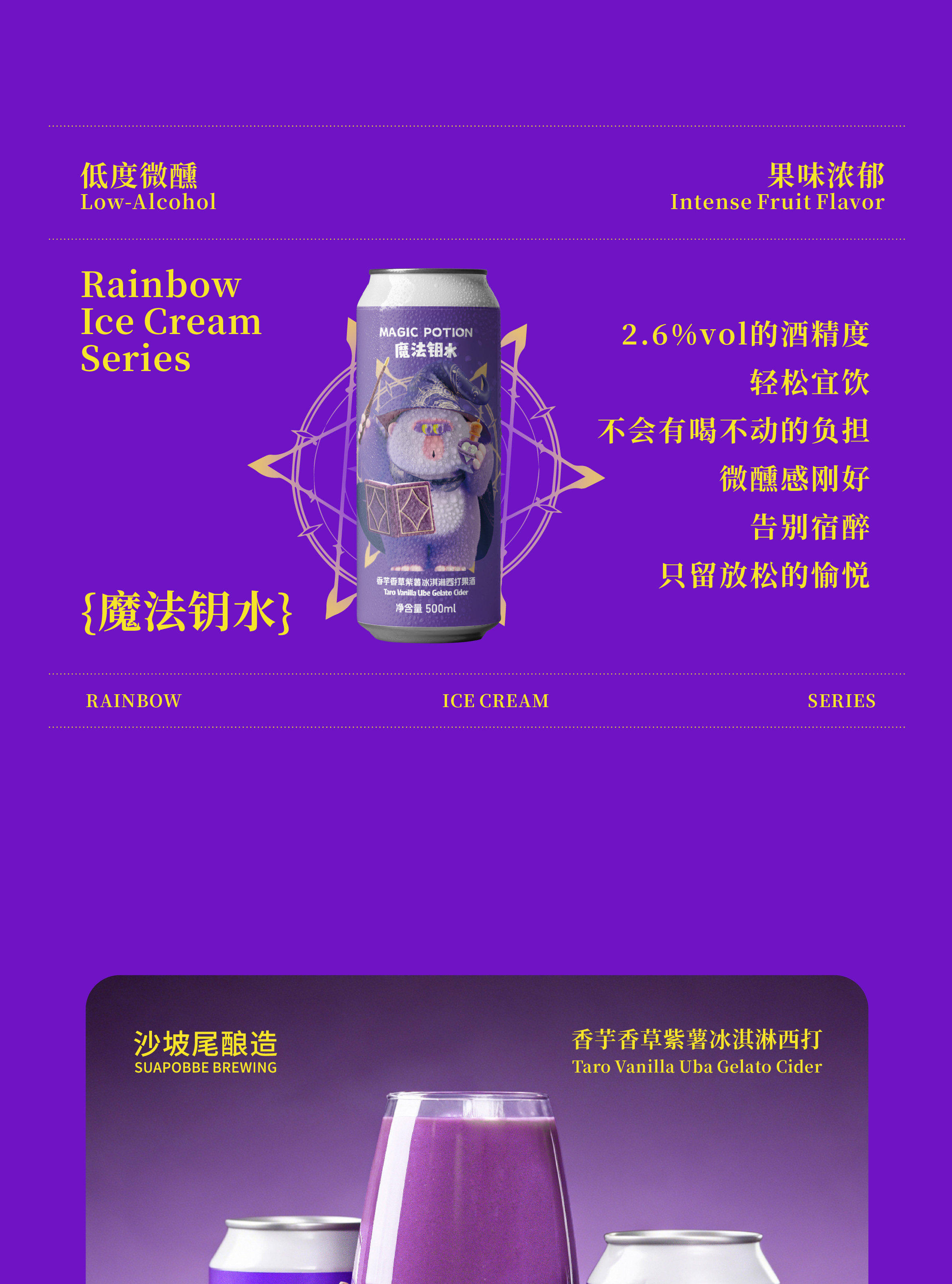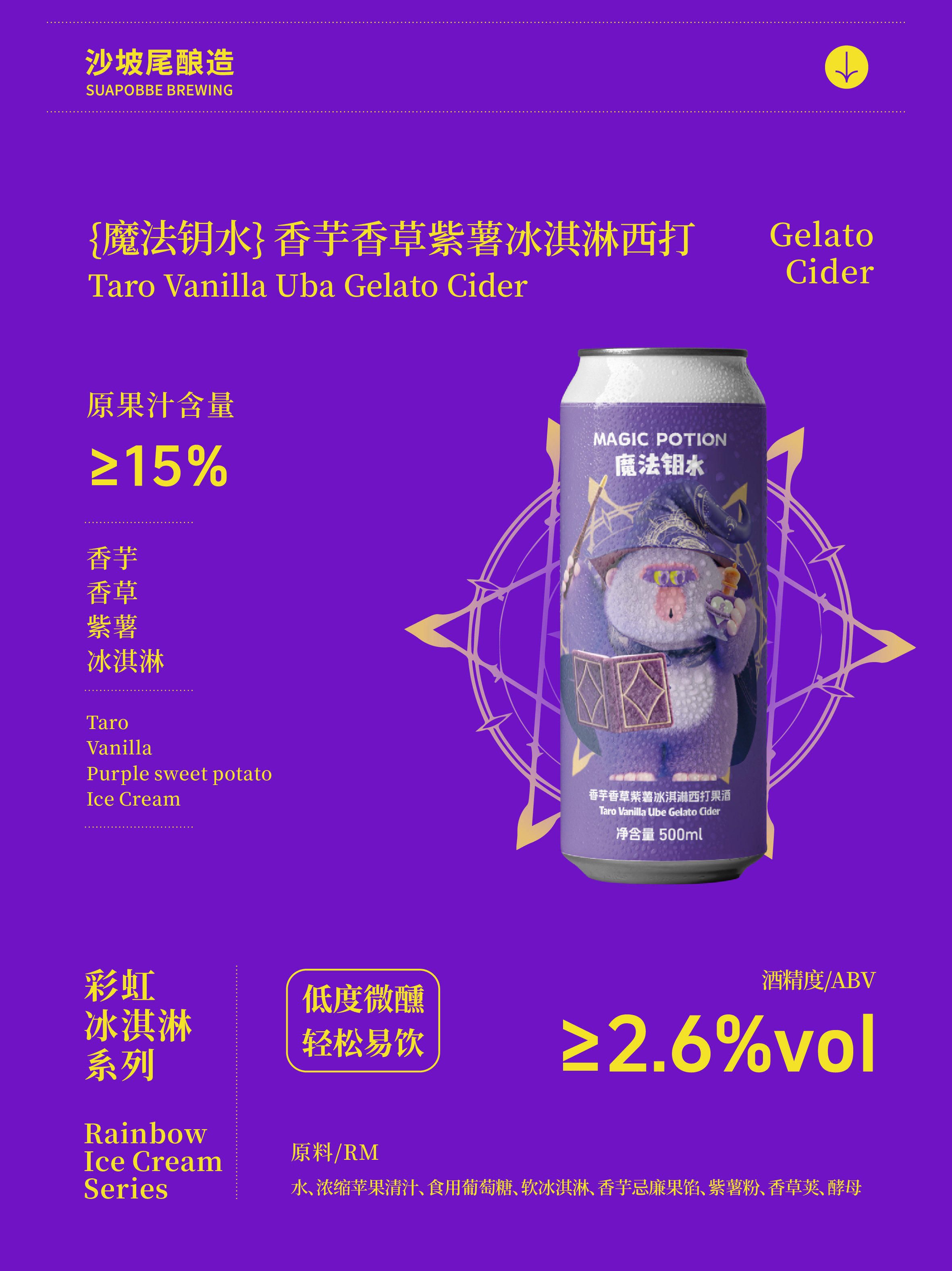 沙坡尾酿造 魔法钥水.香芋香草紫薯冰淇淋西打微醺流体果泥啤酒 500ml