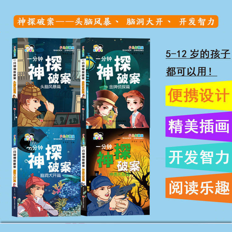 全4册 一分钟神探破案 侦tan类书籍儿童推理小说悬疑 小学生三四五六年级课外阅读书籍推荐故事书 头脑风暴 脑洞大开 迈克狐漫画版