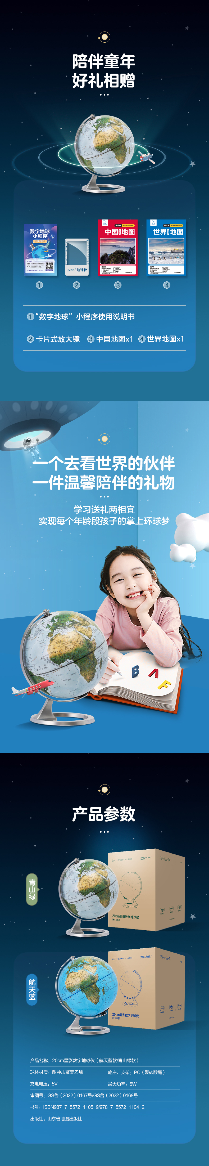 《20cm星影数字地球仪(青山绿款/航天蓝款)》