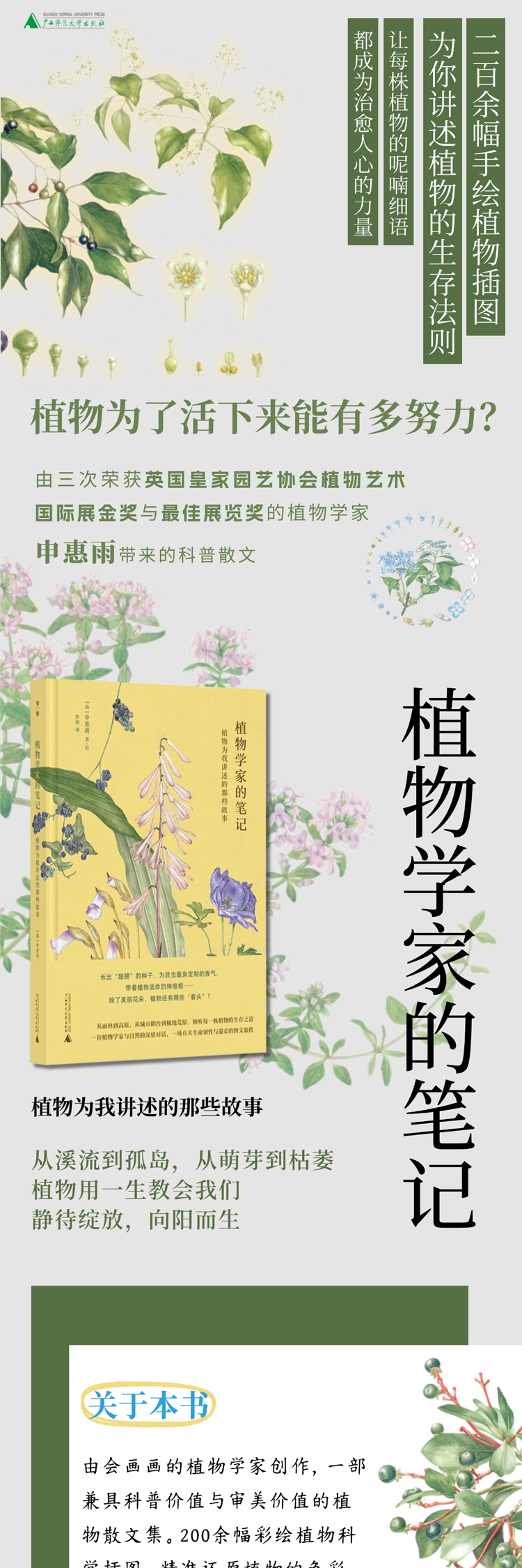 植物学家的笔记 申惠雨/著 罗竣/译 植物学 散文 科普 植物插画 广西师范大学出版社