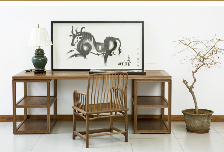 新仿黑胡桃木新中式书桌画案写字台QN1608001790 Newly made Black walnut wood Reproduction Besk