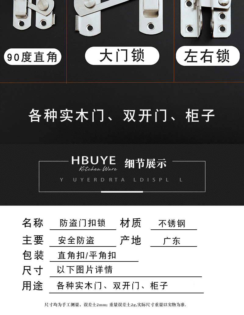不锈钢门扣90度直角移门搭扣304不锈钢插销箱扣加厚宠物笼门锁扣