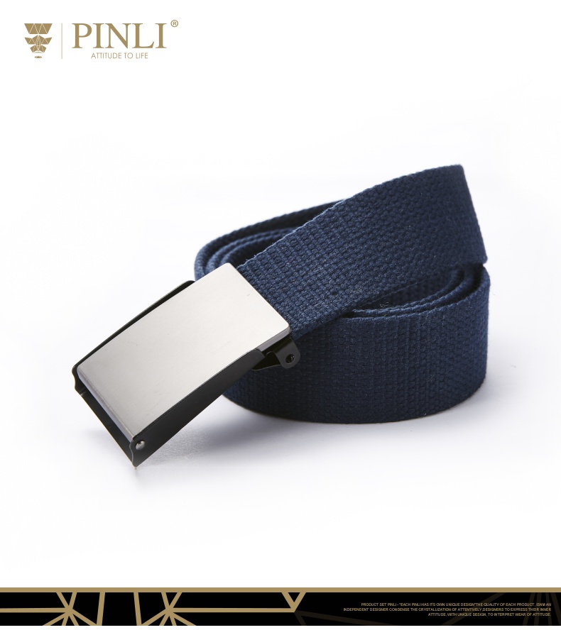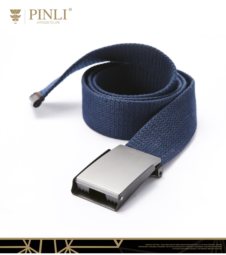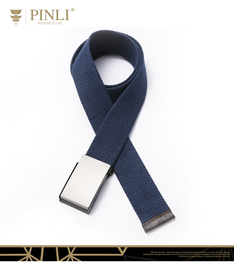 PINLI品立2021夏季新款男女同款百搭蓝色编织帆布腰带D212718427