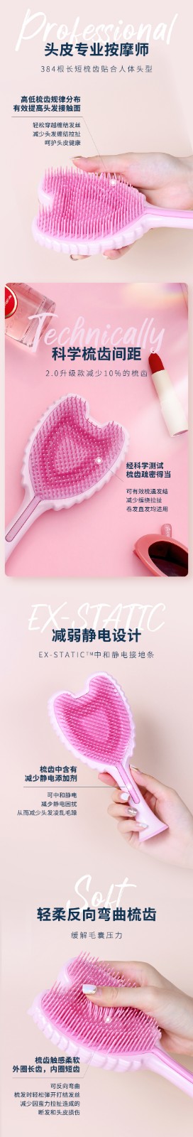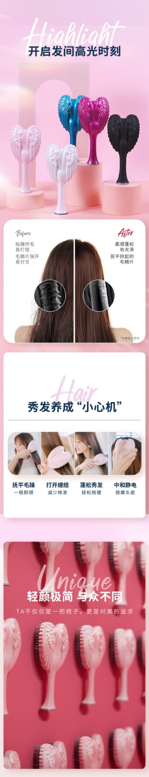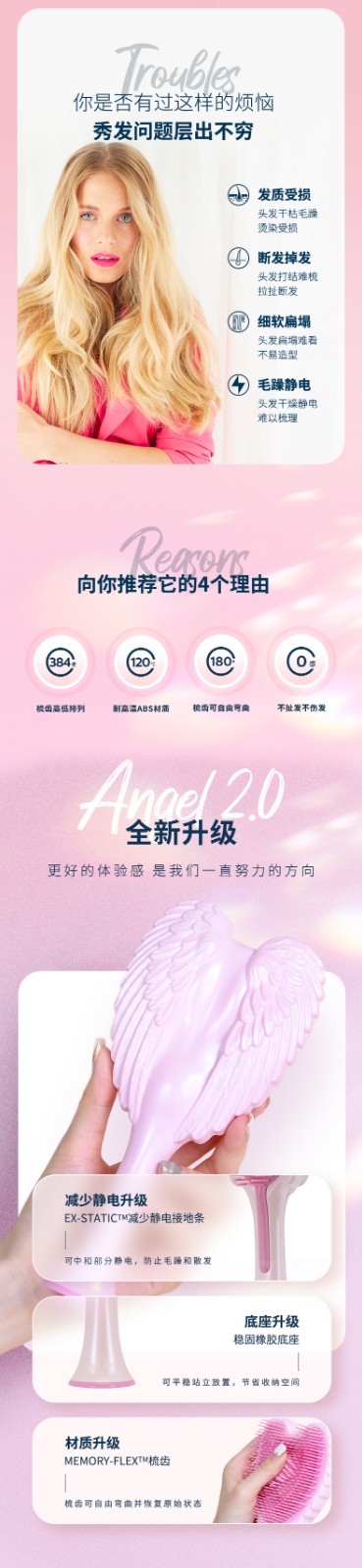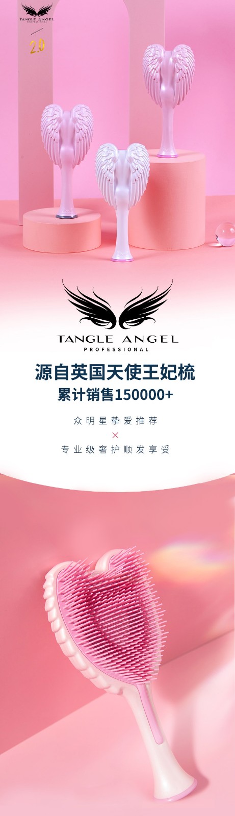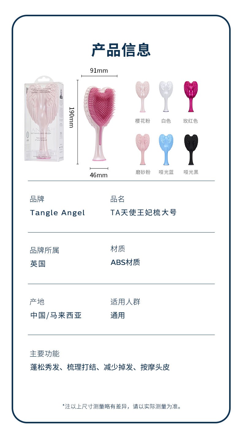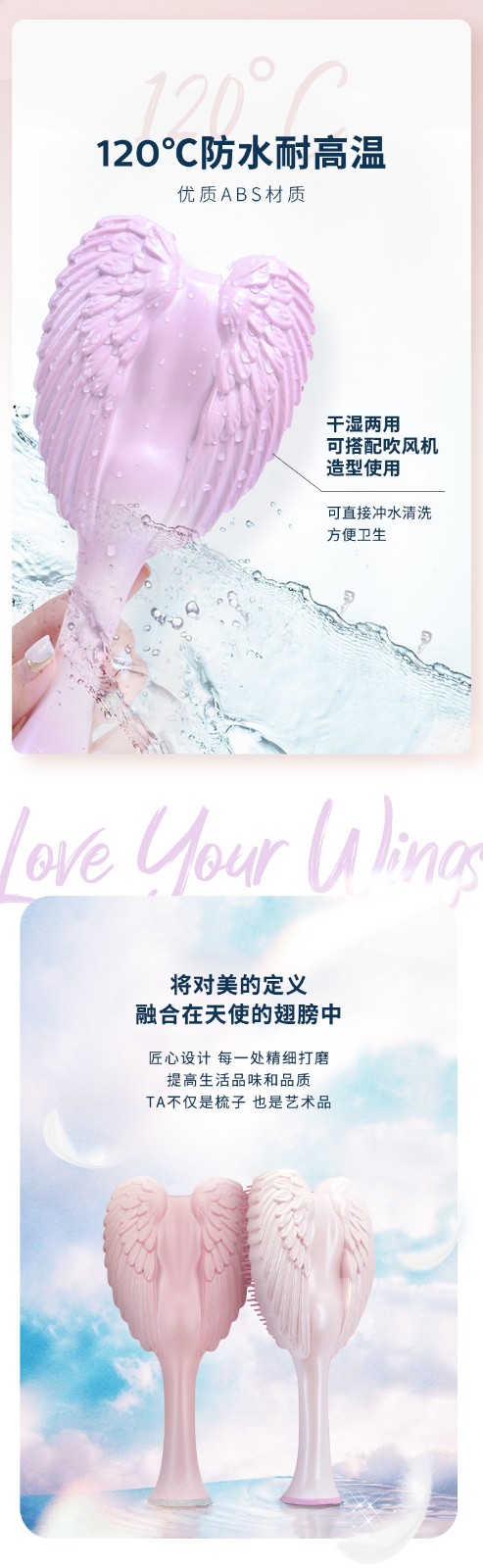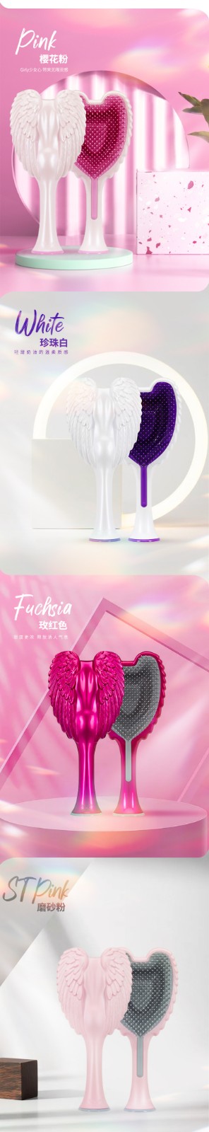 【6F】Tangle Angel英国天使王妃梳子女士专用长发气垫梳按摩梳子 TA2.0 天使美发梳大号 樱花粉
