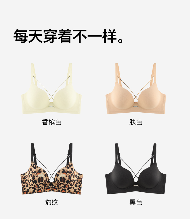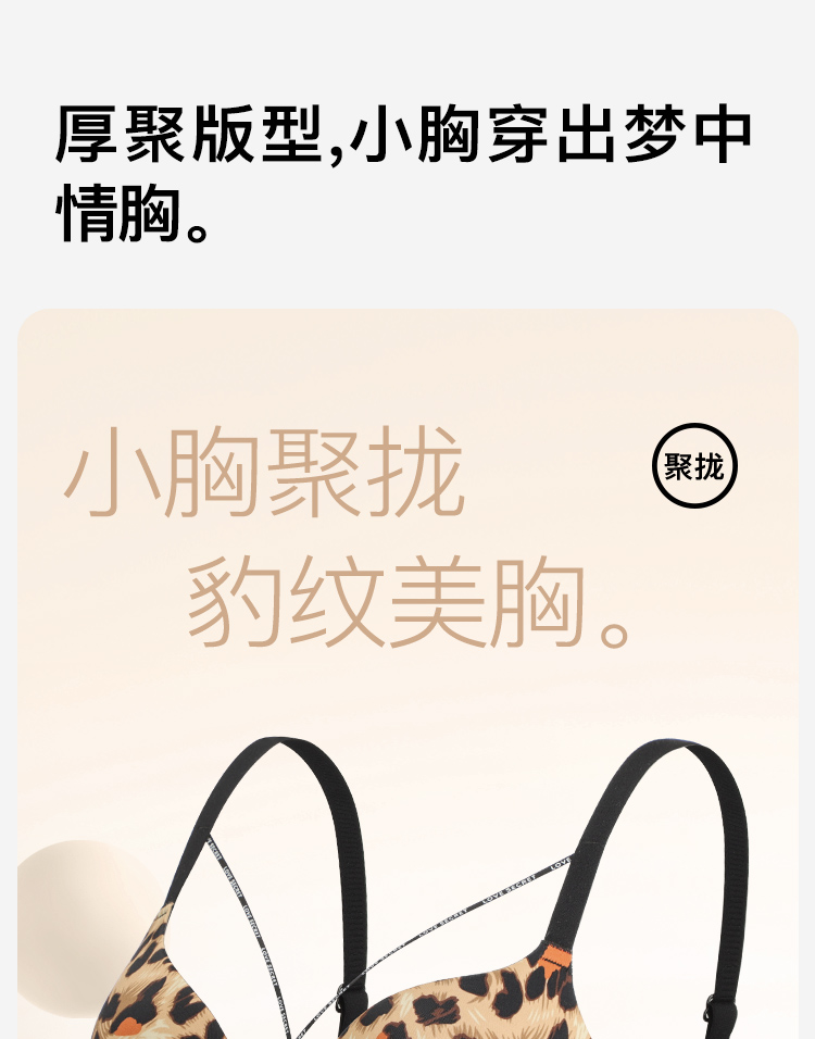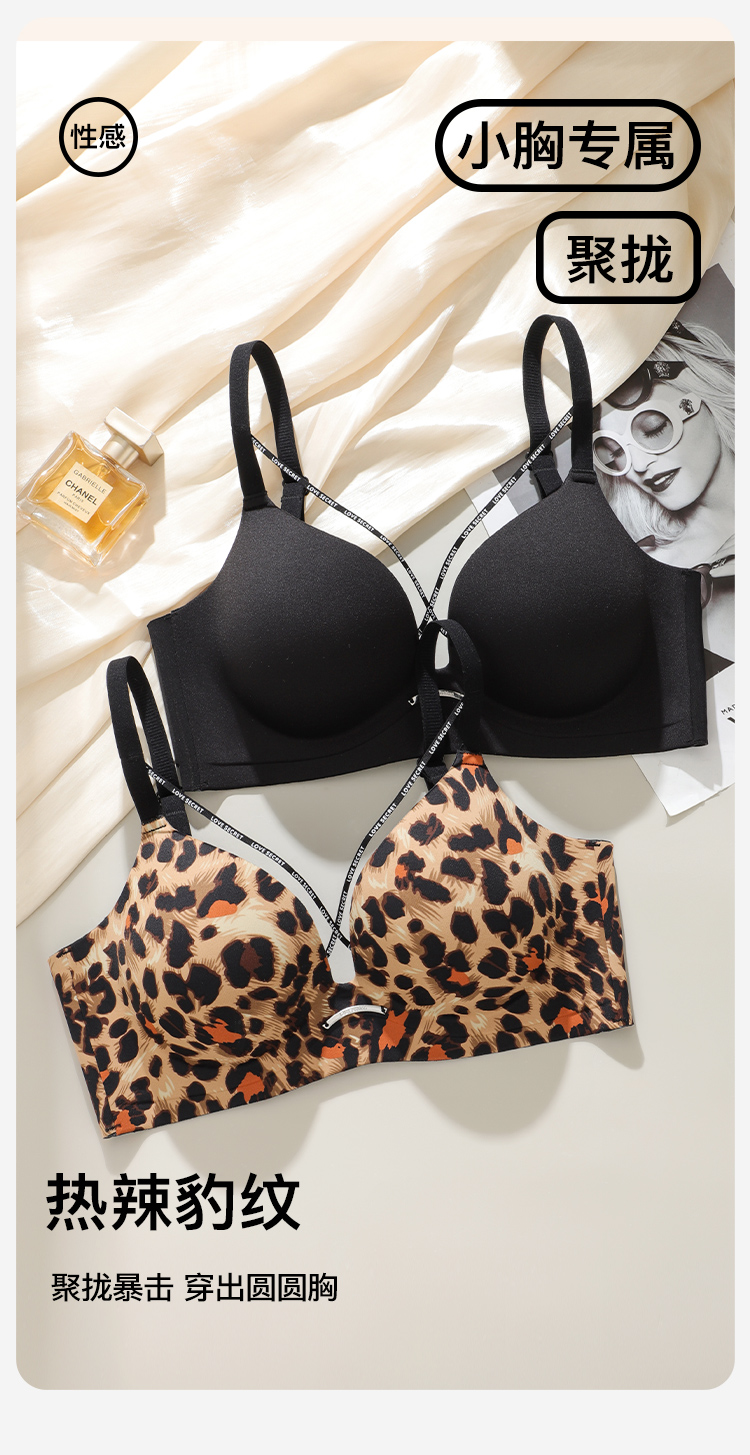 【性感美胸带】时尚豹纹小胸聚拢显大内衣女收副乳无钢圈文胸罩灵笙浅笑