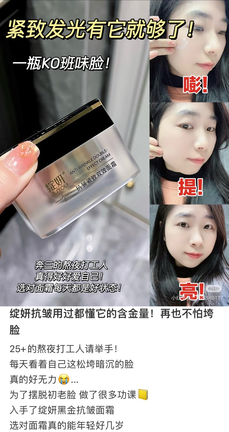 绽妍的科学复配技术,将这些珍贵成分进行黄金配比,实现1+1>2的协同增效。每罐面霜都历经严苛的生产工艺与多重质量检测,确保营养成分的高活性与稳定性,多元保湿成分构建的立体锁水网络,实现长效深层保湿,让肌肤时刻充盈水润。针对敏感肌与医美术后脆弱期,舒缓成分也能迅速舒缓泛红、干痒等不适,精准修护受损屏障,提升肌肤耐受性,同时提供密集滋养,加速愈合再生进程。抗氧化成分则化身肌肤“防护罩”,高效清除自由基,抵御暗沉与色斑侵袭,促进角质更新,令肌肤由内透现匀净透亮的健康光彩。