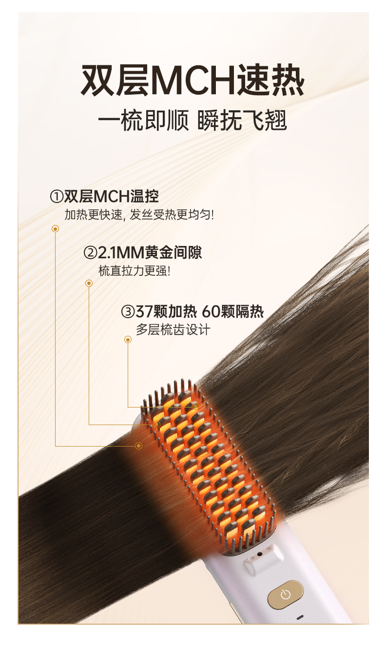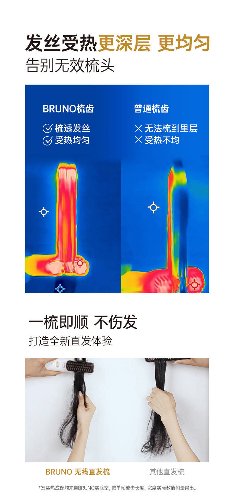 【6亿级负离子】bruno无线直发梳小巧便携双层MCH速热一梳即直3档温控新手无负担