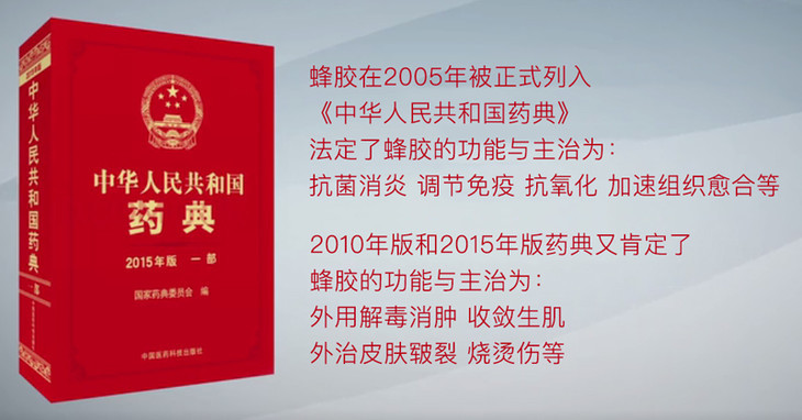 2005年,蜂胶被列入国家药典,功效进一步得到肯定: