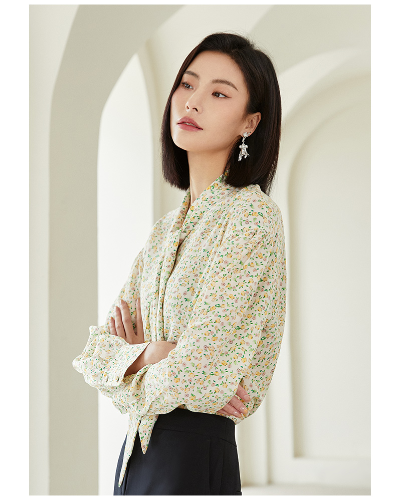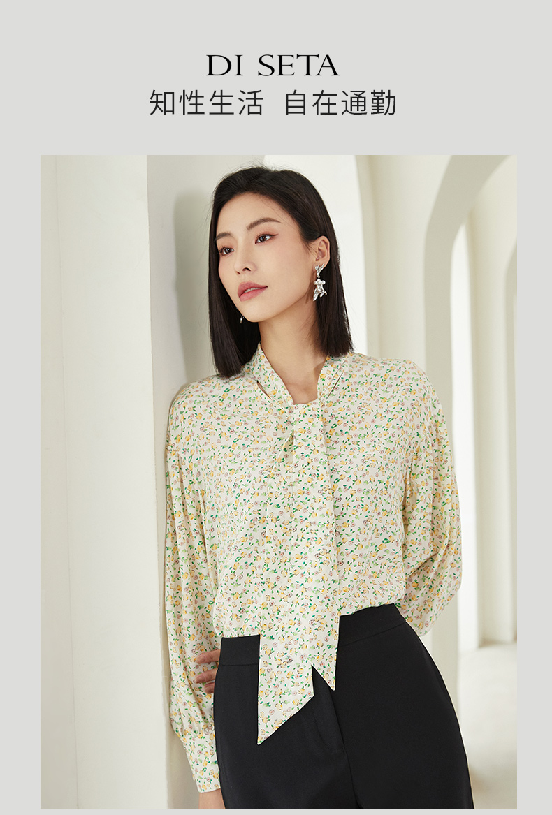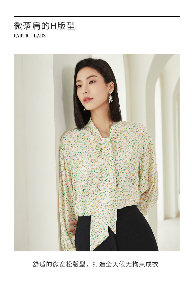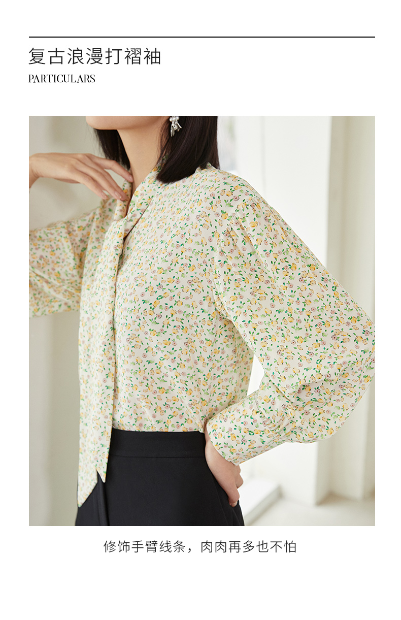 玳莎飘带领印花真丝衬衫女23春新款轻奢高级感优雅复古碎花上衣 DA31302