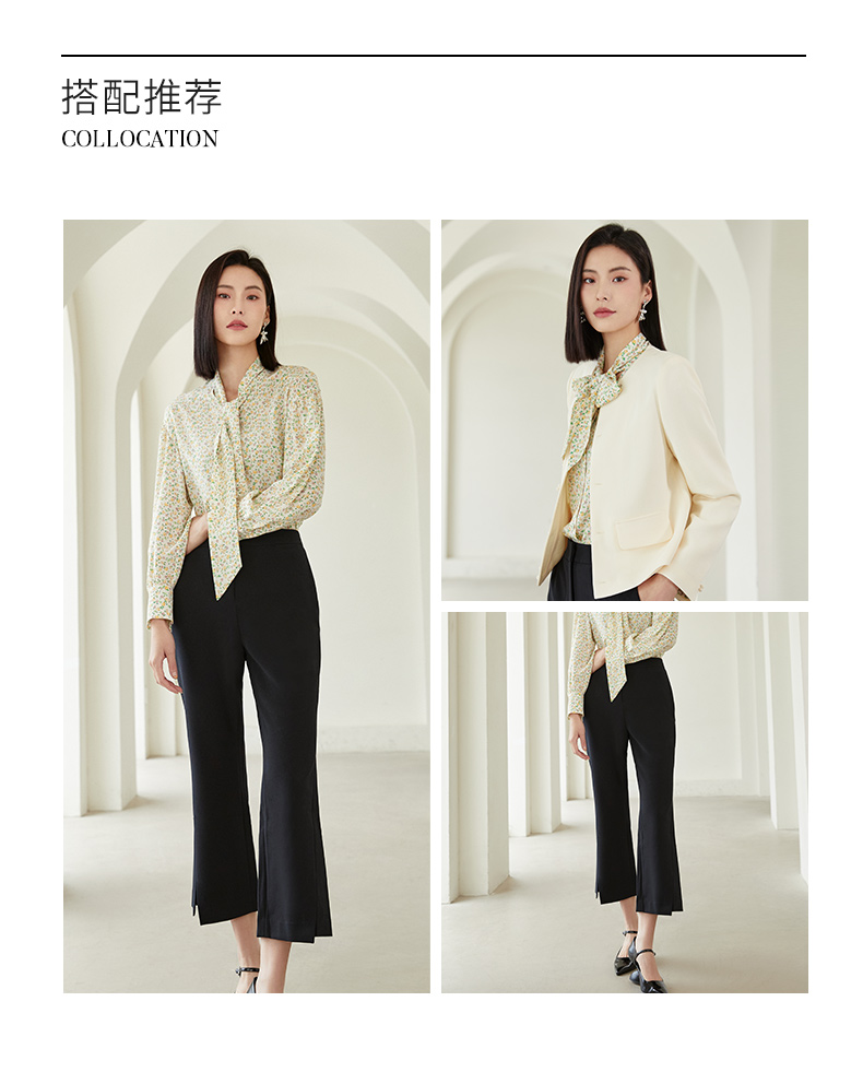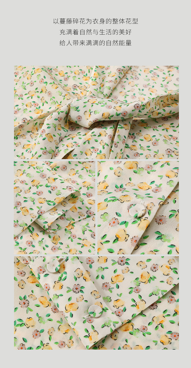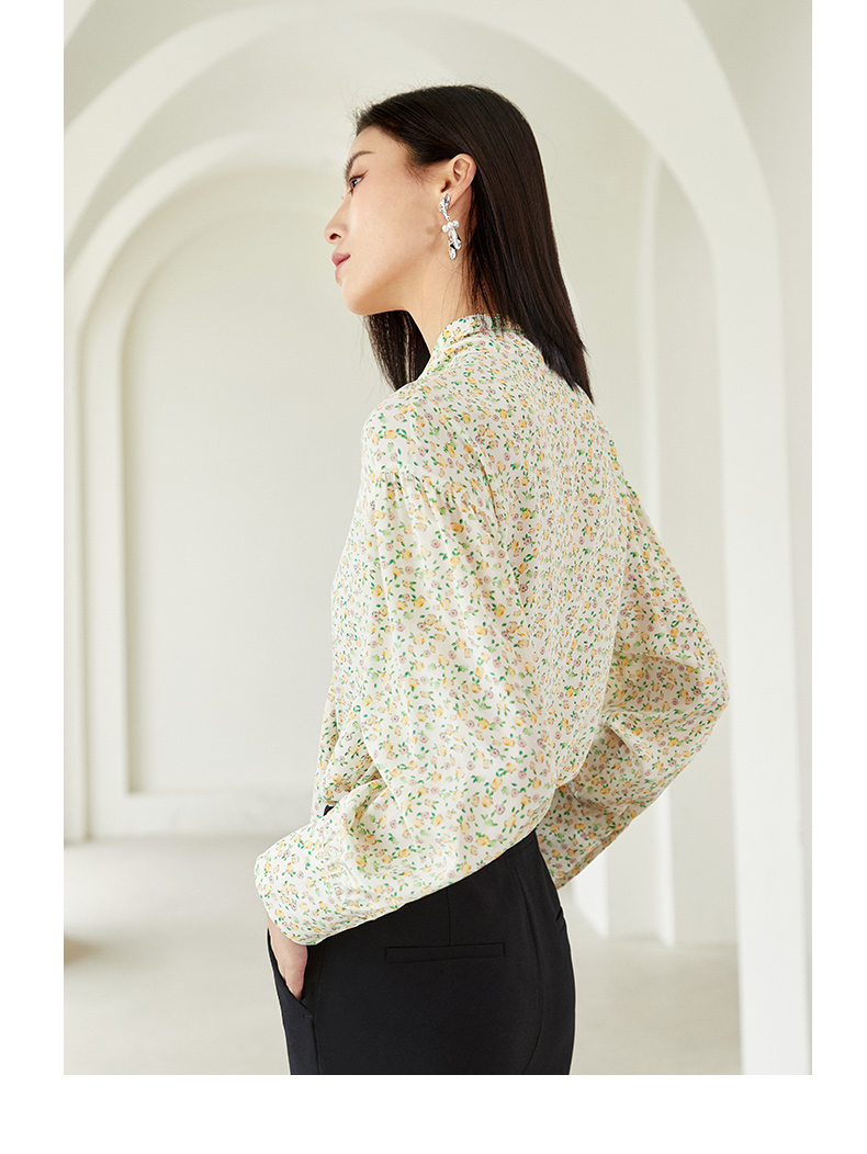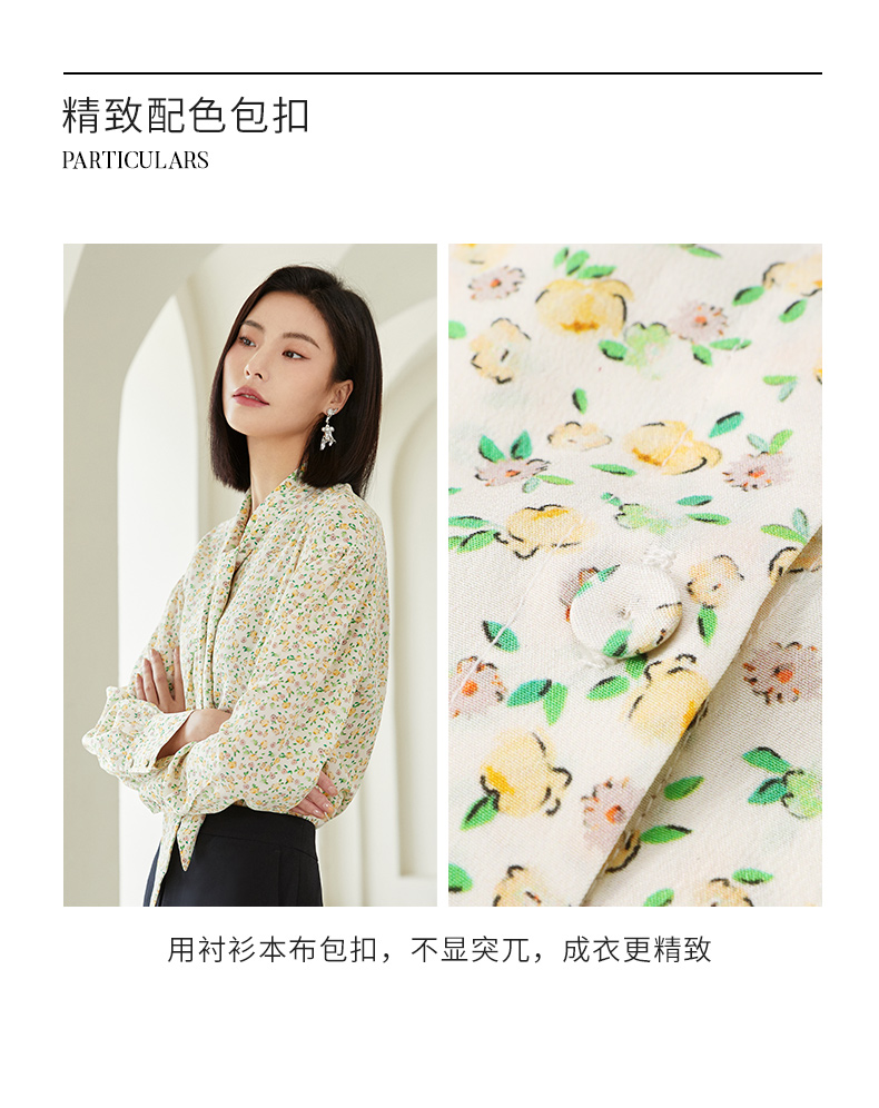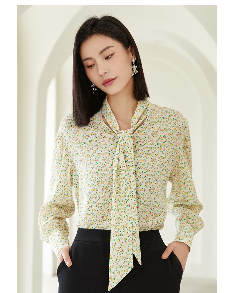玳莎飘带领印花真丝衬衫女23春新款轻奢高级感优雅复古碎花上衣 DA31302
