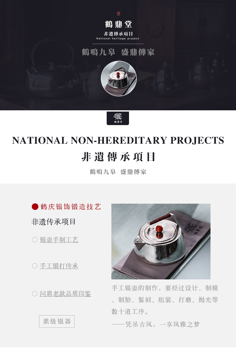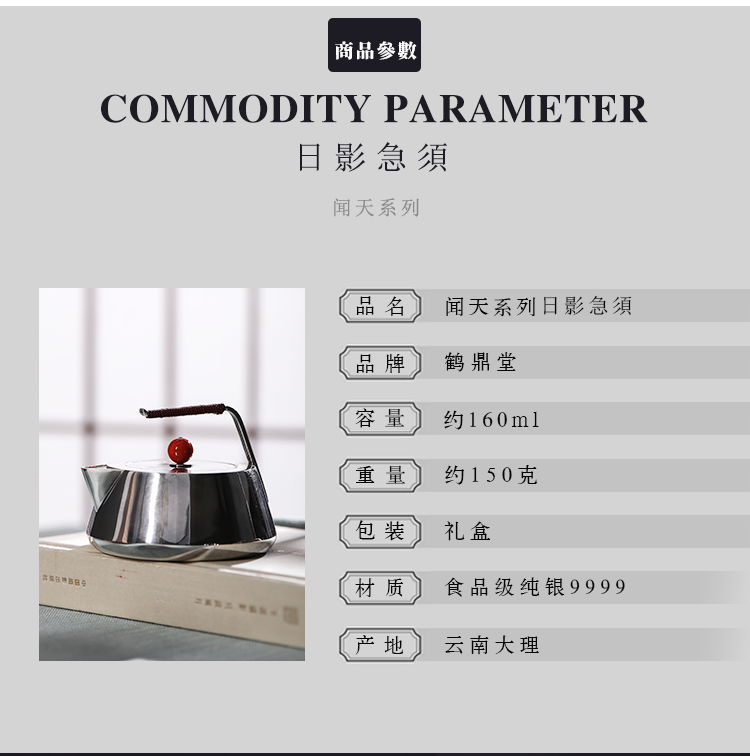 鹤鼎堂 闻天系列 日影镜面急须 纯银壶(缺货)