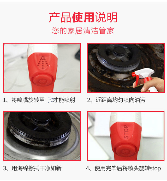 使用范围:厨房重油、抽油烟机、餐桌、地