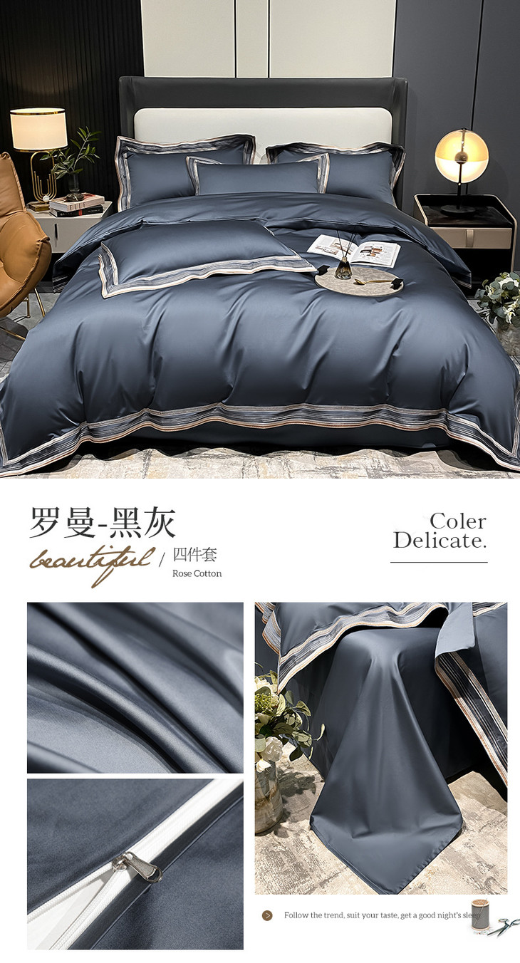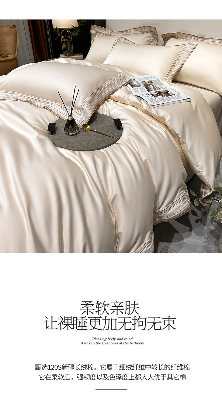 A类120支长绒棉床上四件套纯棉轻奢全棉贡缎床单被套床上用品