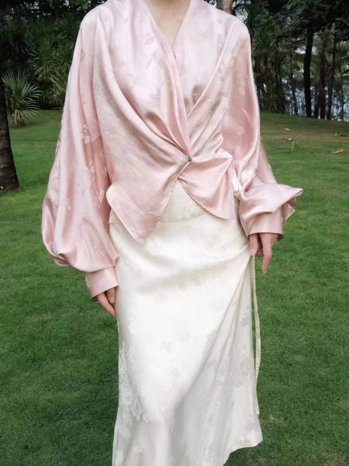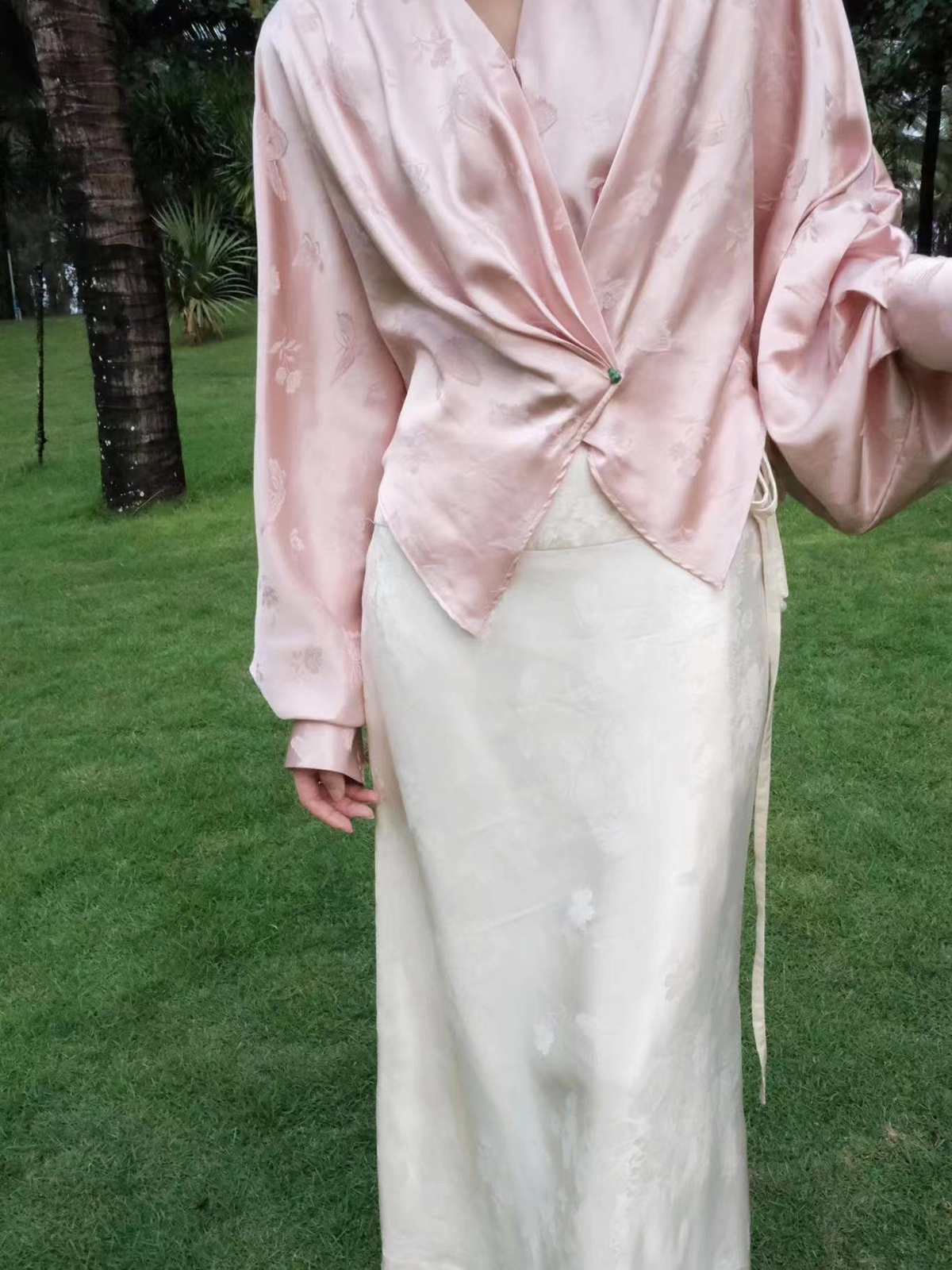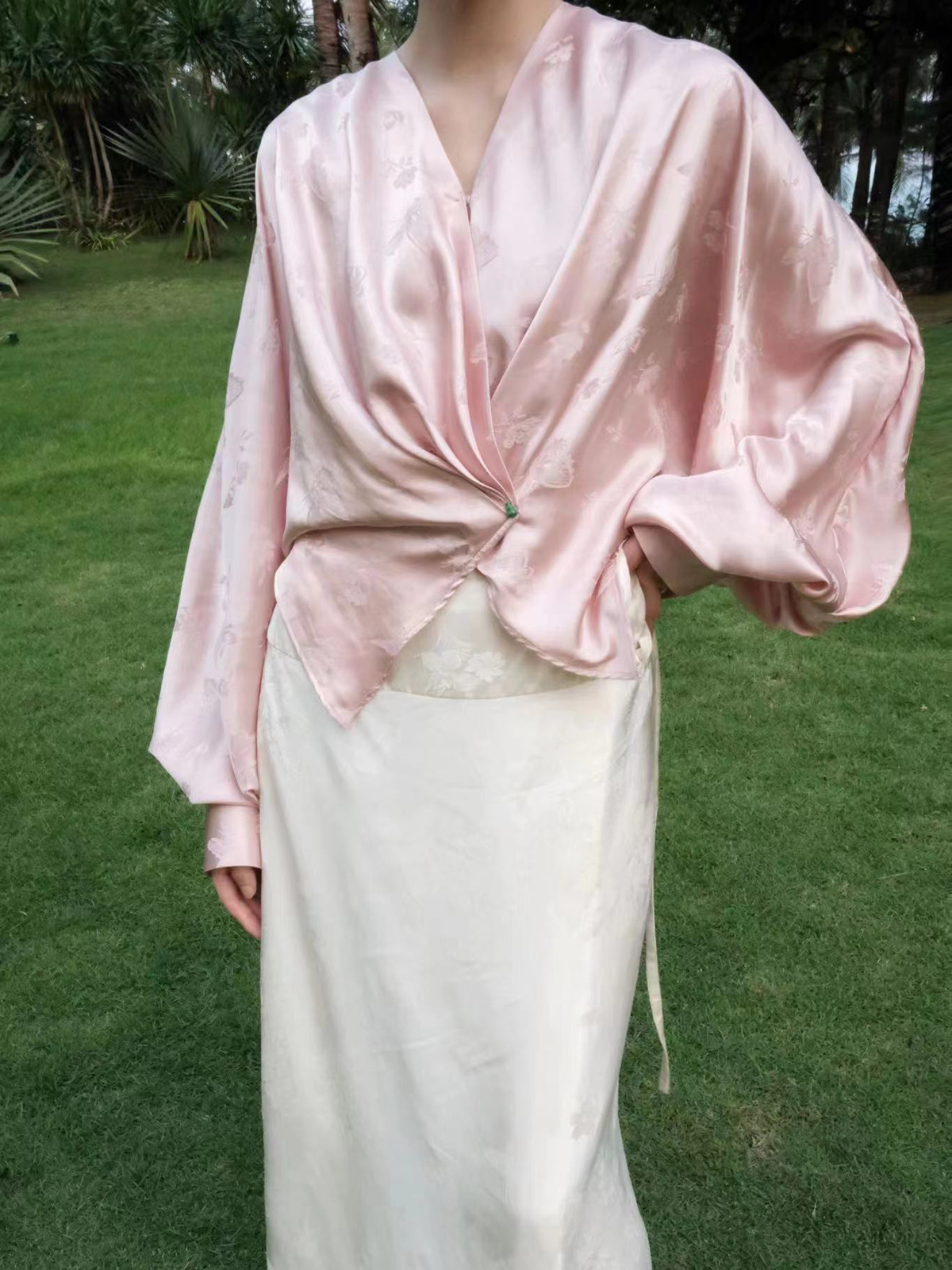 盛唐牡丹 | 粉色蝶恋花/紫色喜鹊缠枝真丝提花褶皱上衣