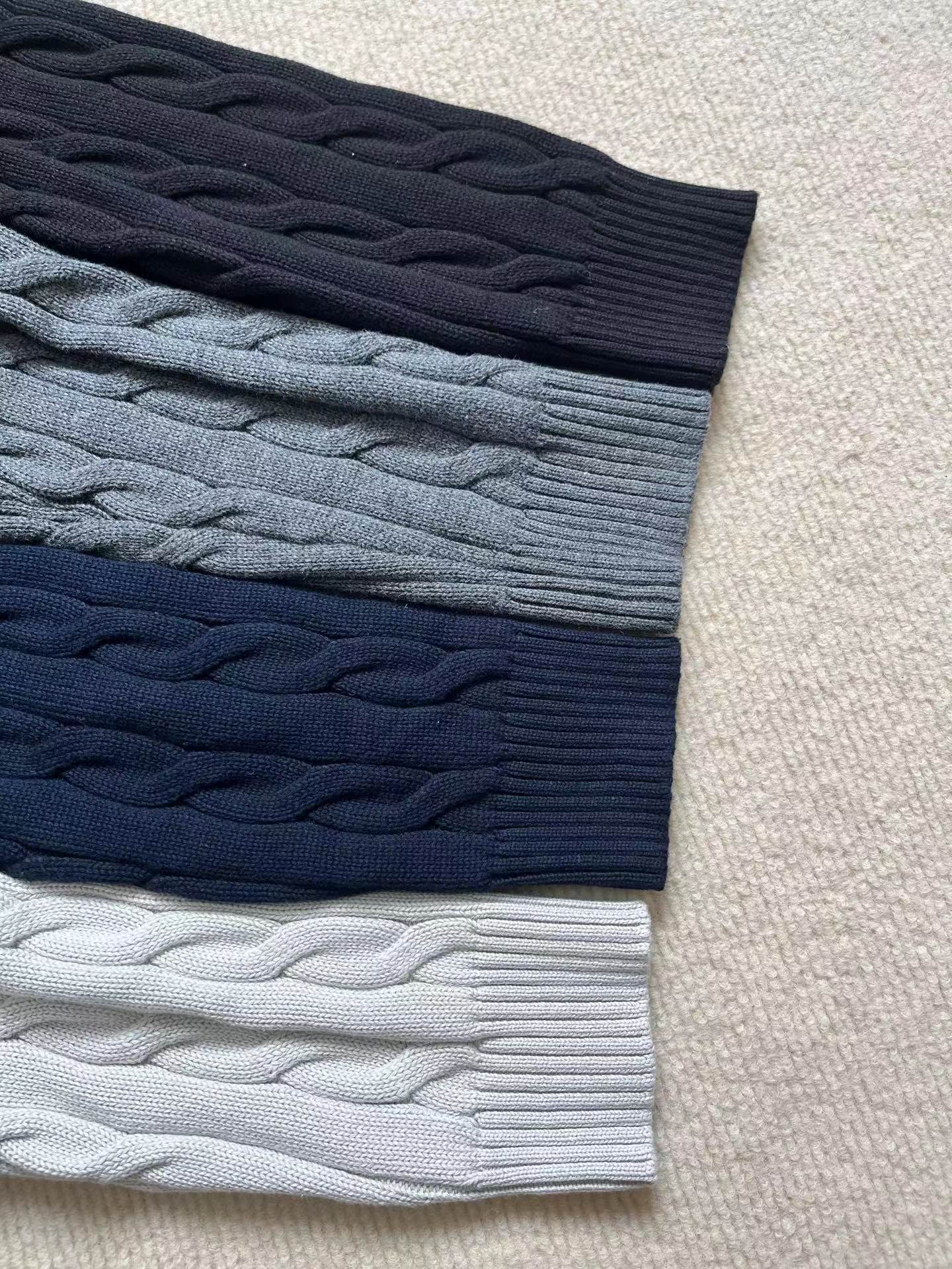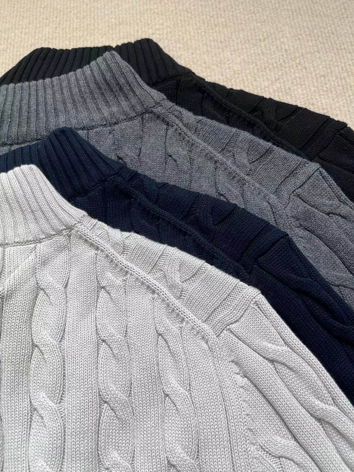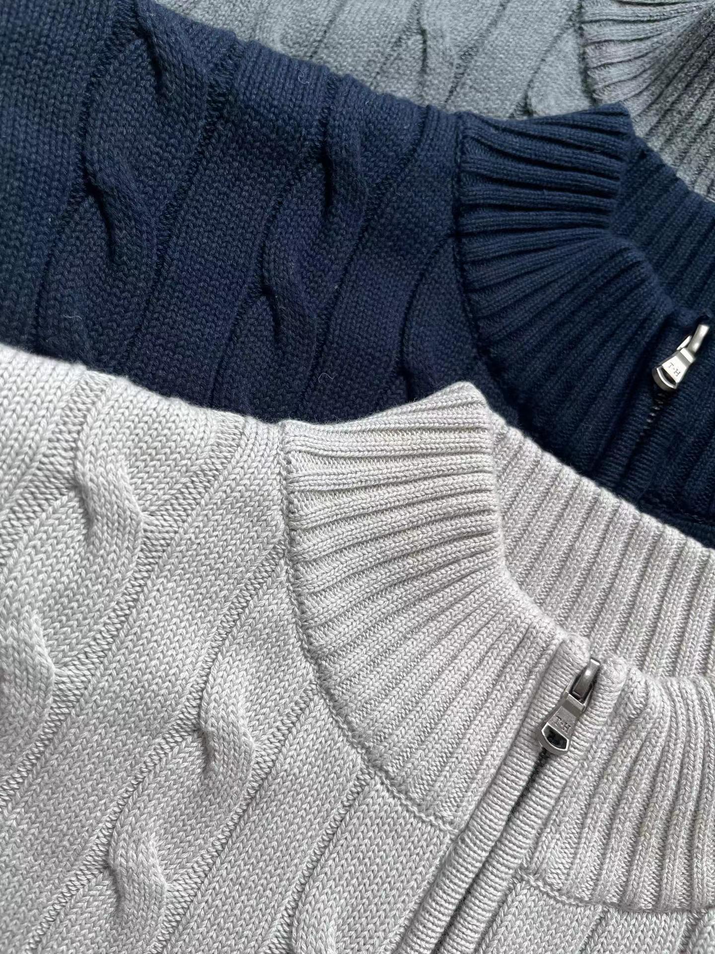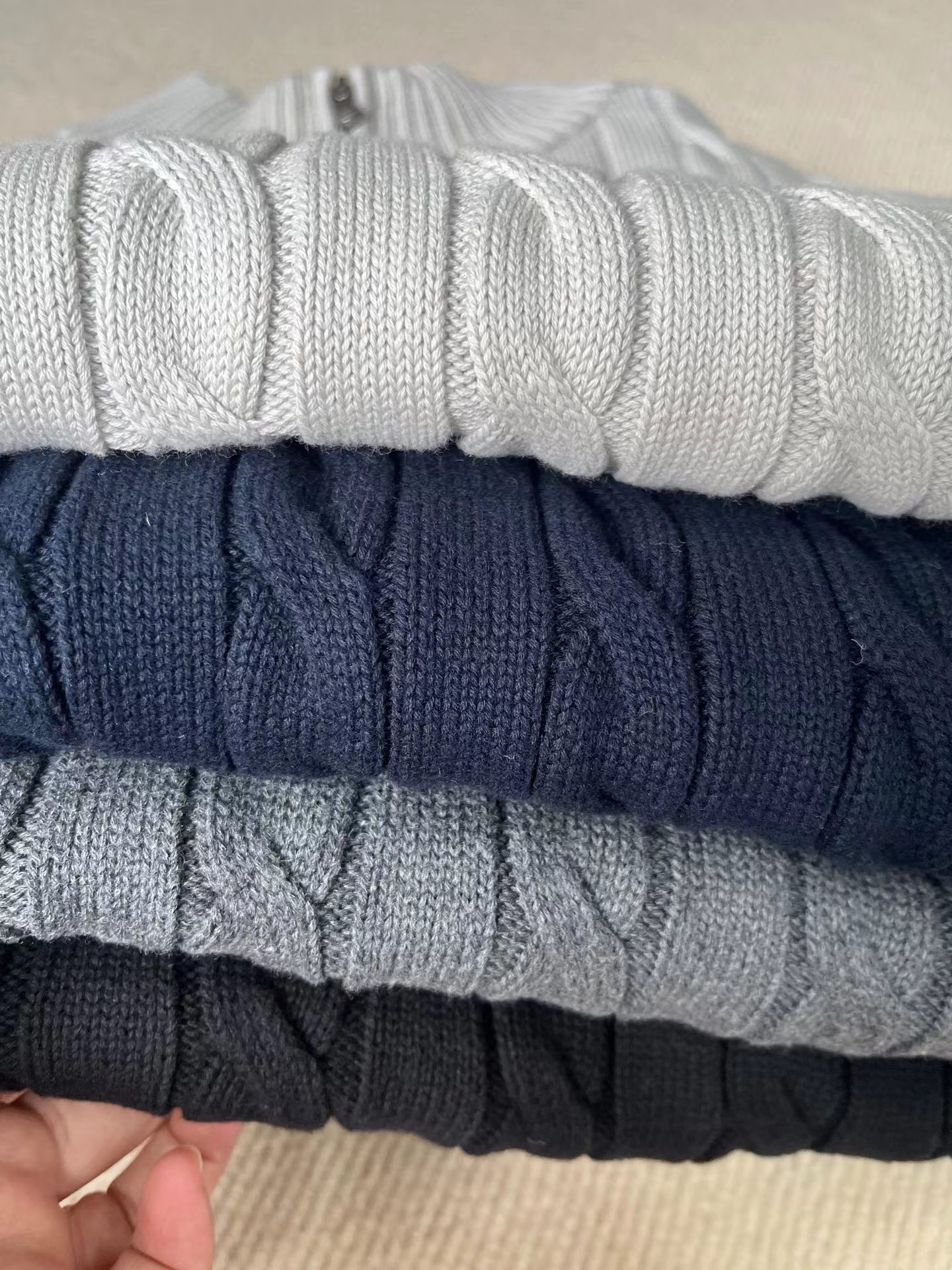 25新款秋冬男装绞花肌理半拉链立领全棉针织衫毛衣!精选纯棉,客供面料+進口横机织造 不扎人,超凡的柔顺度和柔肤性 纱线平整密实 相当防风保暖 高克重 软糯亲肤 体感炒级舒服 完全可以裸穿的那一种!领子是一个立领可翻+半拉链的设计,保暖性灰常高,拉开拉链敞开也灰常的帅气,两穿型的,上身JU帅气!拉链也是定制的,品质灰常的好!下摆袖口都是细腻紧实的螺纹拼接,很好的束口效果!更好的保暖,上身更加有型,且灰常显身材!