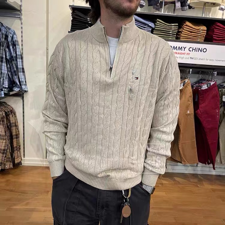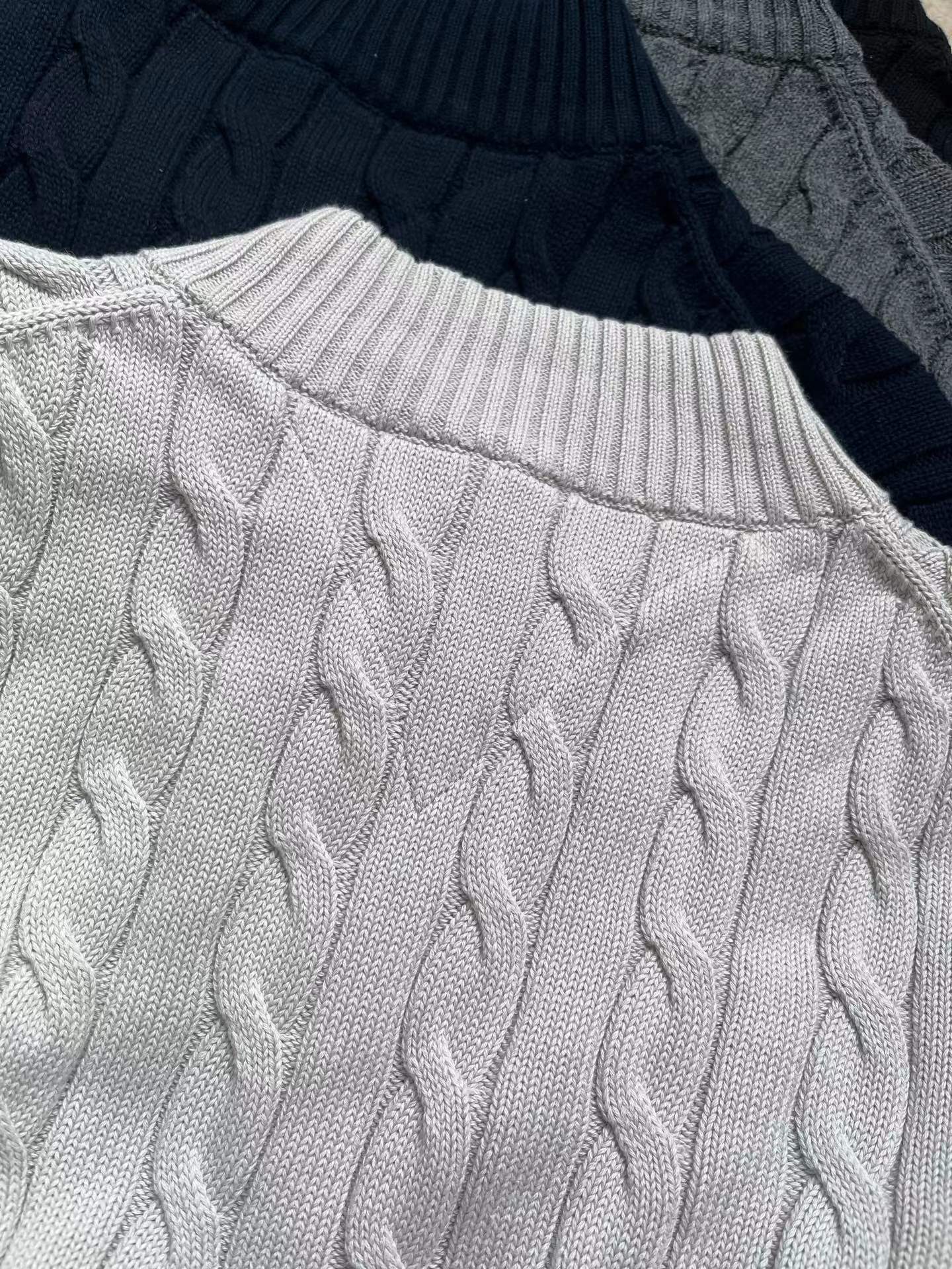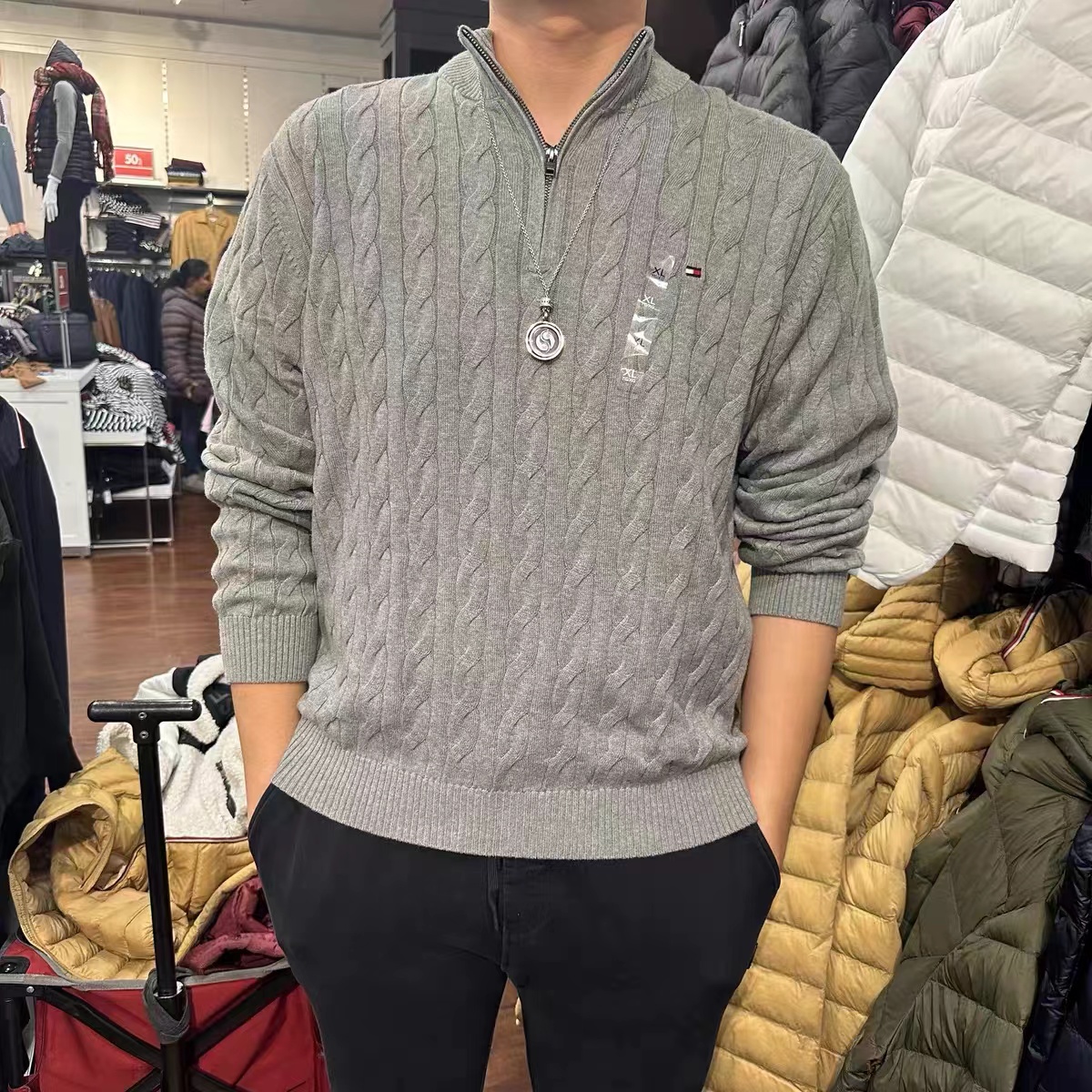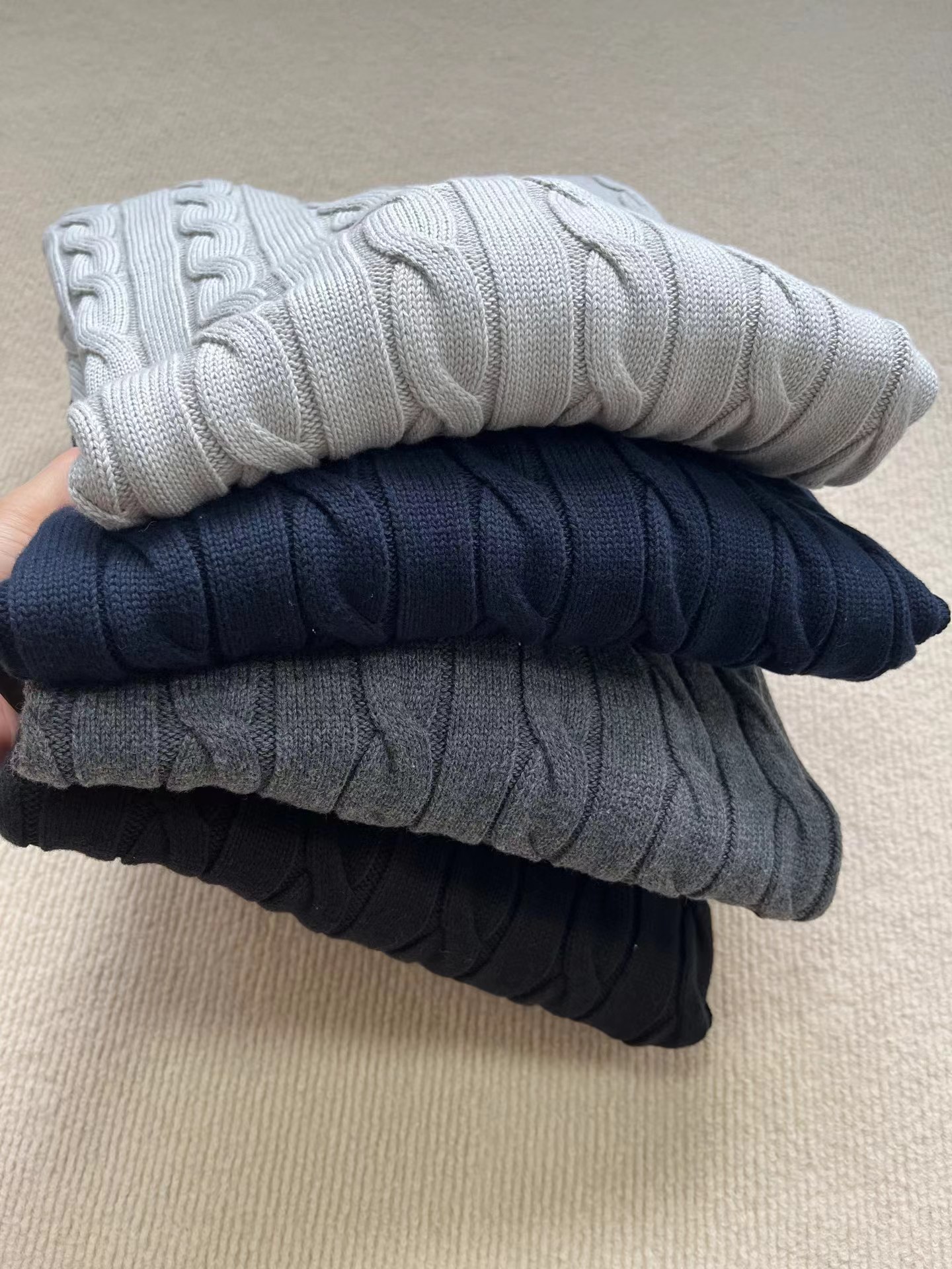 25新款秋冬男装绞花肌理半拉链立领全棉针织衫毛衣!精选纯棉,客供面料+進口横机织造 不扎人,超凡的柔顺度和柔肤性 纱线平整密实 相当防风保暖 高克重 软糯亲肤 体感炒级舒服 完全可以裸穿的那一种!领子是一个立领可翻+半拉链的设计,保暖性灰常高,拉开拉链敞开也灰常的帅气,两穿型的,上身JU帅气!拉链也是定制的,品质灰常的好!下摆袖口都是细腻紧实的螺纹拼接,很好的束口效果!更好的保暖,上身更加有型,且灰常显身材!