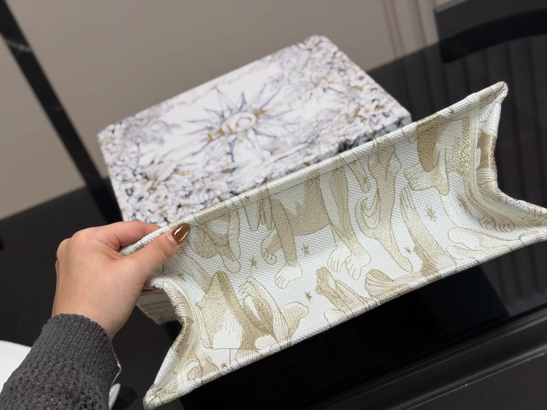 配折叠盒丝巾 原版布提花 book tote今年醉喜欢的一款购物袋 tote我用的次数最多的包因为容量超大不管什么东西都向里面放当然凹造型也是必须有