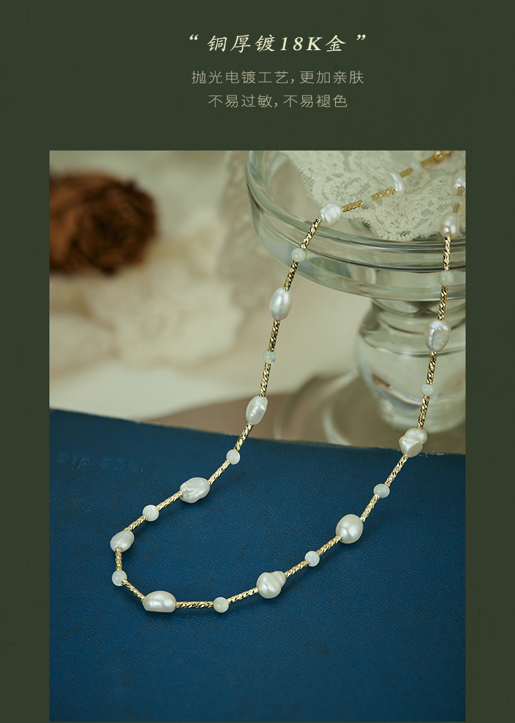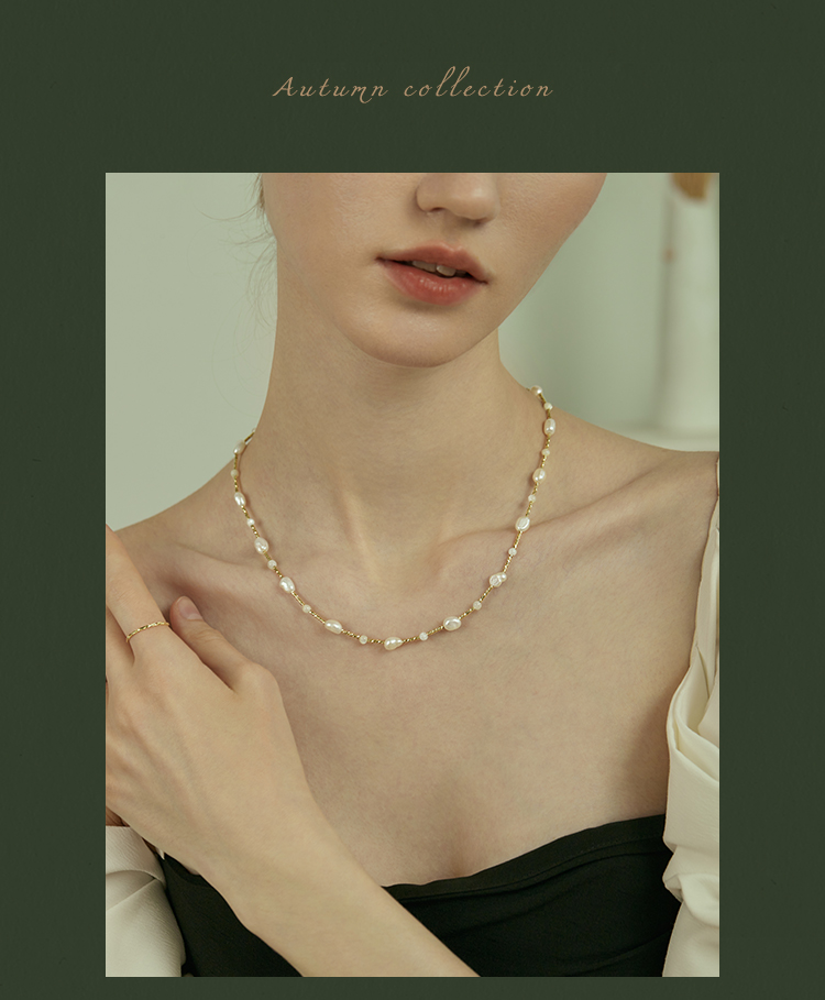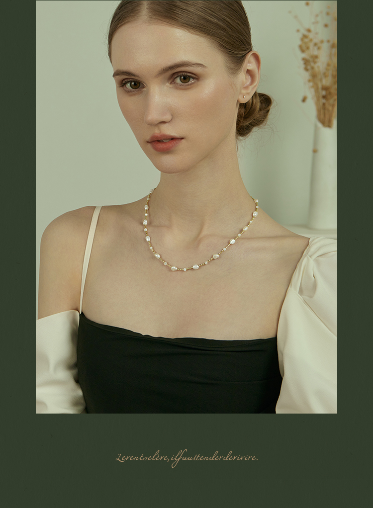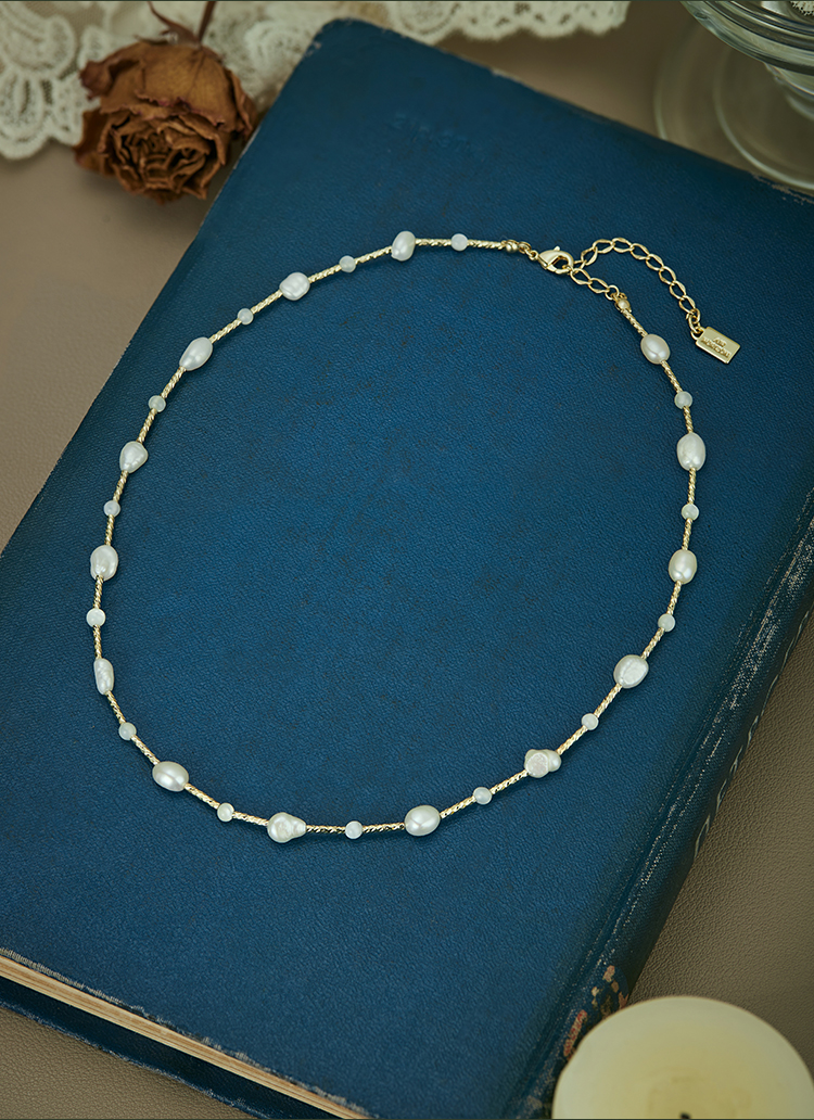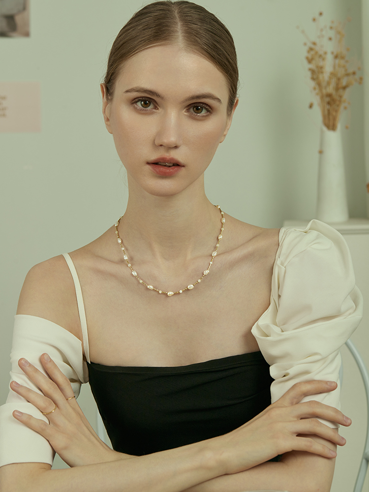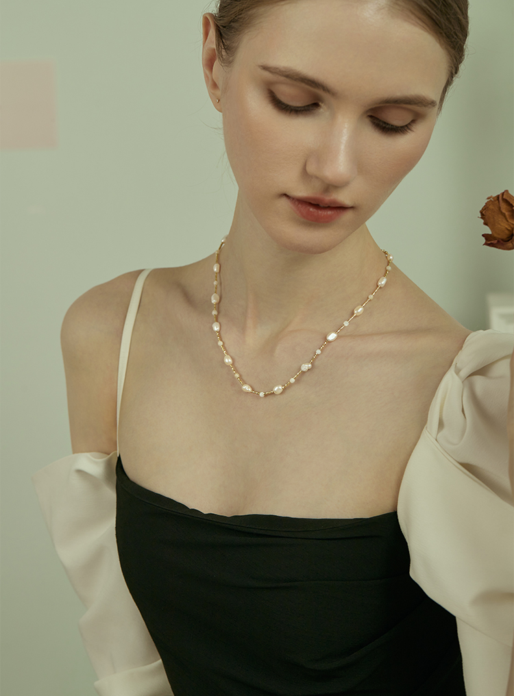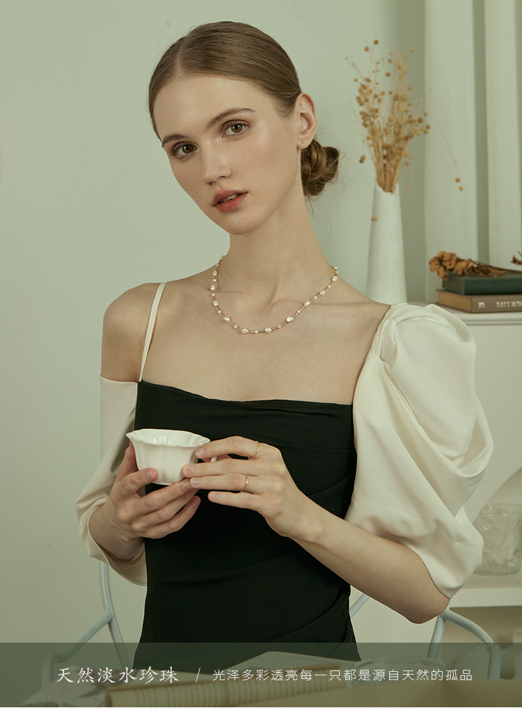 Oflye潮流饰品 新款满天星珍珠项链女天然淡水珠项链小众多巴胺珍珠错落颈链