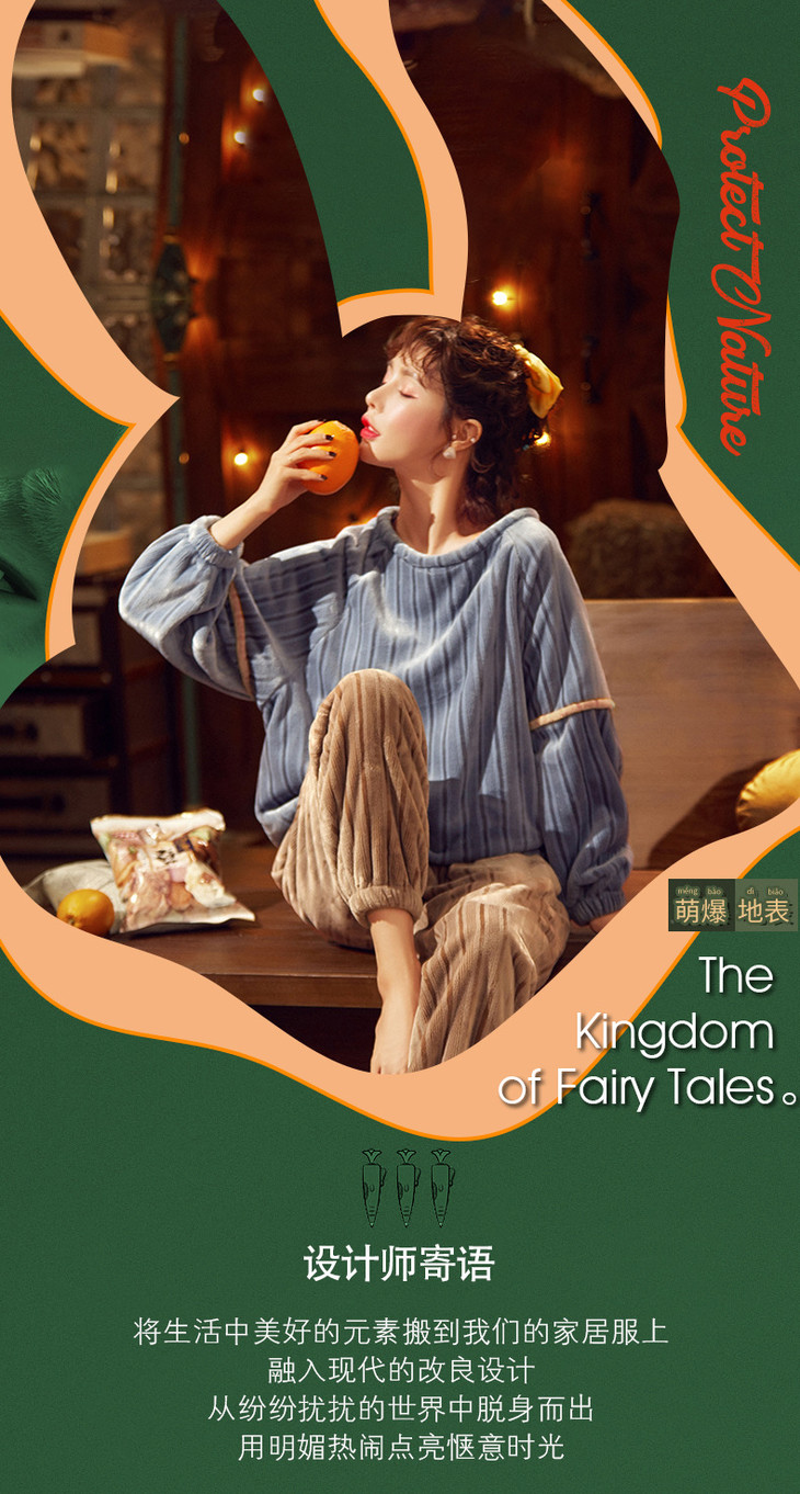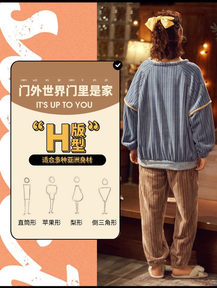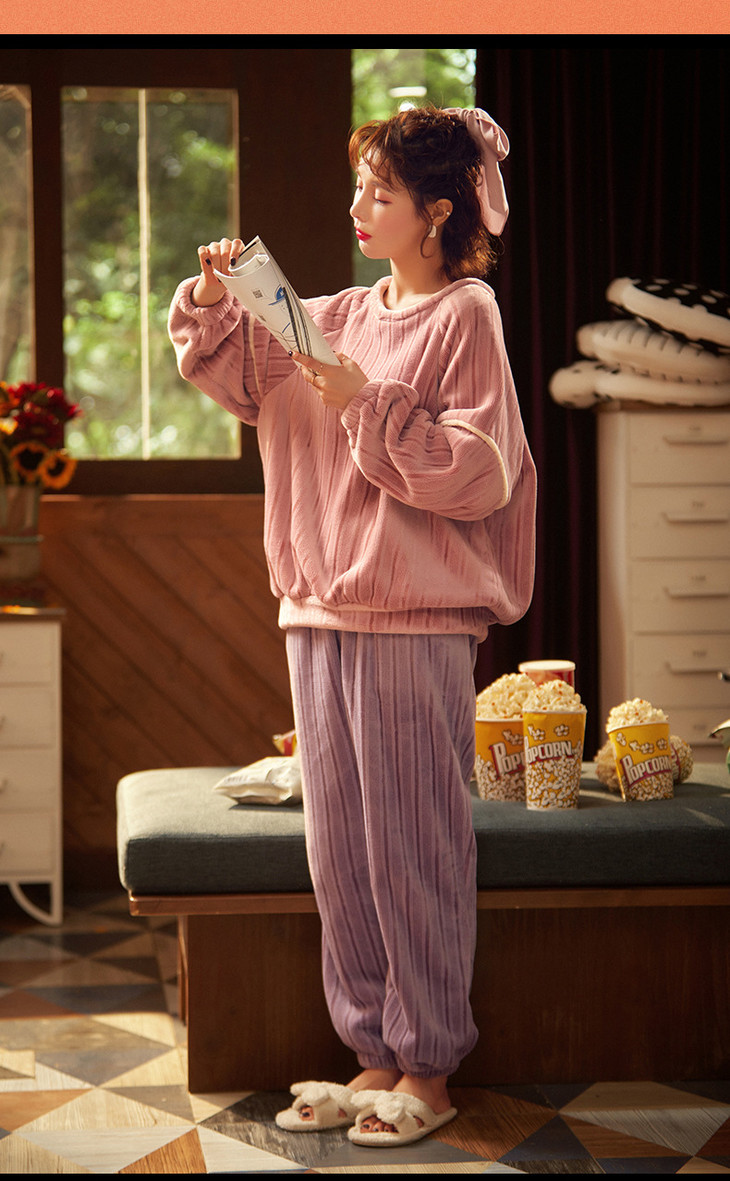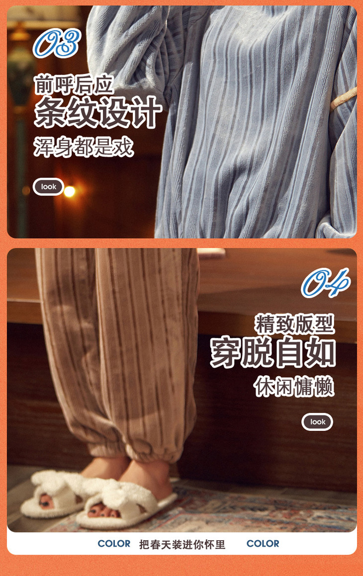 【睡衣女】*秋冬季长袖法兰绒家居服套装