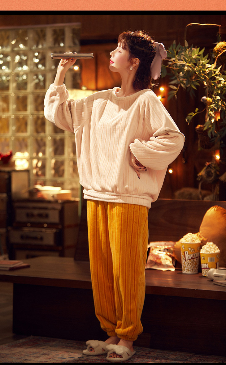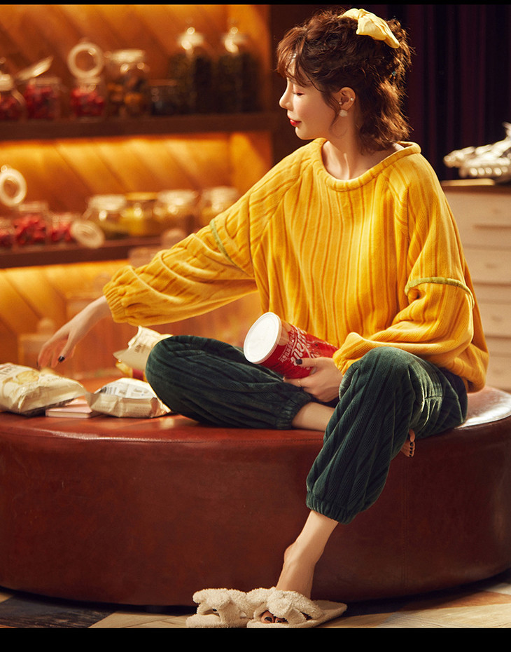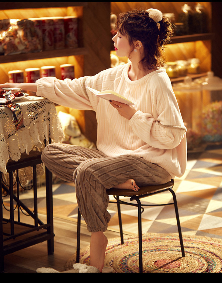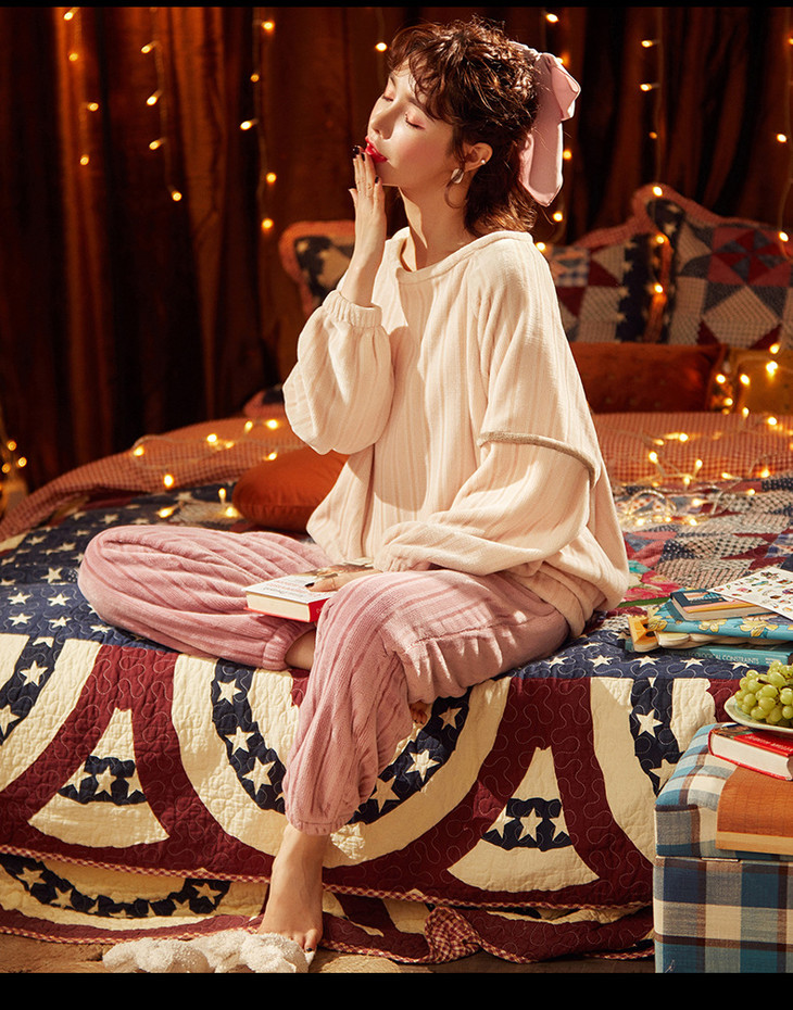 【睡衣女】*秋冬季长袖法兰绒家居服套装