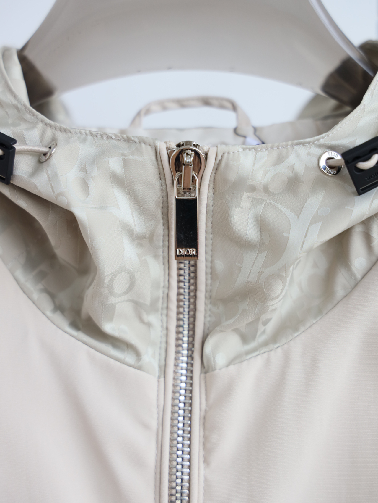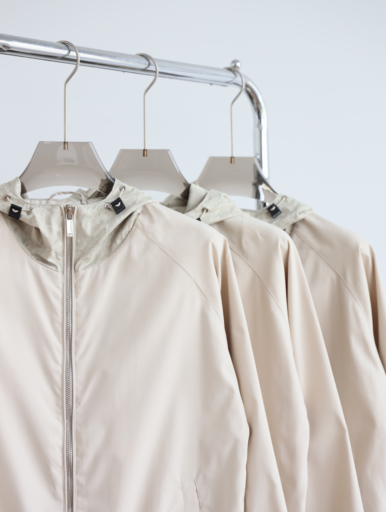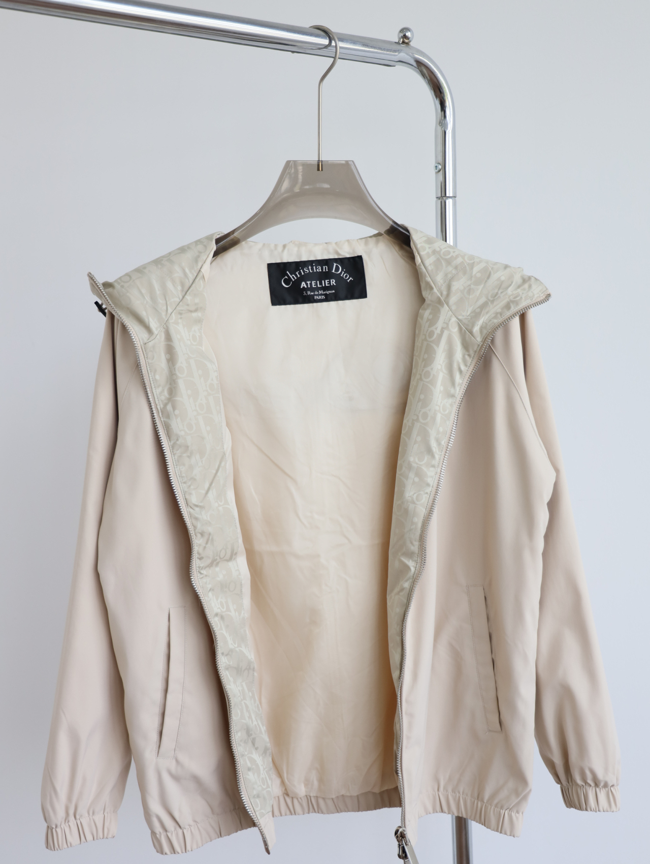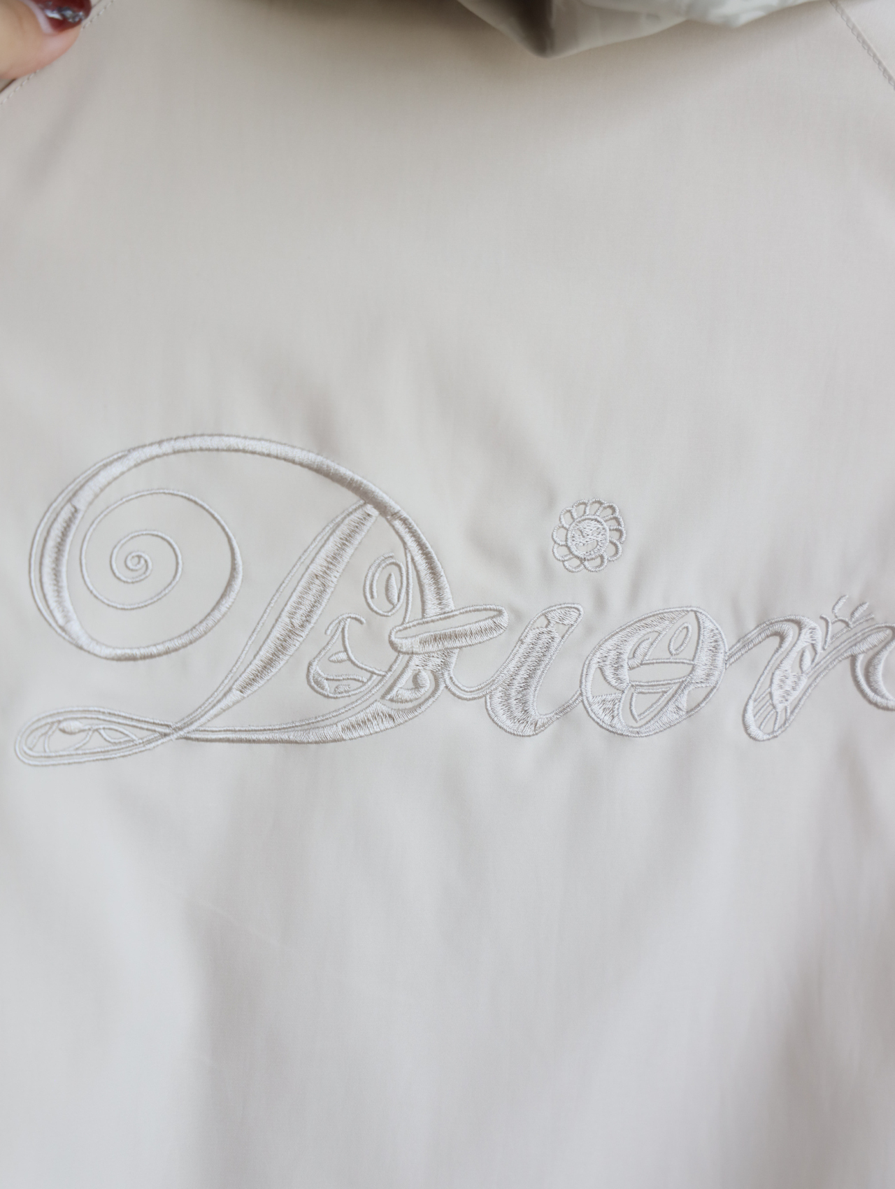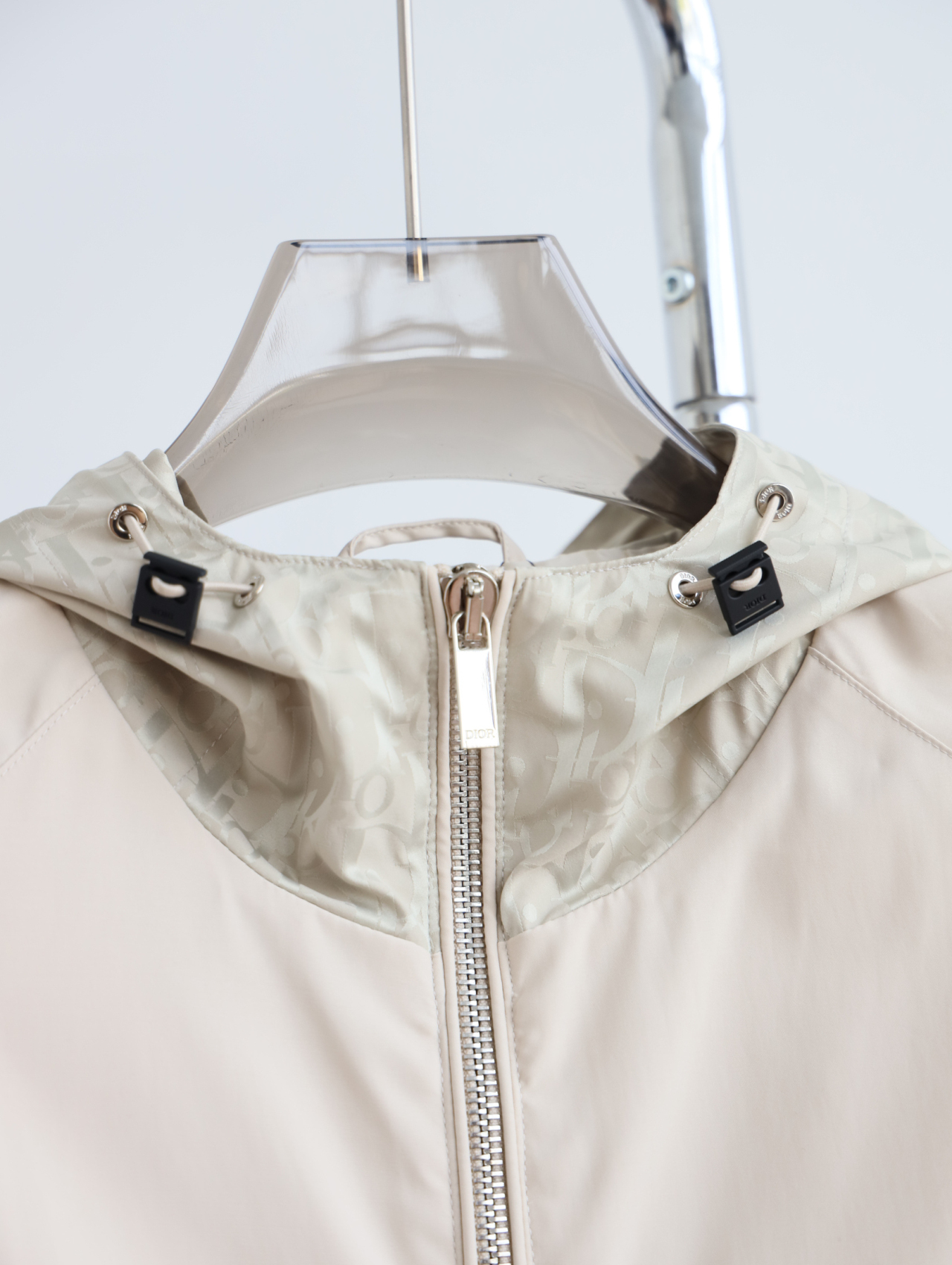 卡其色单色,连帽是西D老花的样色,大身纯色,后背也是同色系刺绣印花