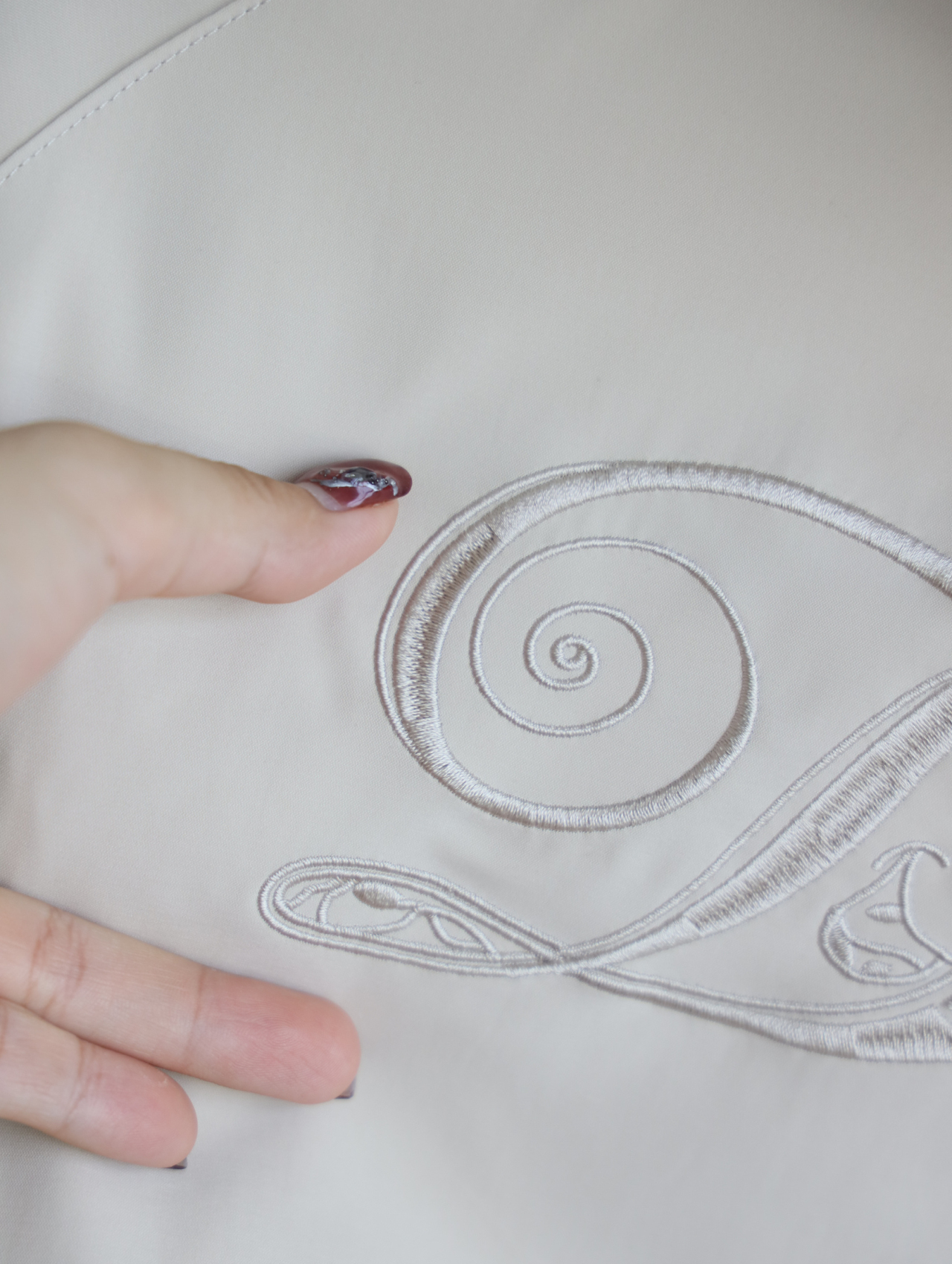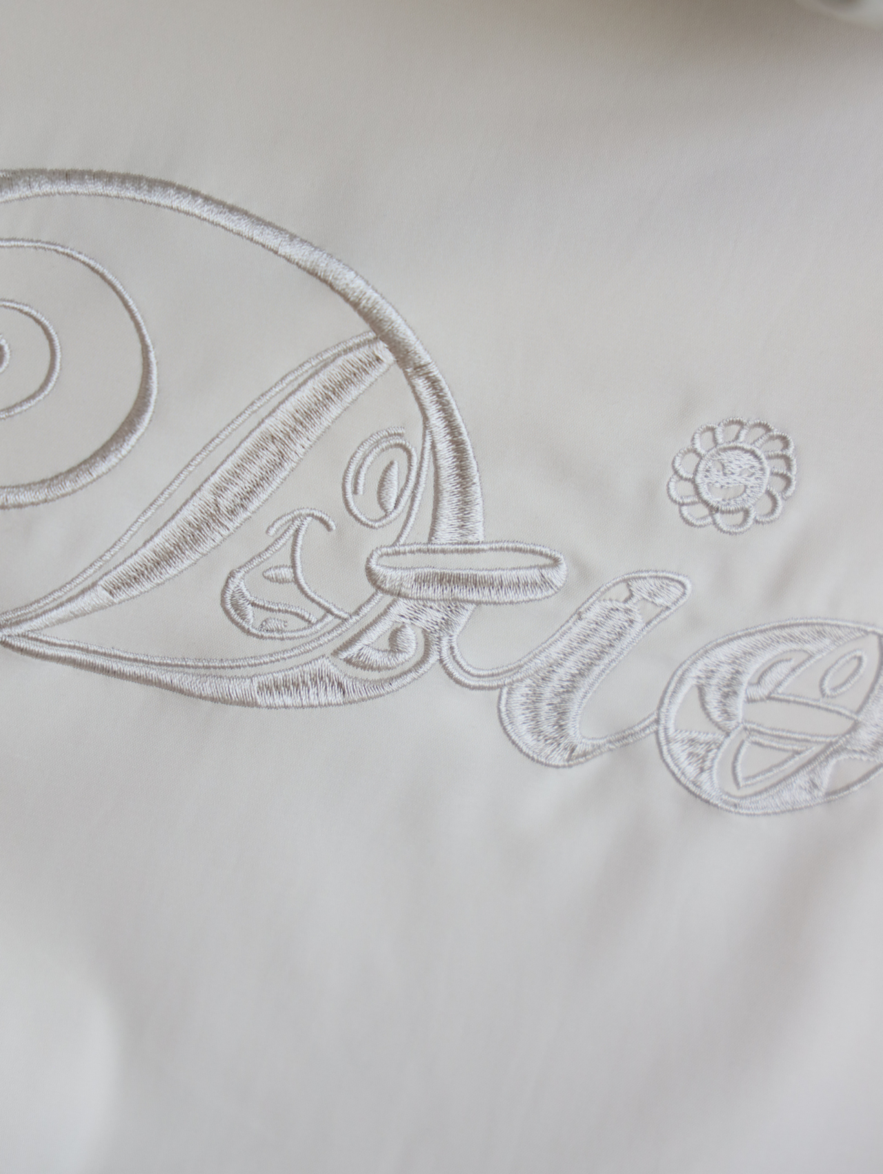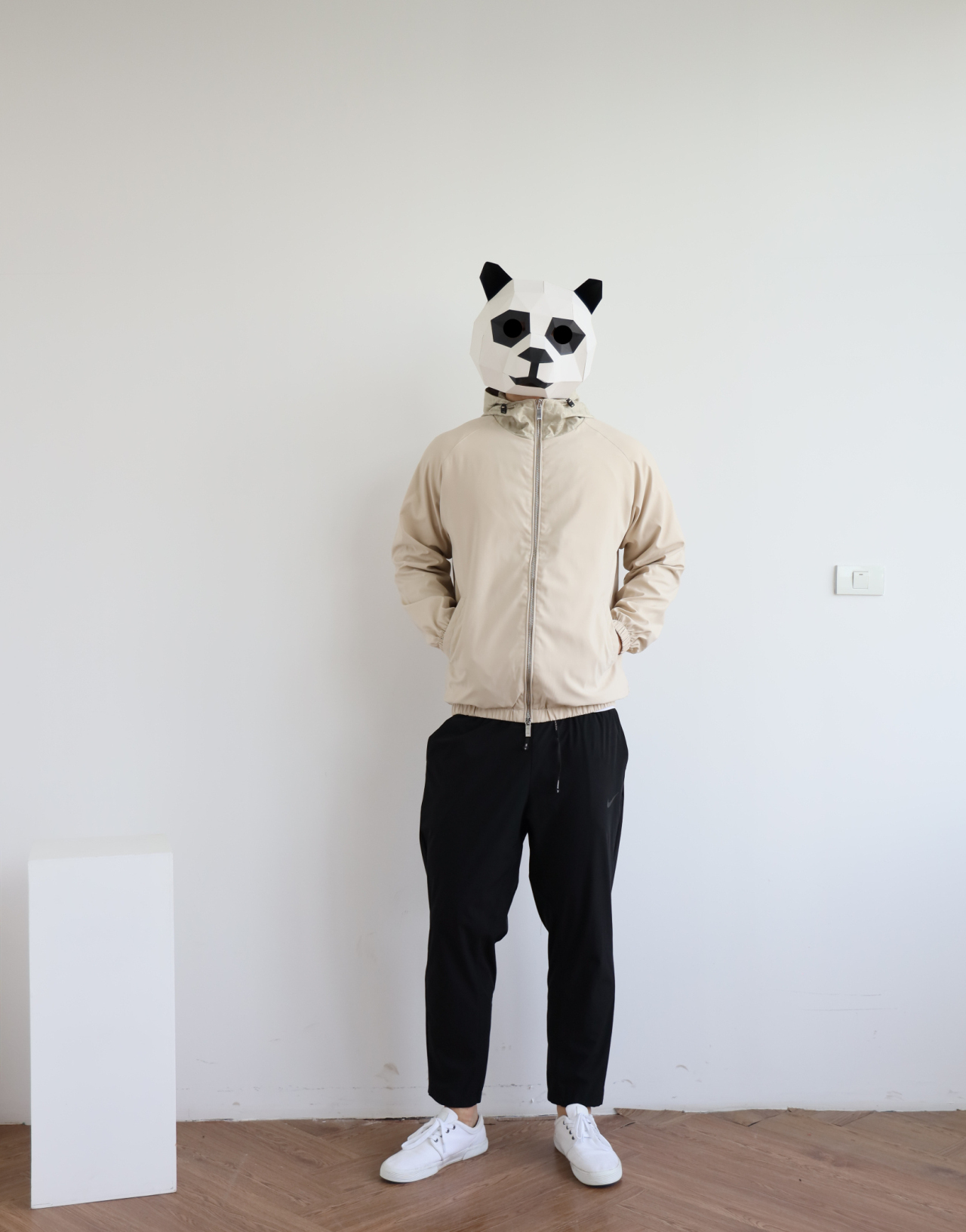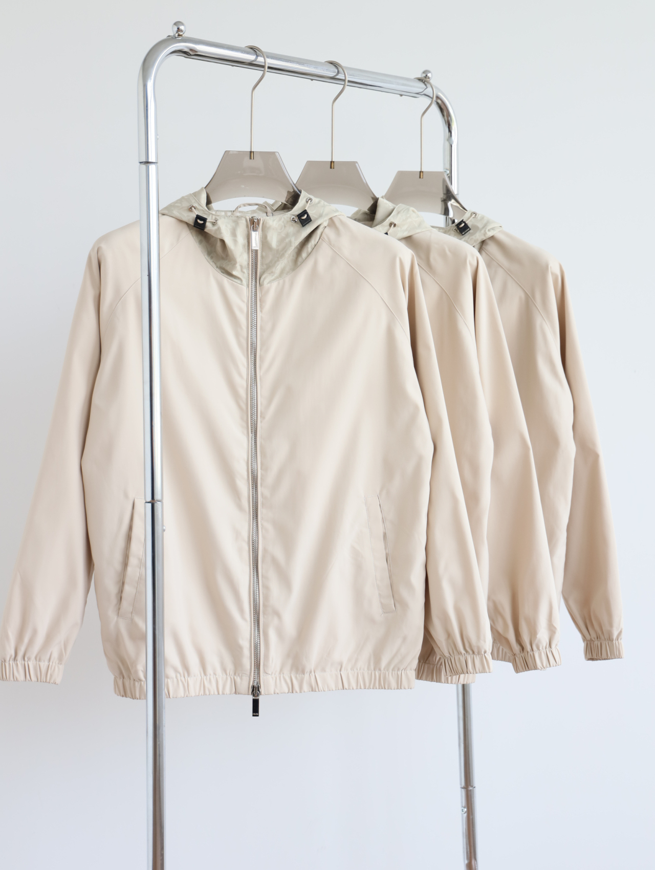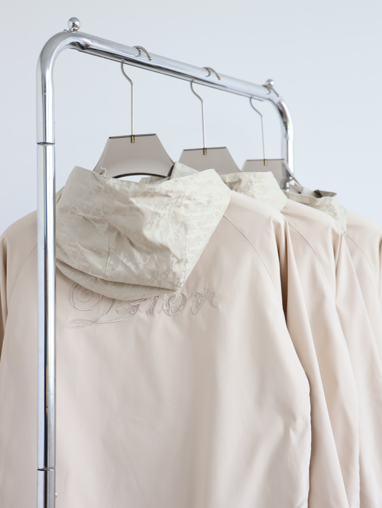 卡其色单色,连帽是西D老花的样色,大身纯色,后背也是同色系刺绣印花