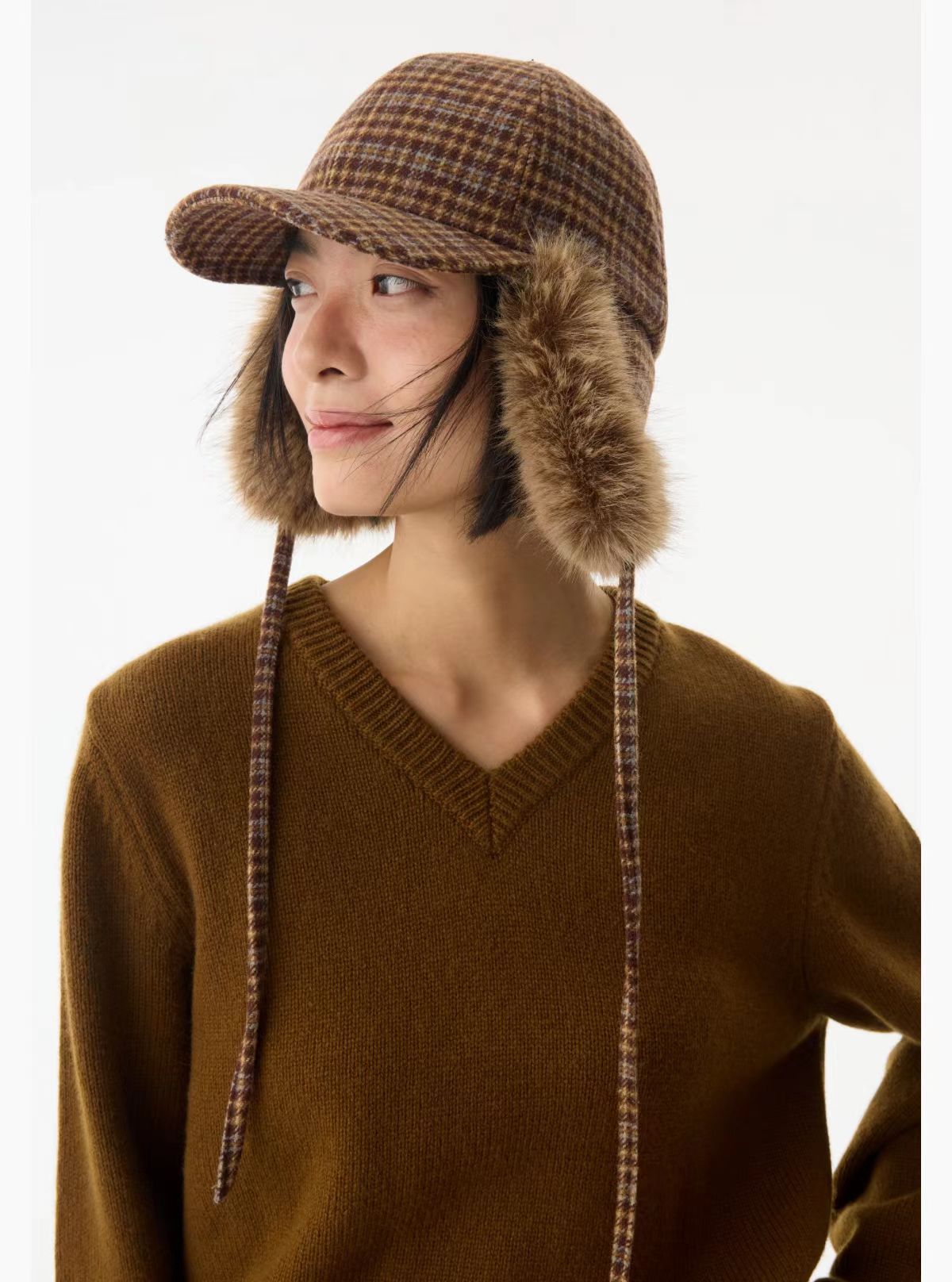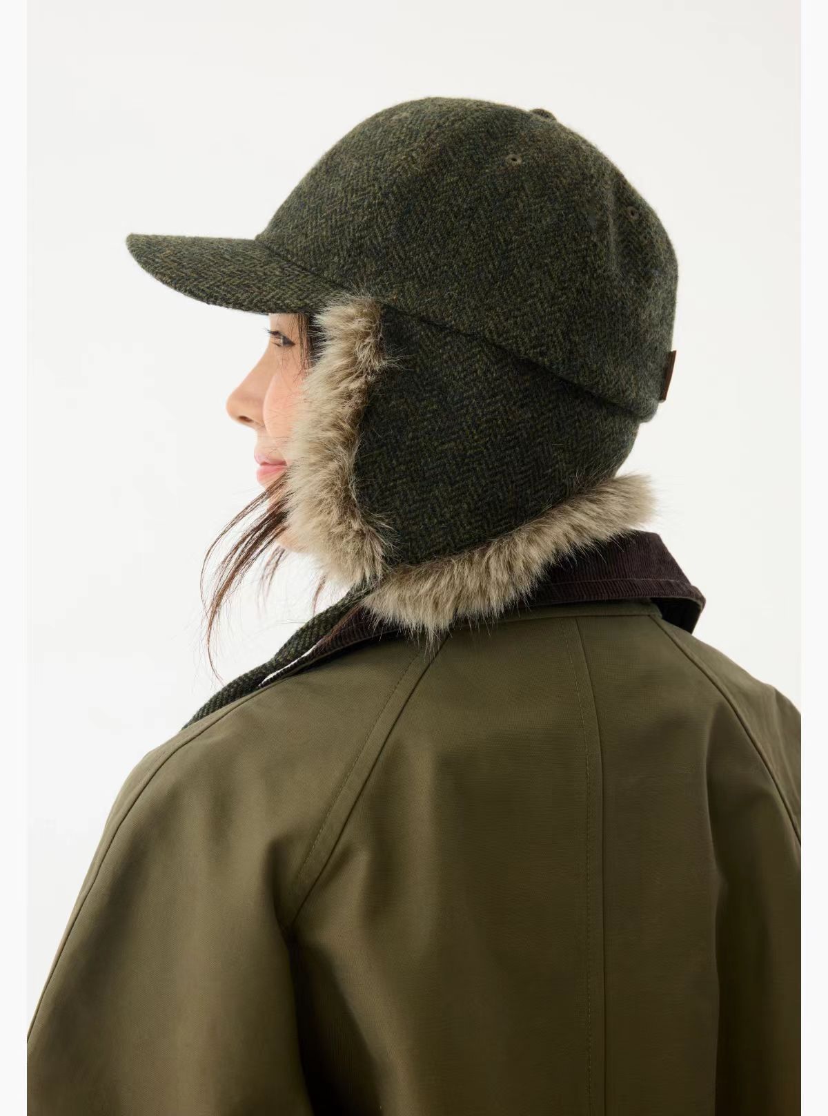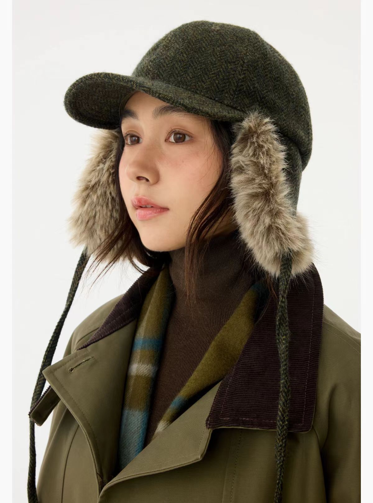4楼Eubelle欧蓓 上森派系羊毛雷锋帽女 新款鸭舌宽帽檐 显脸小护耳毛绒帽 活动价:389.9元
