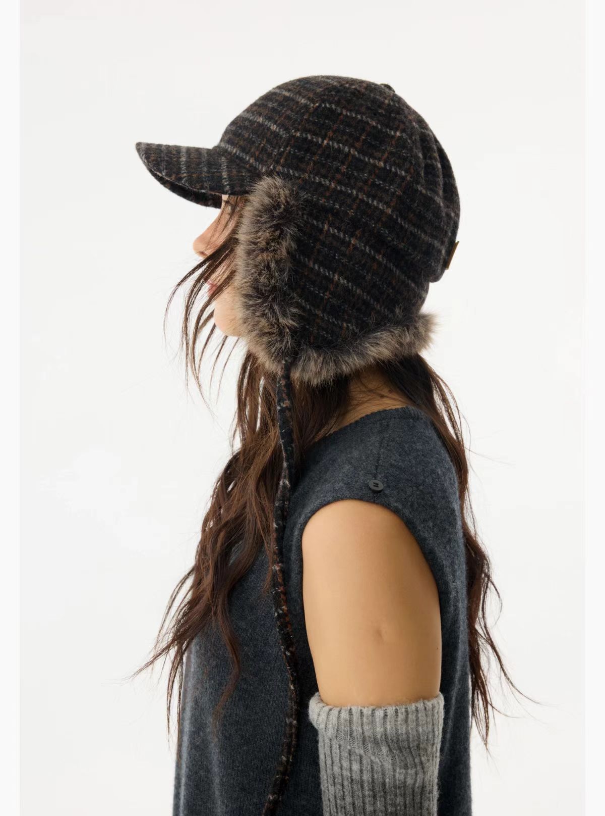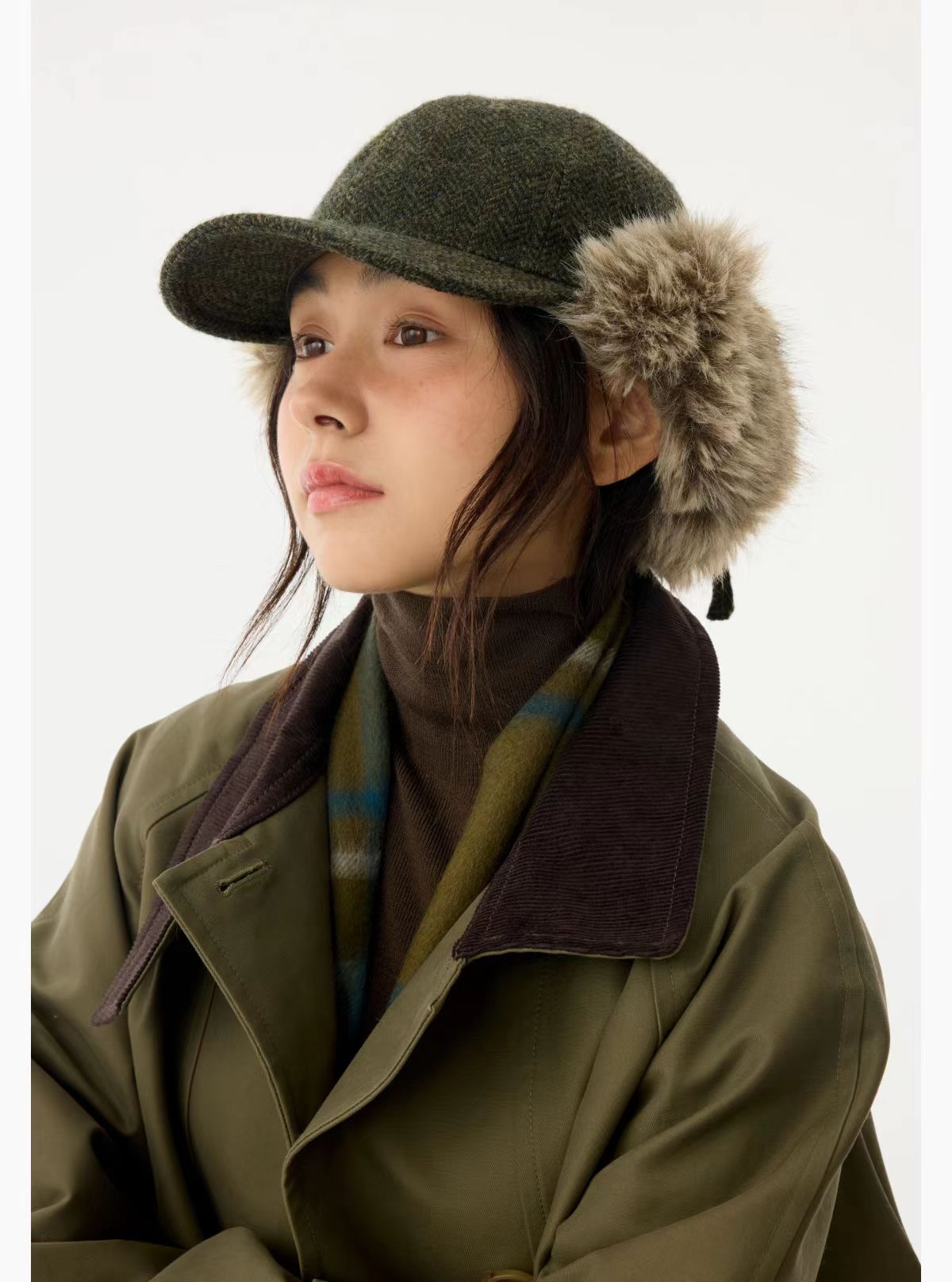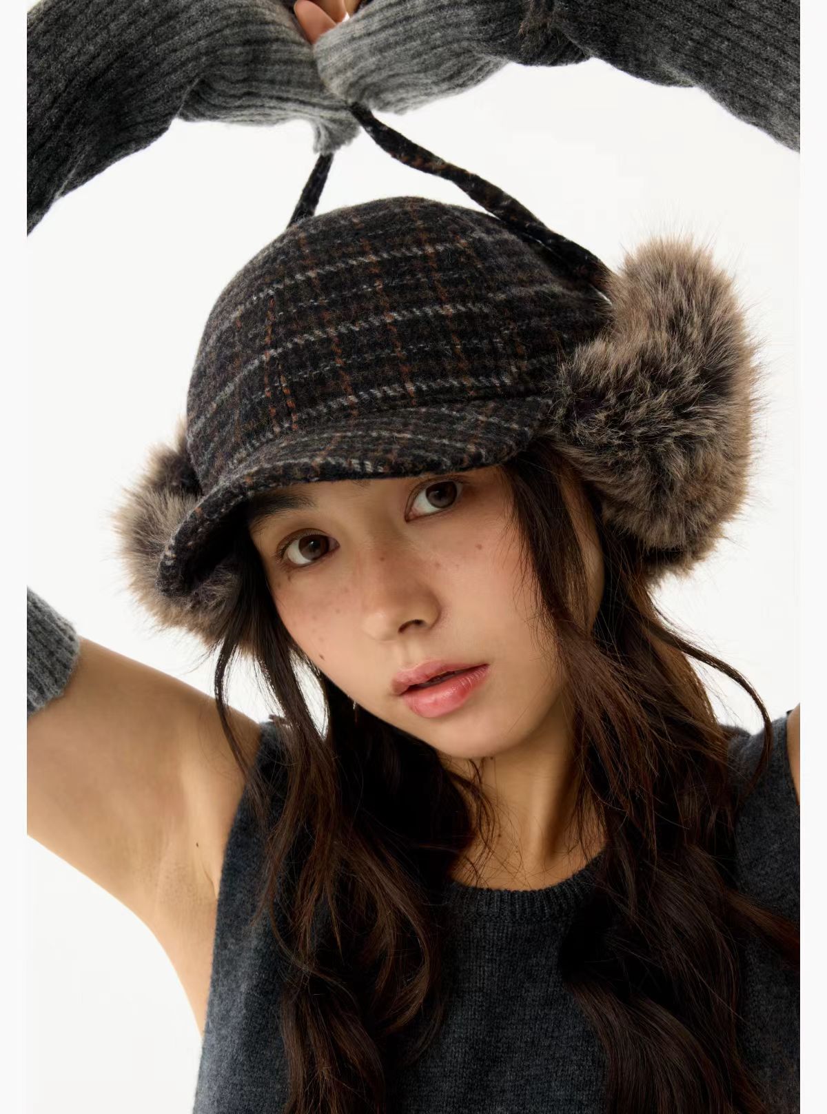 4楼Eubelle欧蓓 上森派系羊毛雷锋帽女 新款鸭舌宽帽檐 显脸小护耳毛绒帽 活动价:389.9元