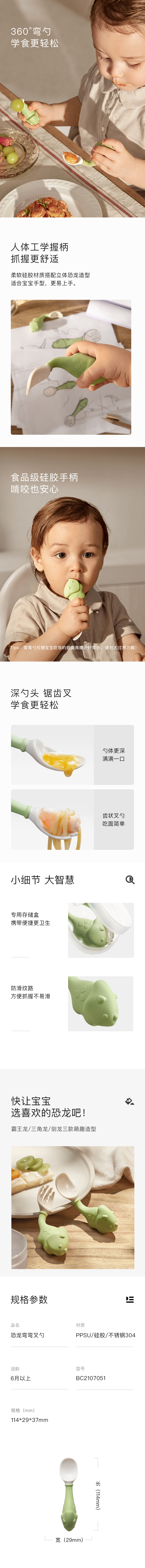 baby care带收纳盒恐龙弯弯叉勺-三角龙BC2107051