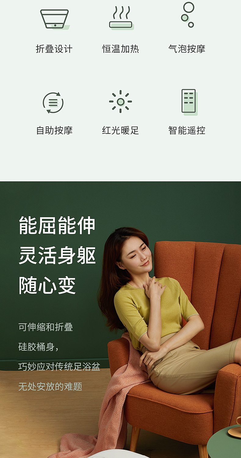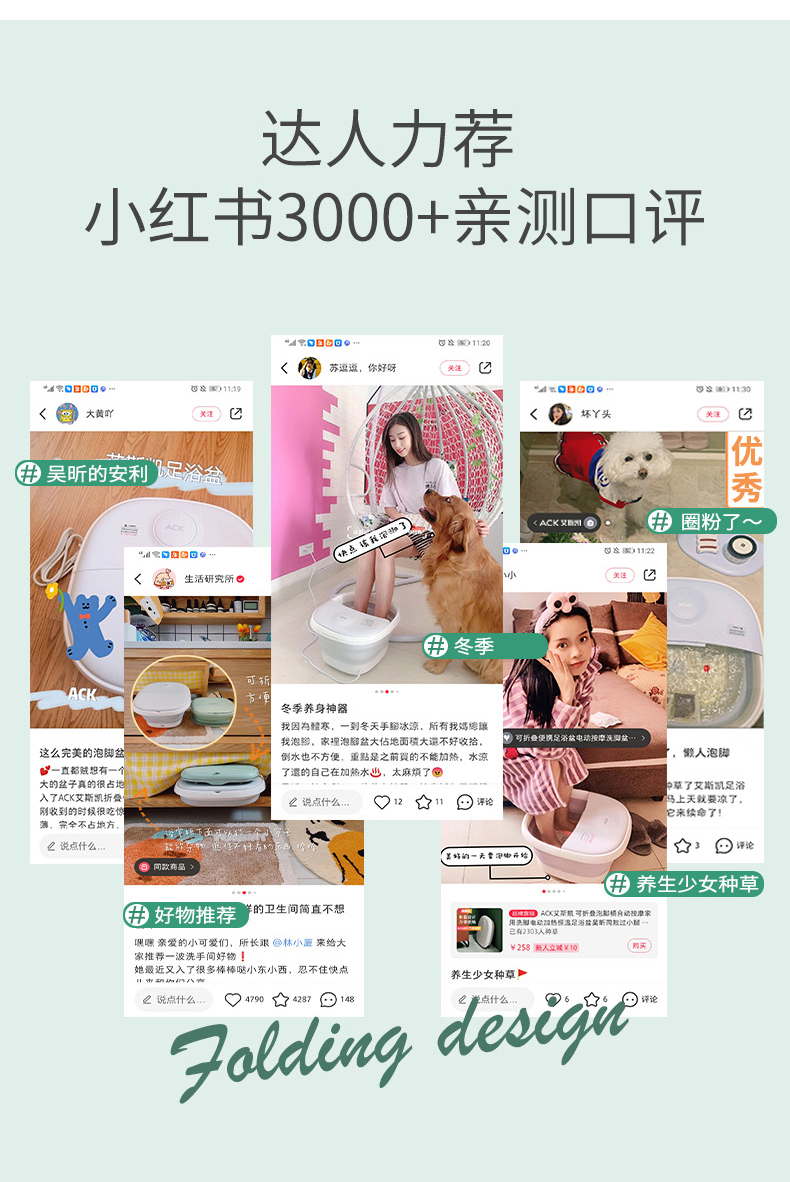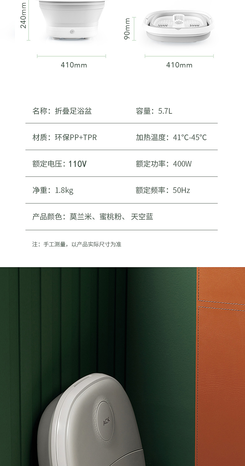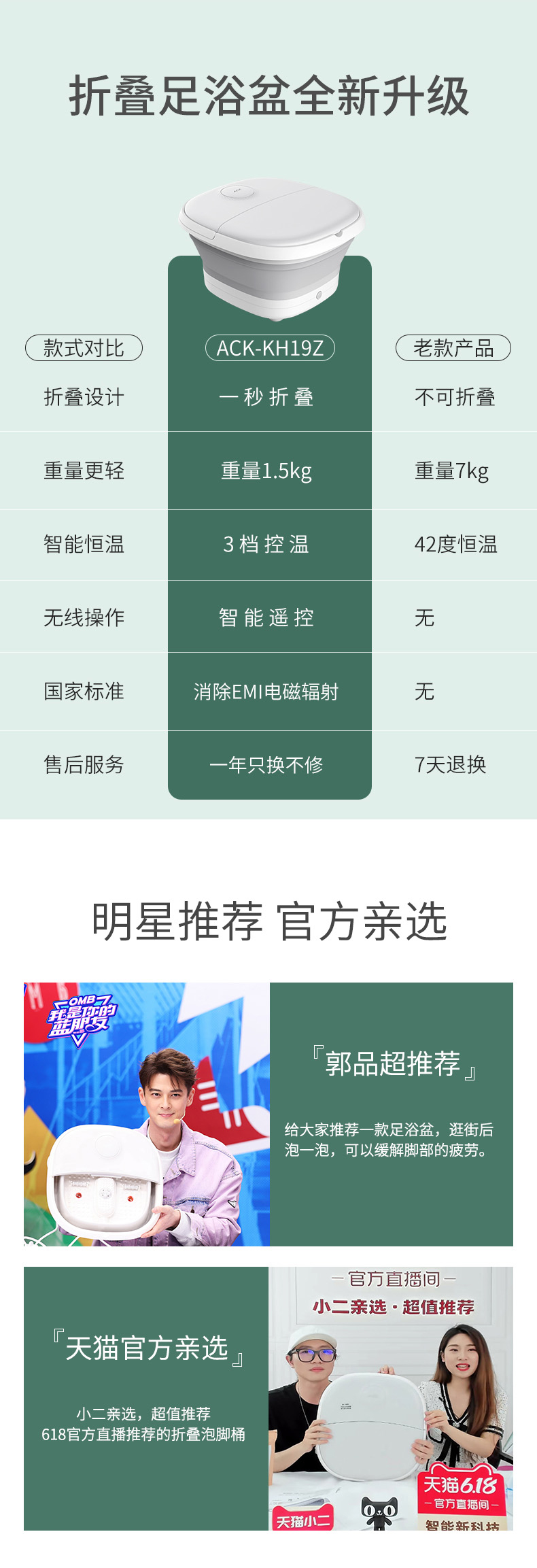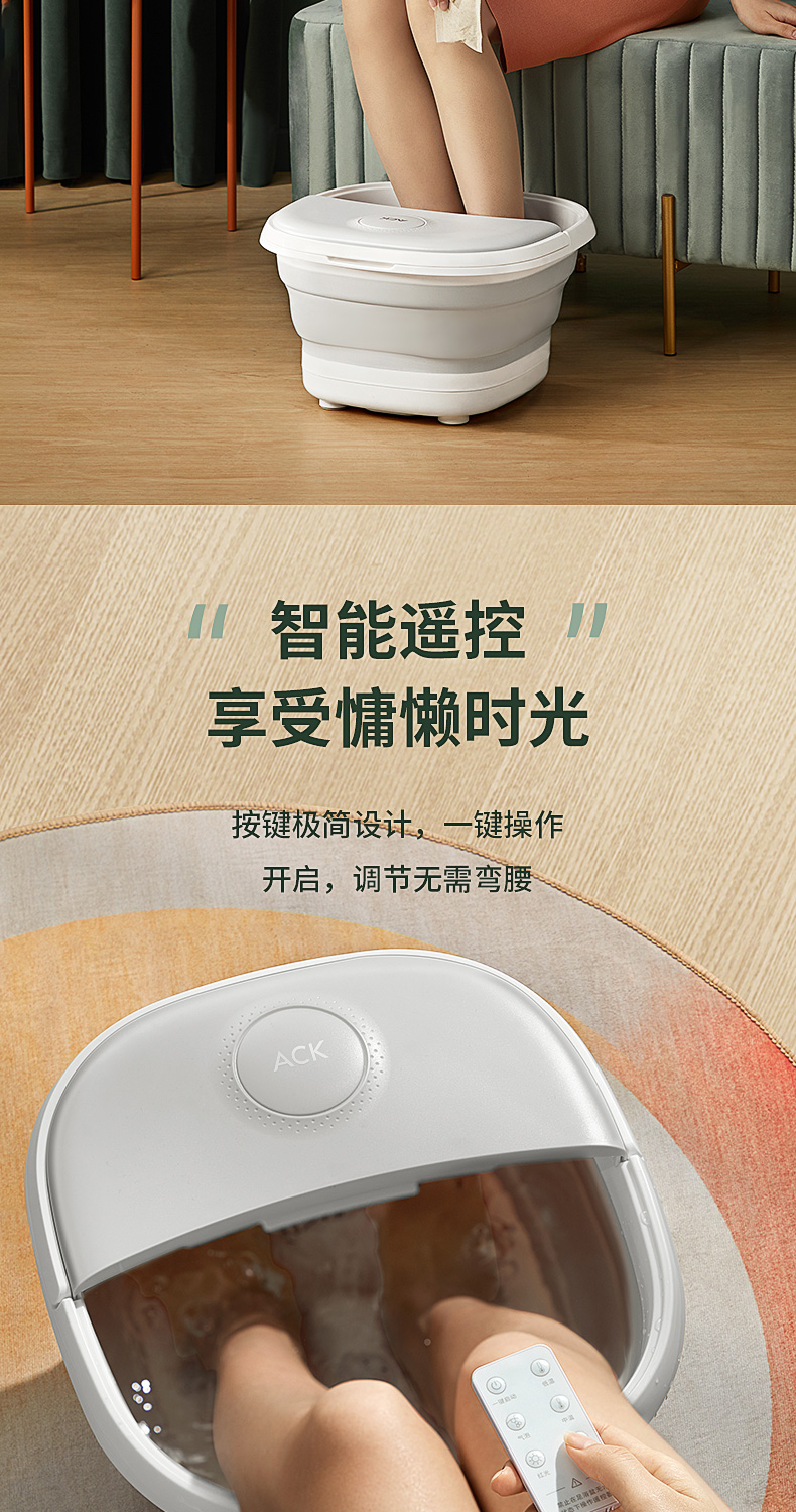 ACK艾斯凯可折叠泡脚桶(旗舰款)电动按摩全自动加热恒温桶足浴盆洗脚神器