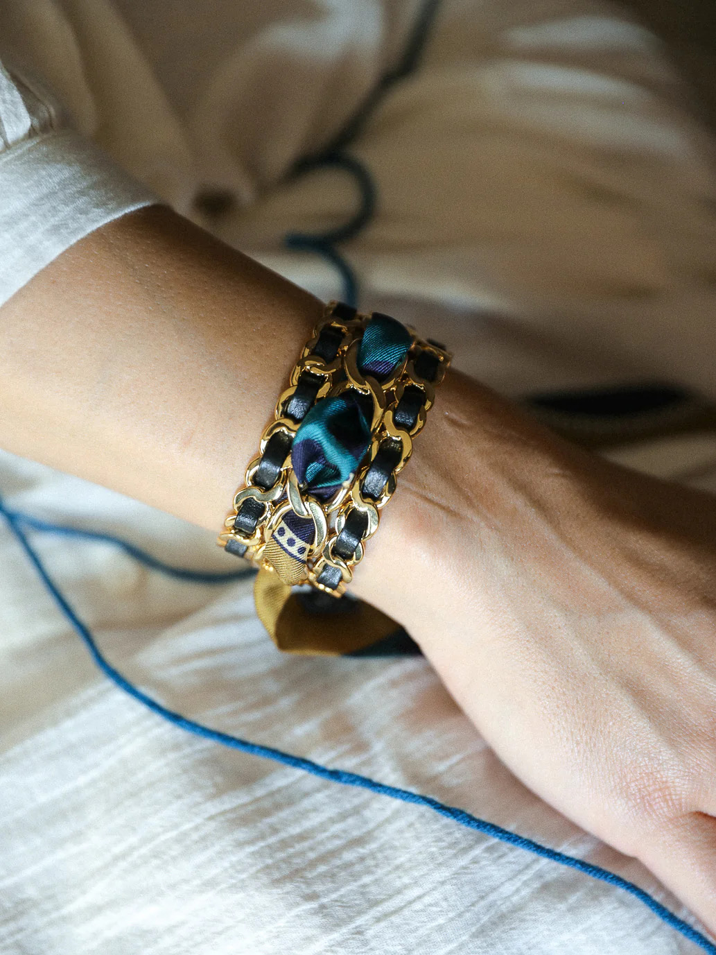 订购14周到|AN-NEE-C3G-DECEMBRE-棕绿色 夏帕诺瓦 黑色 2cm 丝巾手镯[法国设计师]