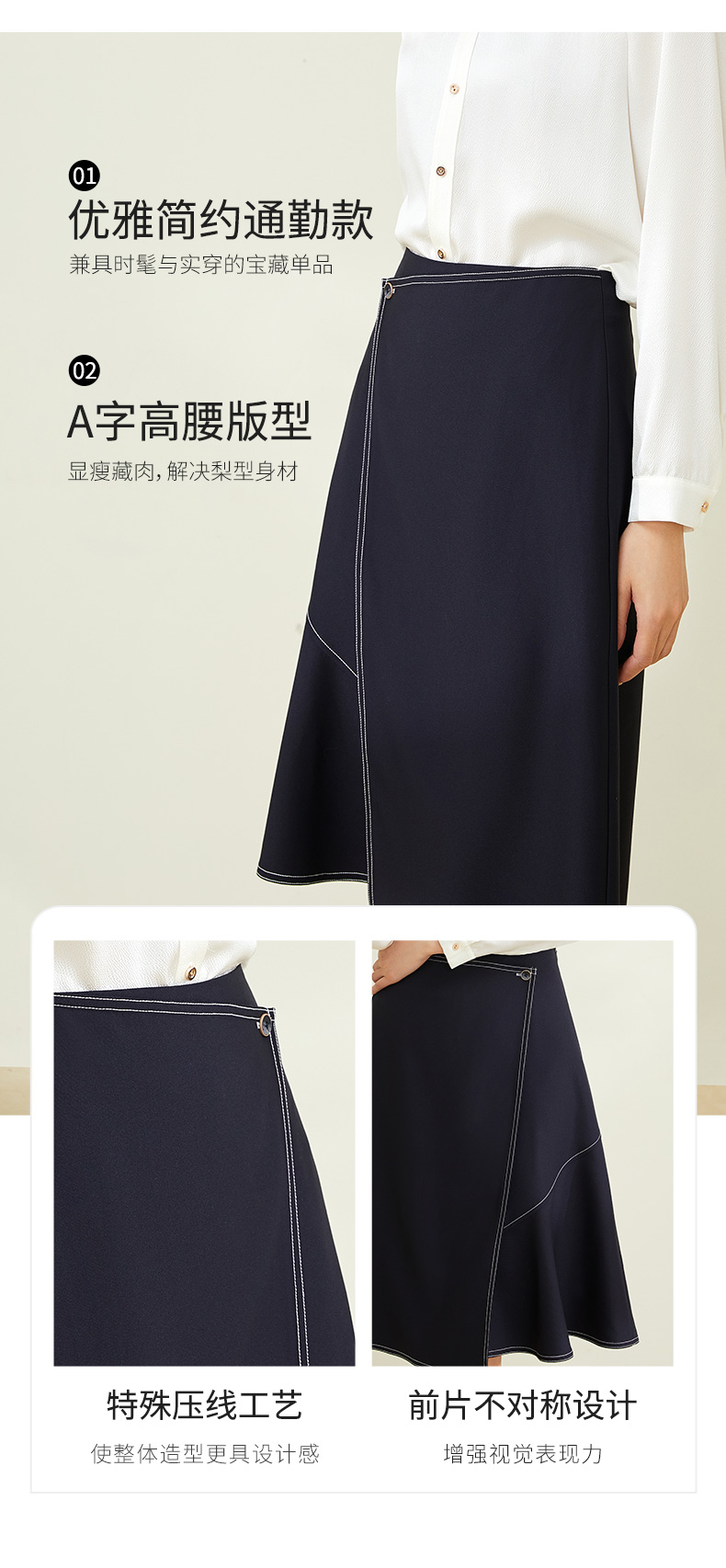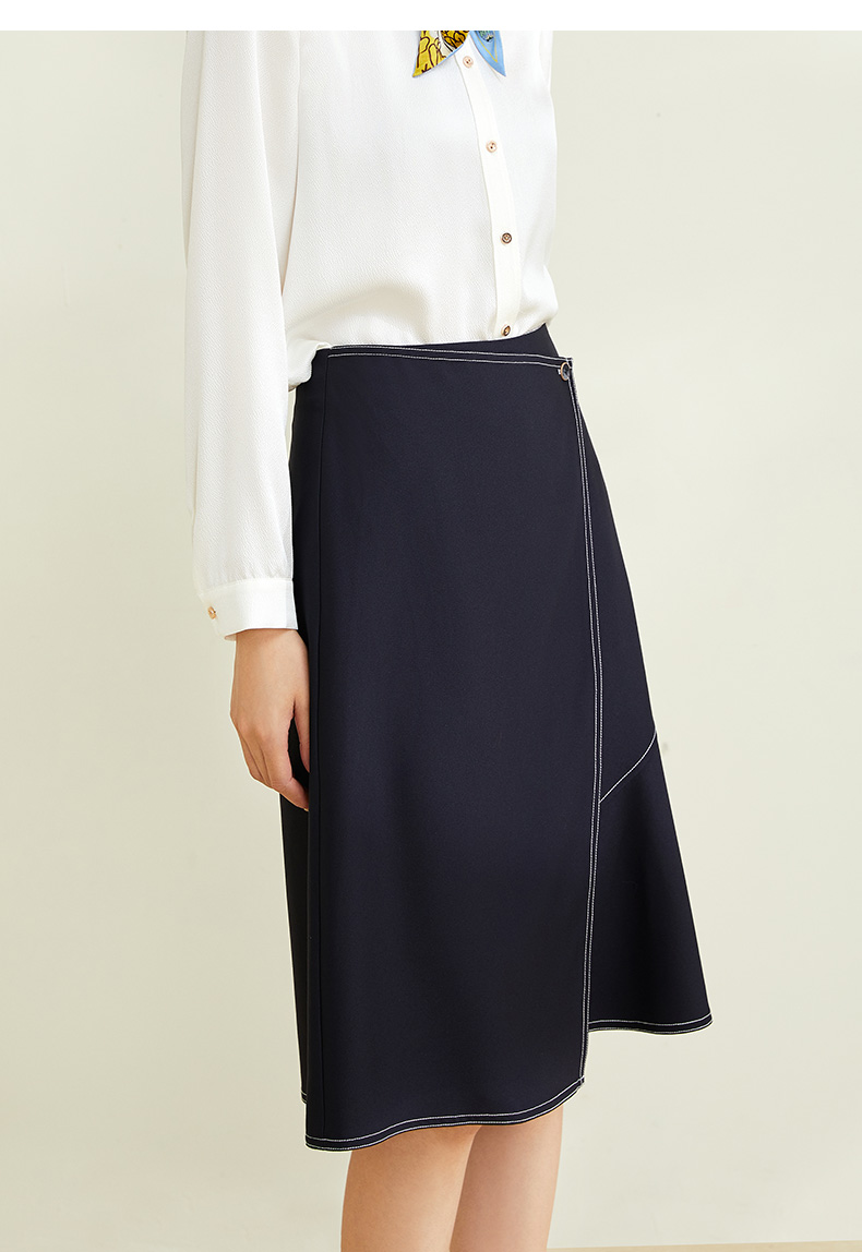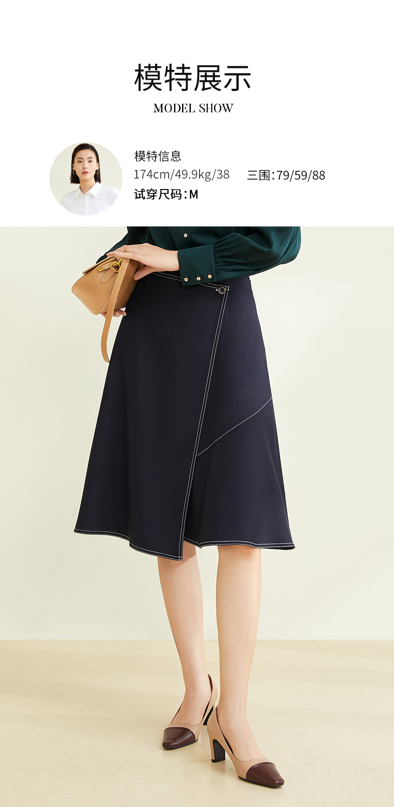 玳莎不规则设计感半裙2022秋季新款通勤优雅高腰中长款A字半身裙 CC34302