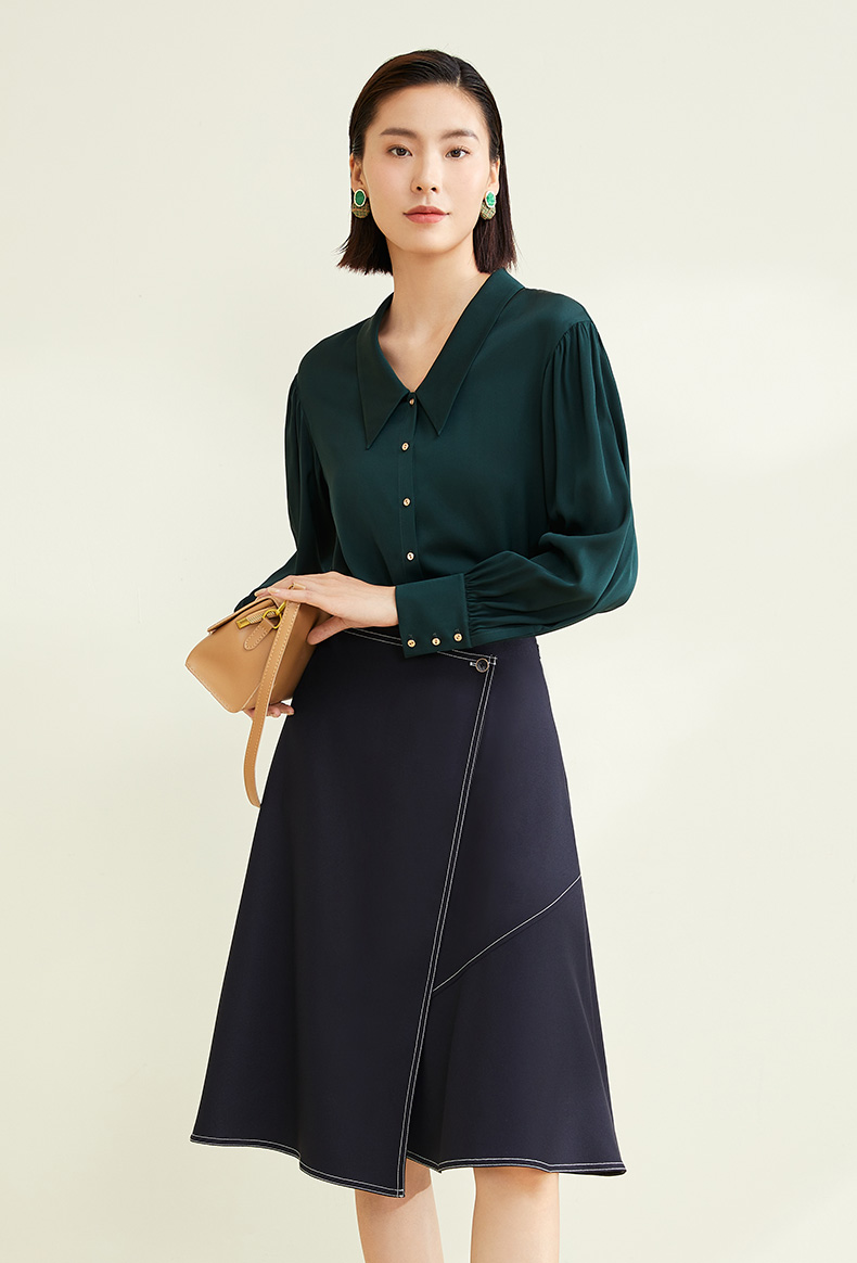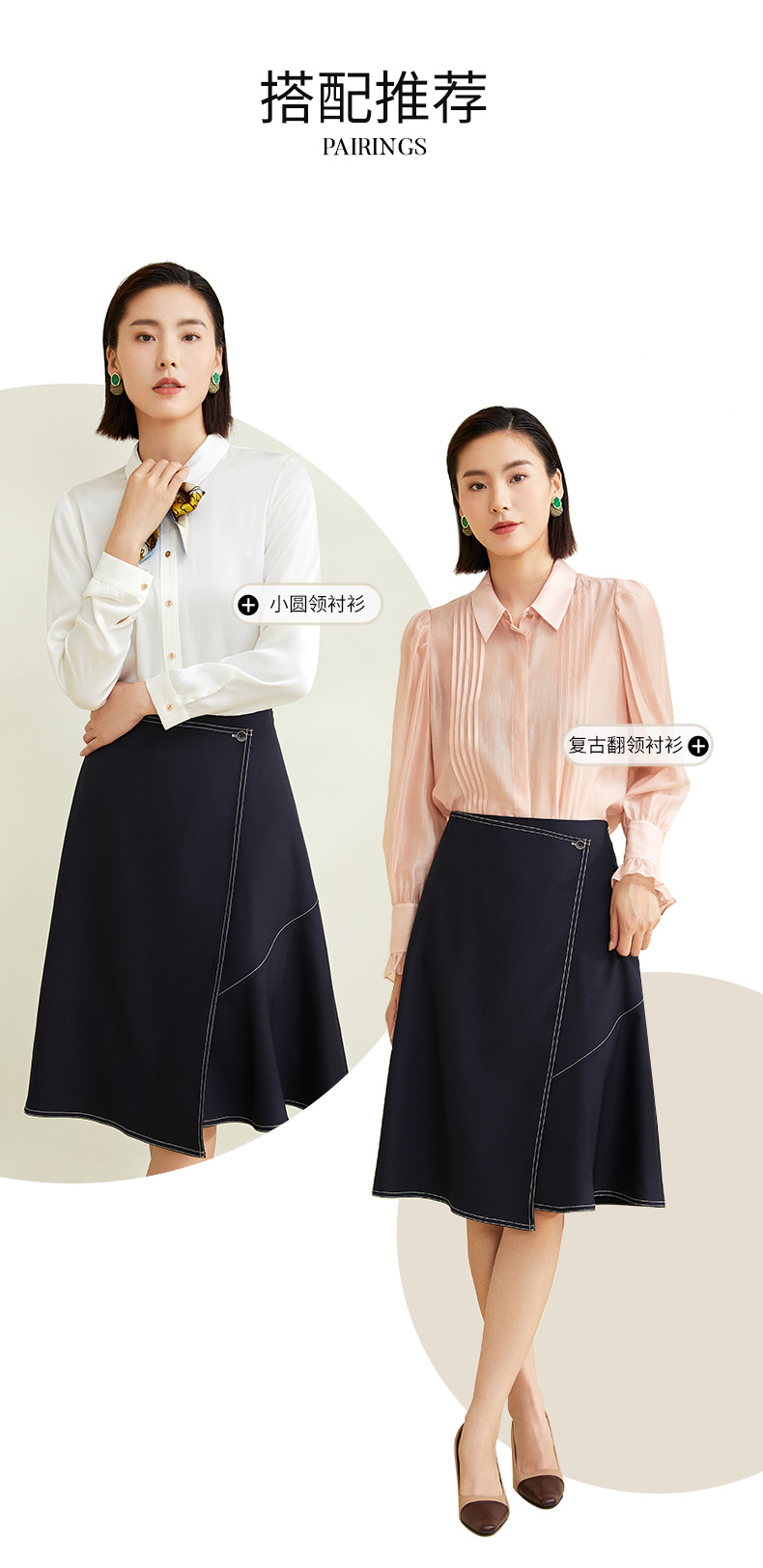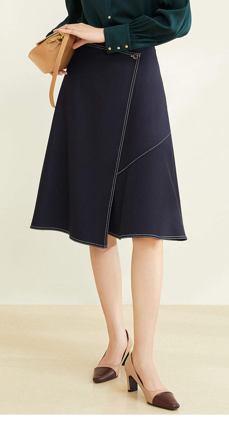 玳莎不规则设计感半裙2022秋季新款通勤优雅高腰中长款A字半身裙 CC34302
