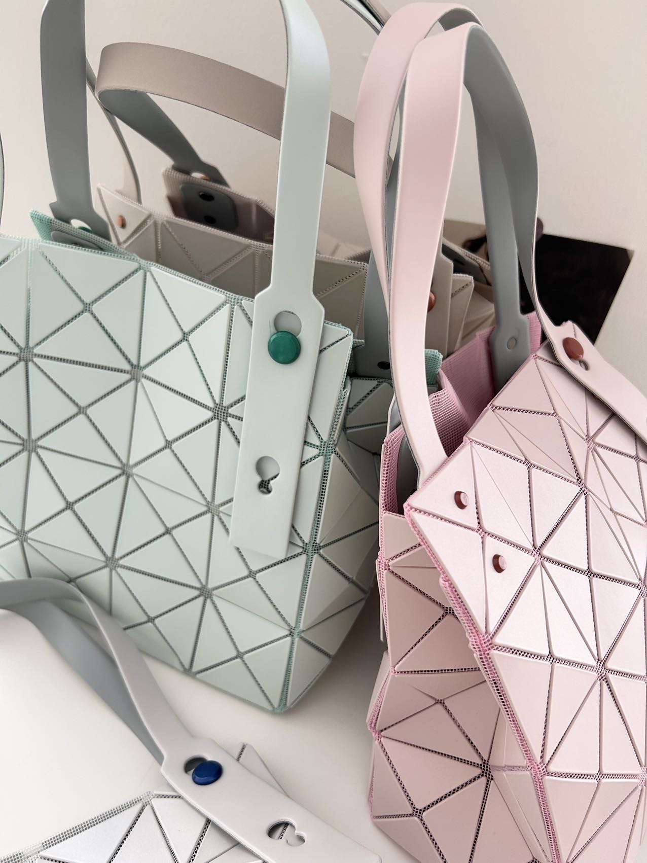 全新珠光三角片的,每一只在光线下都有微微的细闪,巨好看!三宅的包真的闭眼入~代工厂带标和无标随机发货。