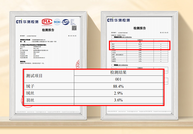 为了验证是真填充鸭绒,我们亲自拿去检测,当看到到检测报告,符合90%白鸭绒质检合格(买羽绒,要看绒子含量越高,做成的鞋子就越蓬松、暖和。其中绒子含量就高达88.4%),才敢放心地推荐给大家: