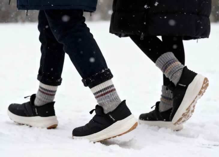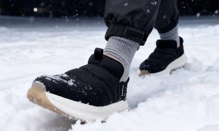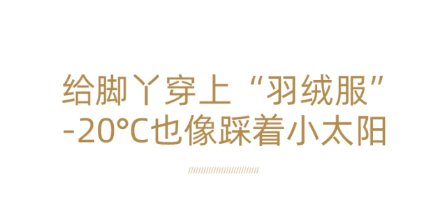 鞋帮两边填充了90白鸭绒,鞋里添加暖绒毛,细柔软糯,双脚像是裹了羽绒毯,暖得不要不要的,零下-20℃穿都不怕。