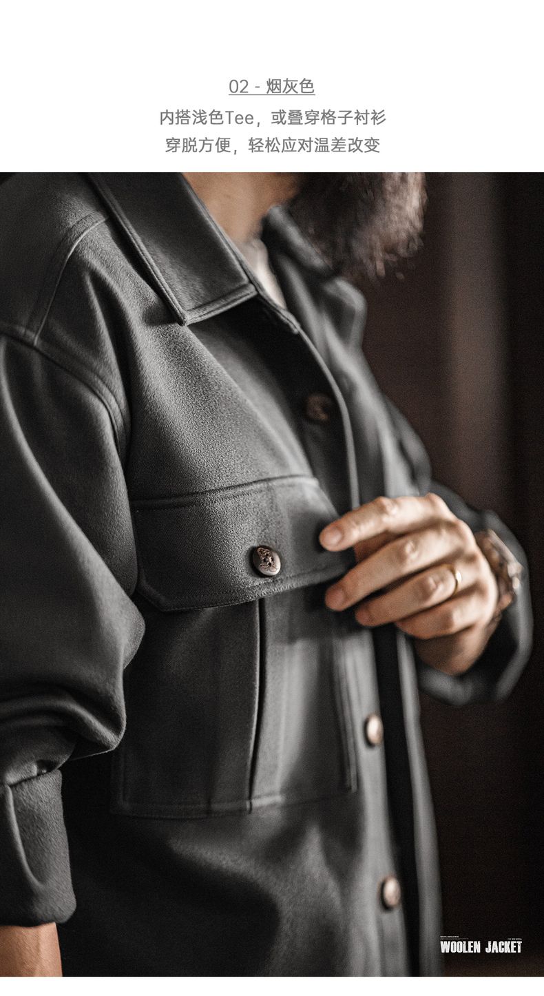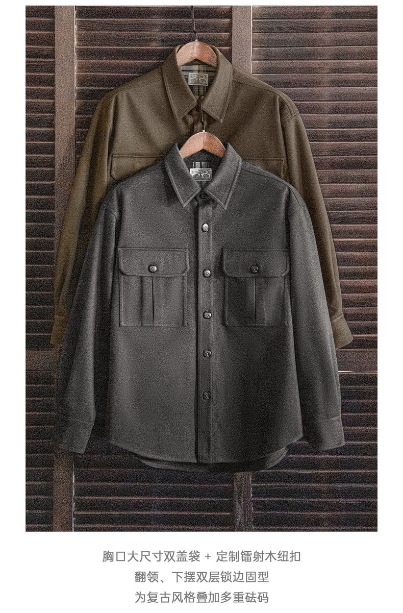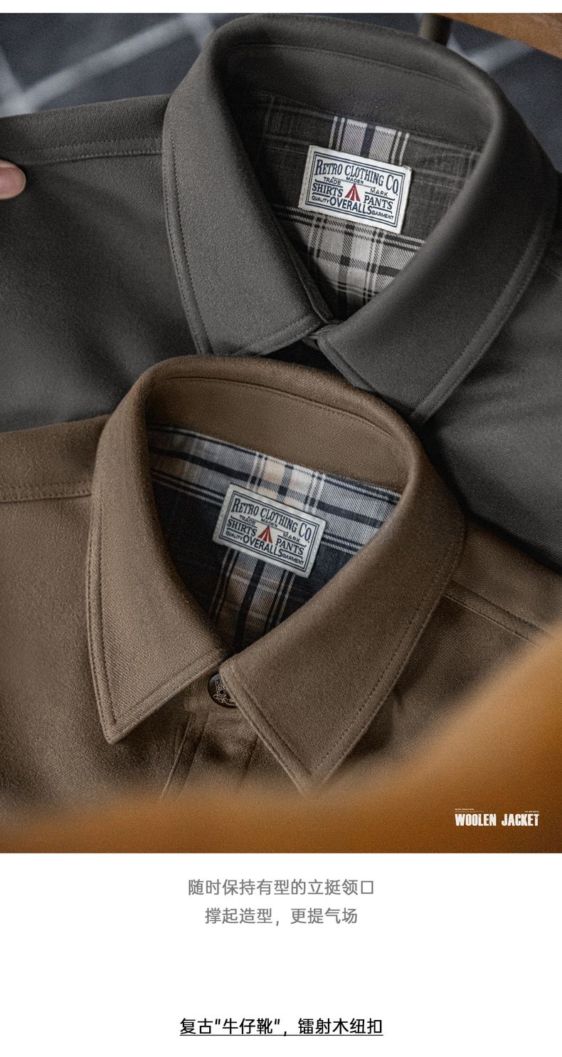 工装优选美式复古星空毛呢衬衫夹克宽松翻领重磅呢子外套男秋冬装