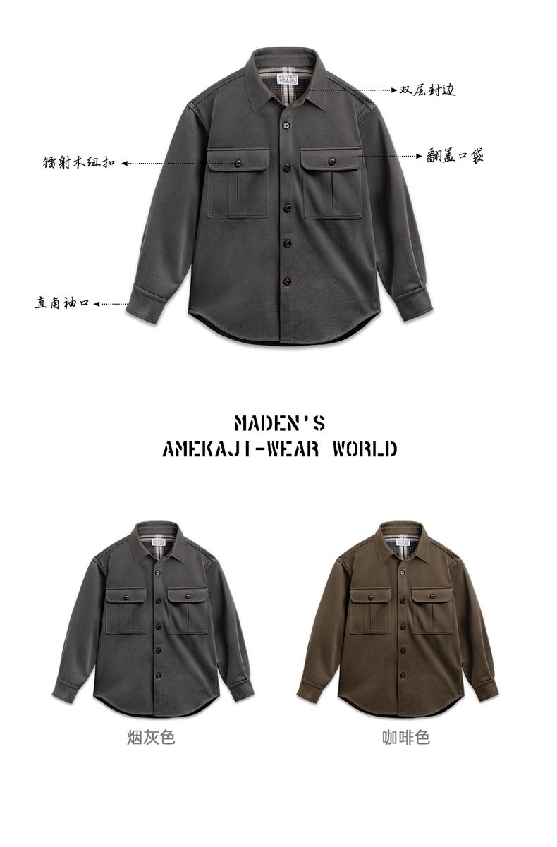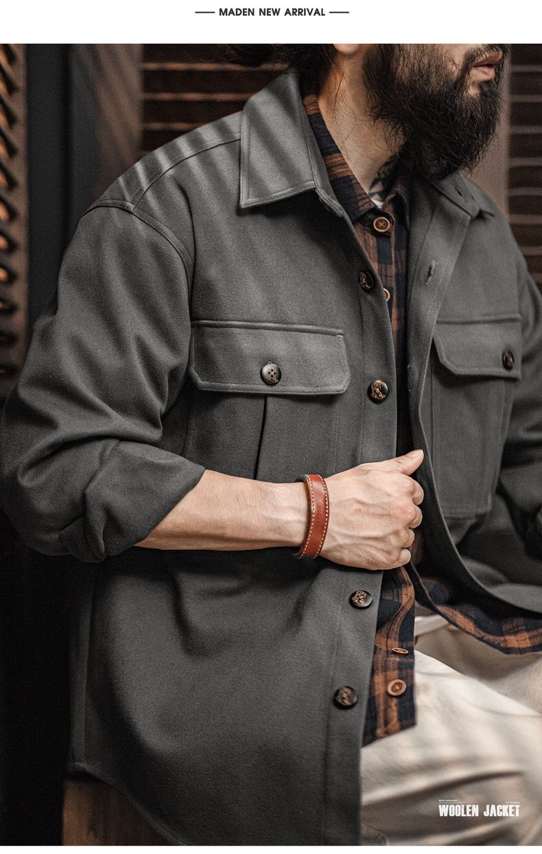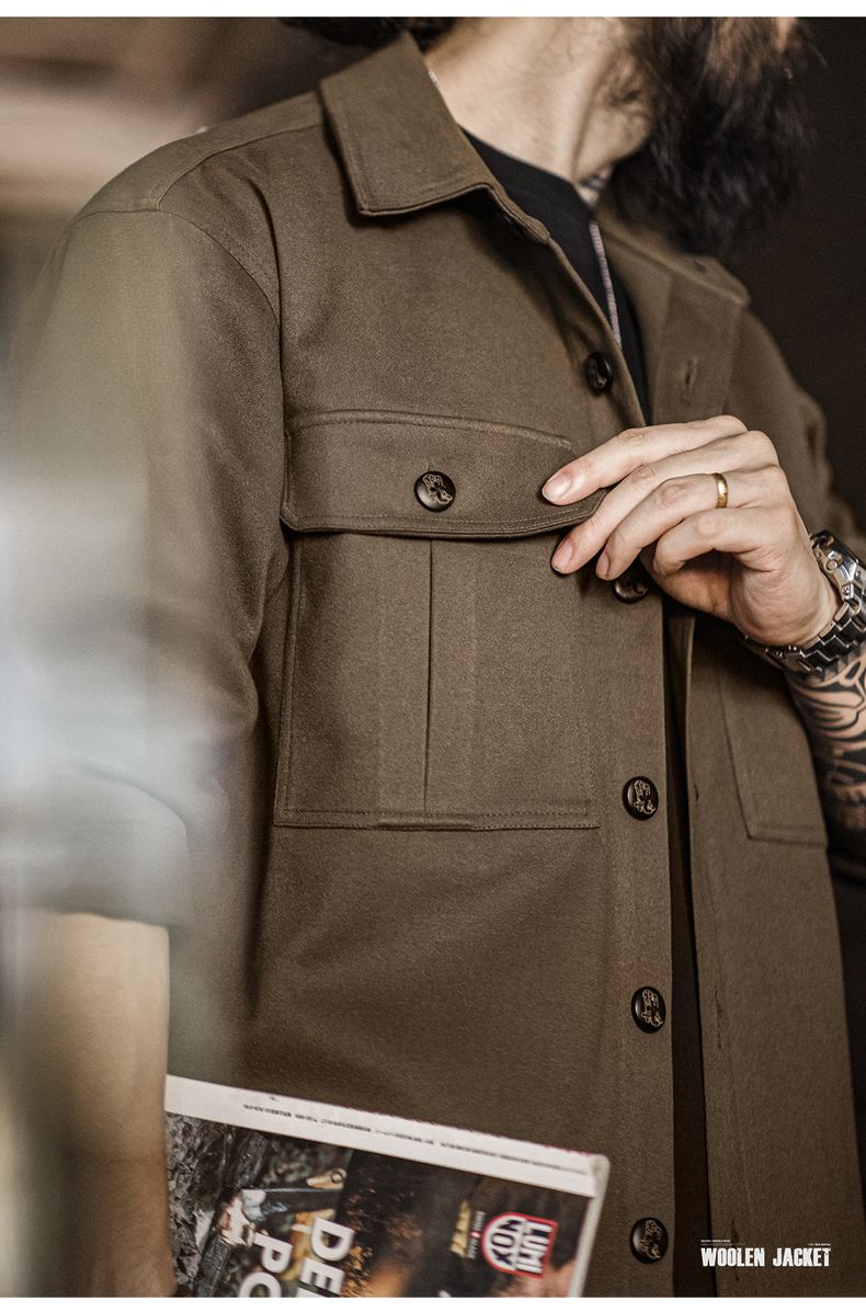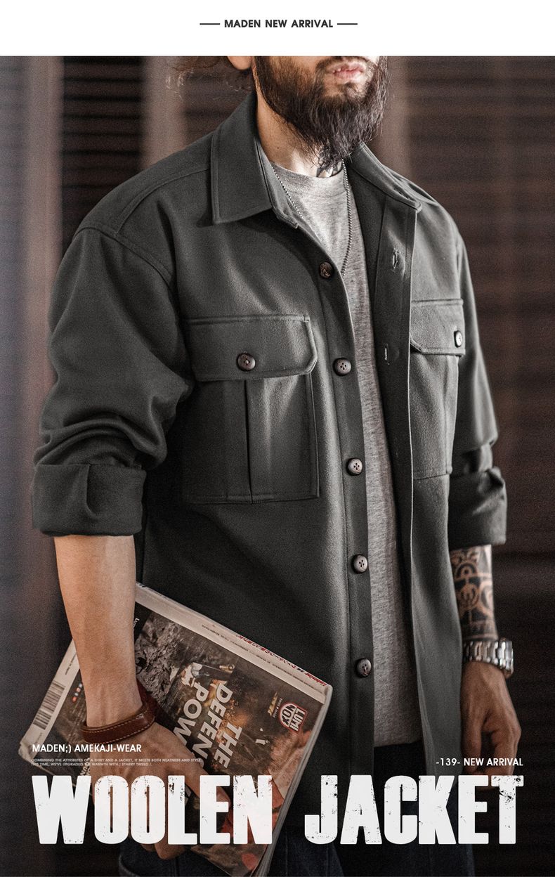 工装优选美式复古星空毛呢衬衫夹克宽松翻领重磅呢子外套男秋冬装